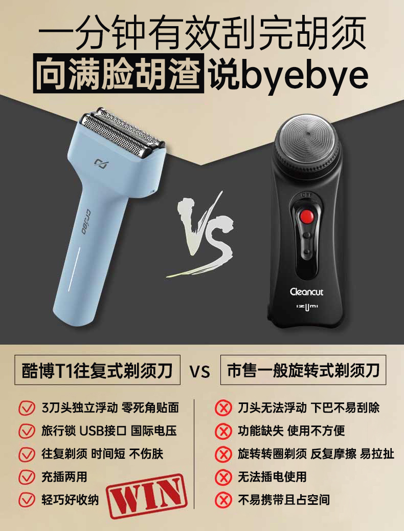 酷博剃须刀 往复式刀头 迷你小身材 差旅便携 CB-T1