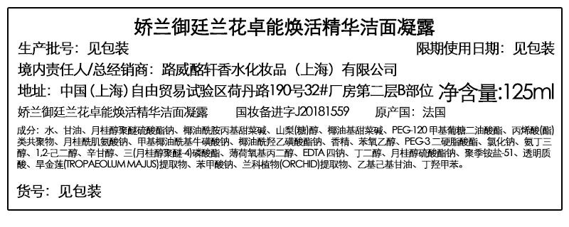 【YZ】娇兰御廷兰花卓能焕活精华洁面凝露125ml