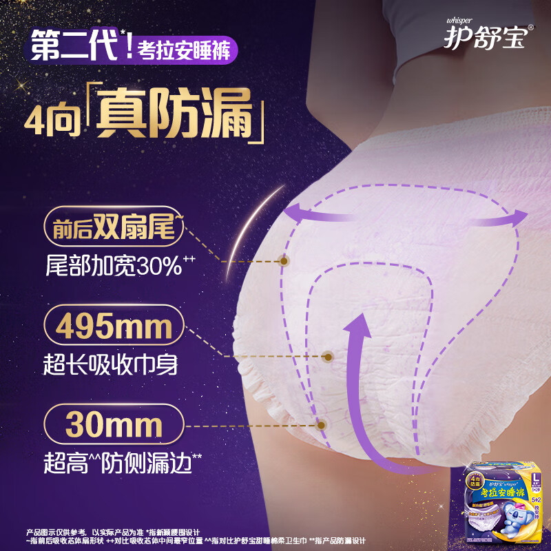 护舒宝考拉散热安睡裤L码裤型卫生巾5+2片