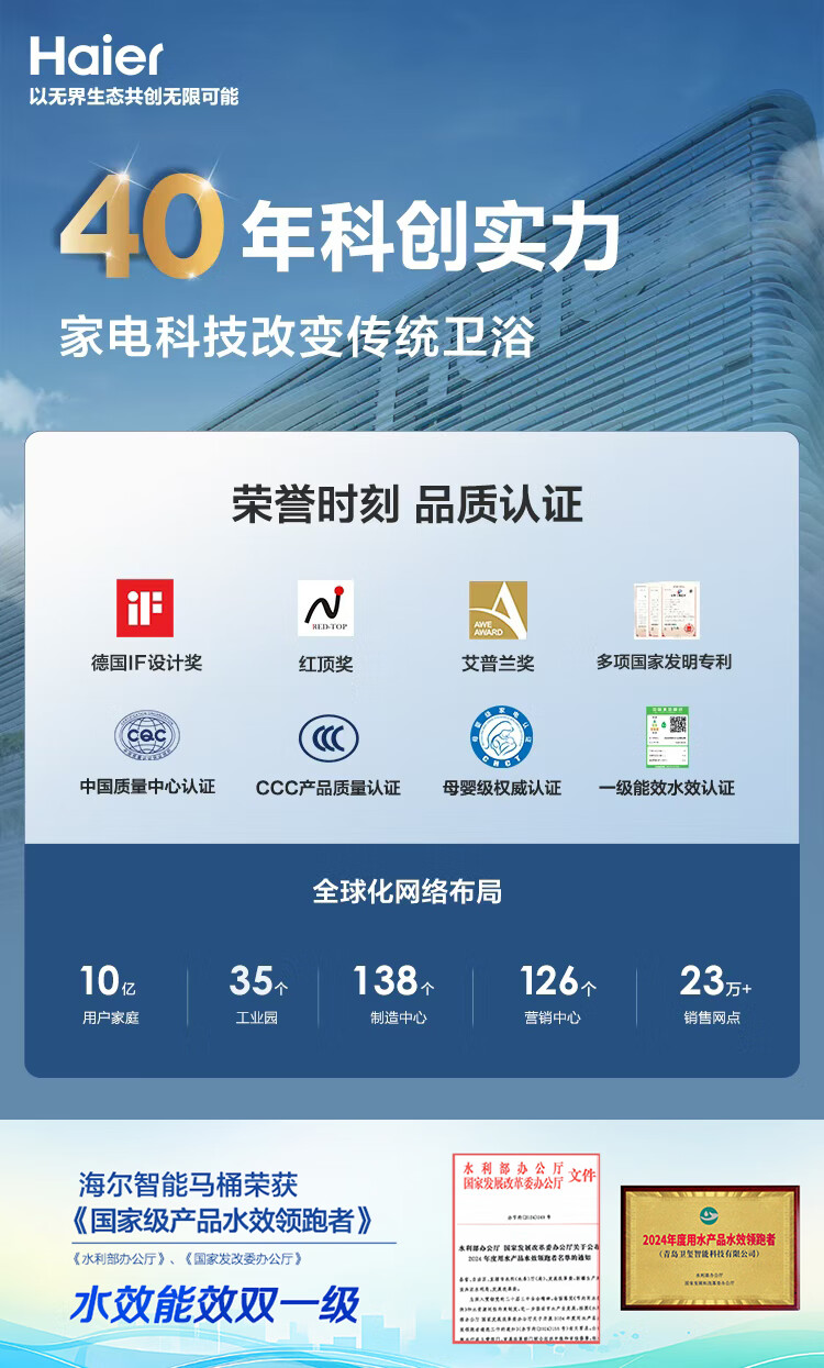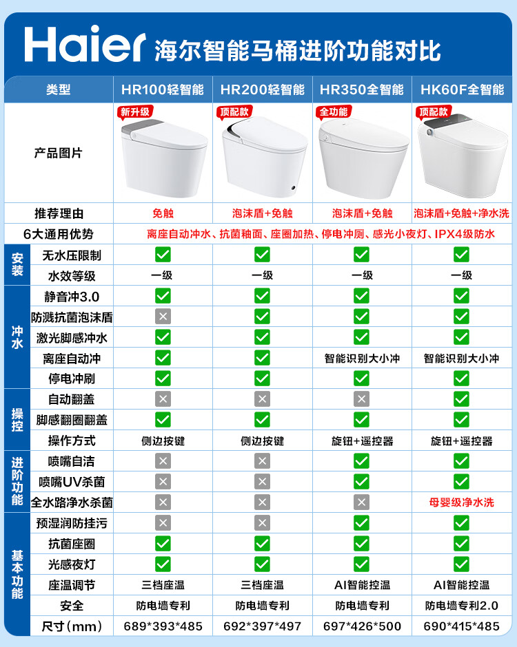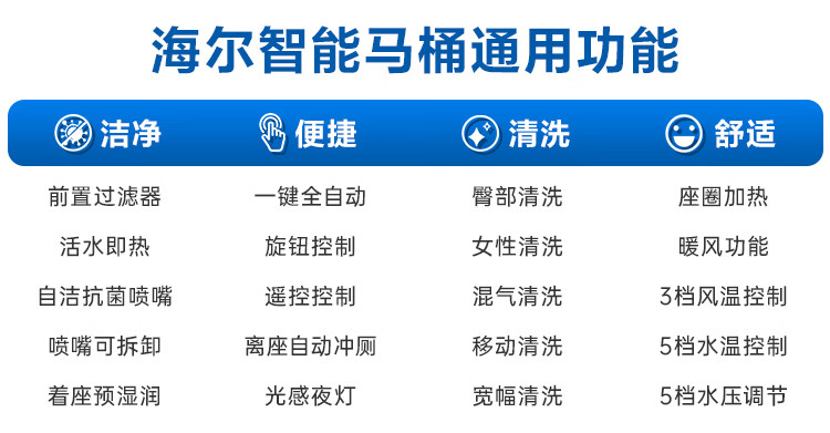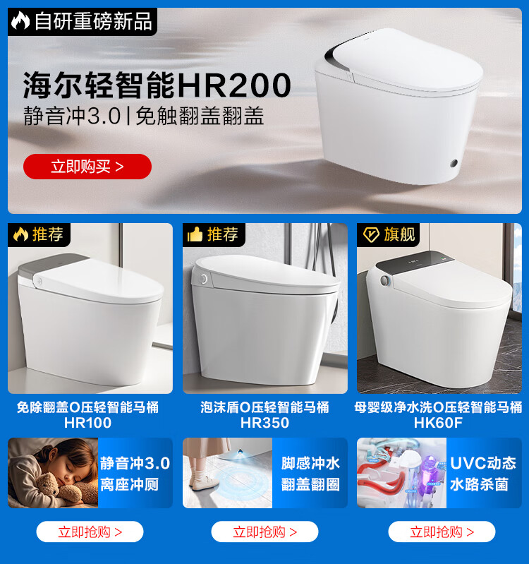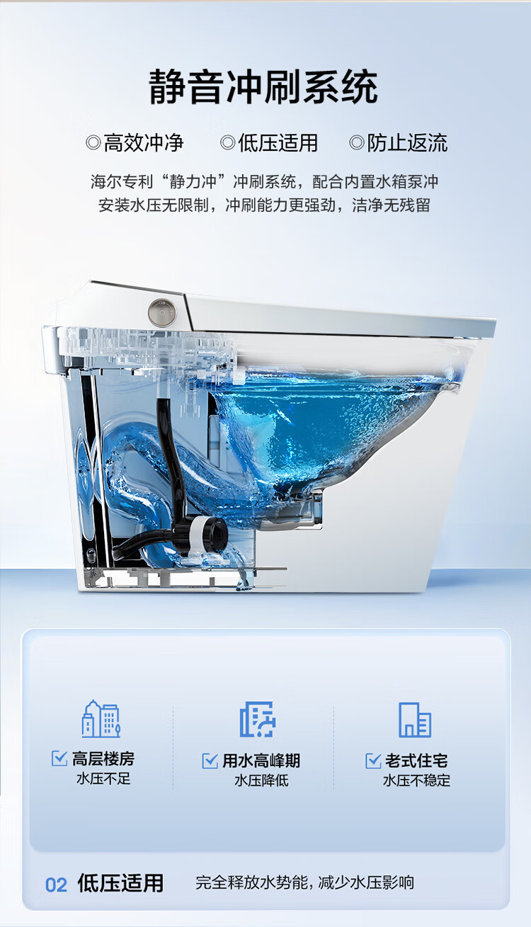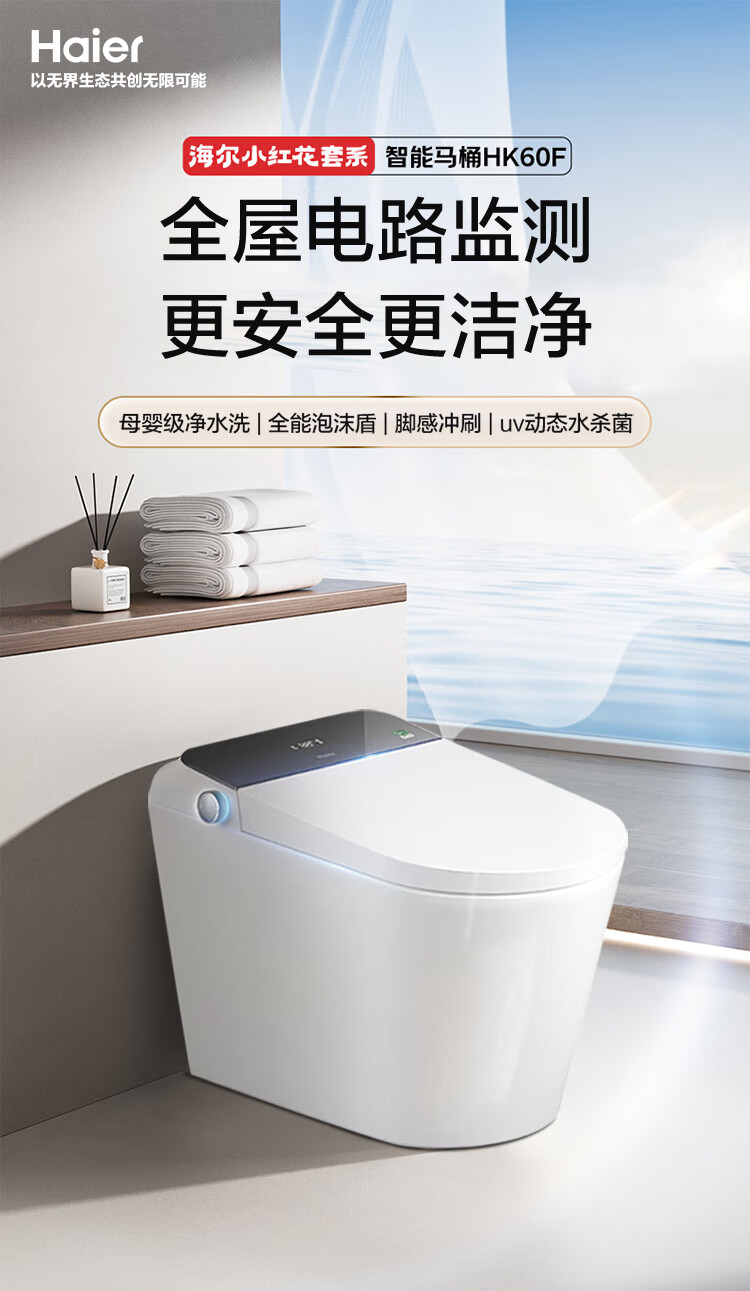 海尔(Haier)母婴级净水洗智能马桶自动翻盖脚感冲刷坐便器HK60F-400/HK60F-305
