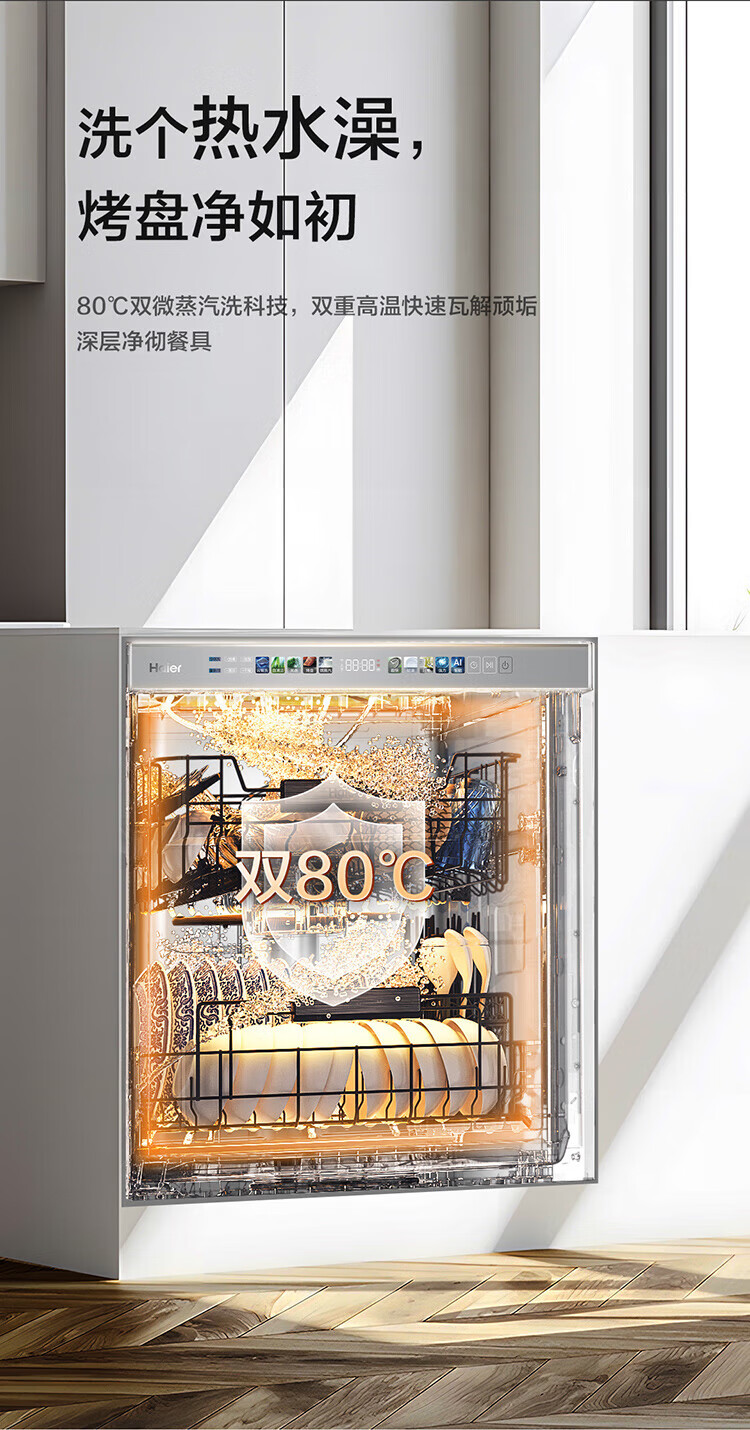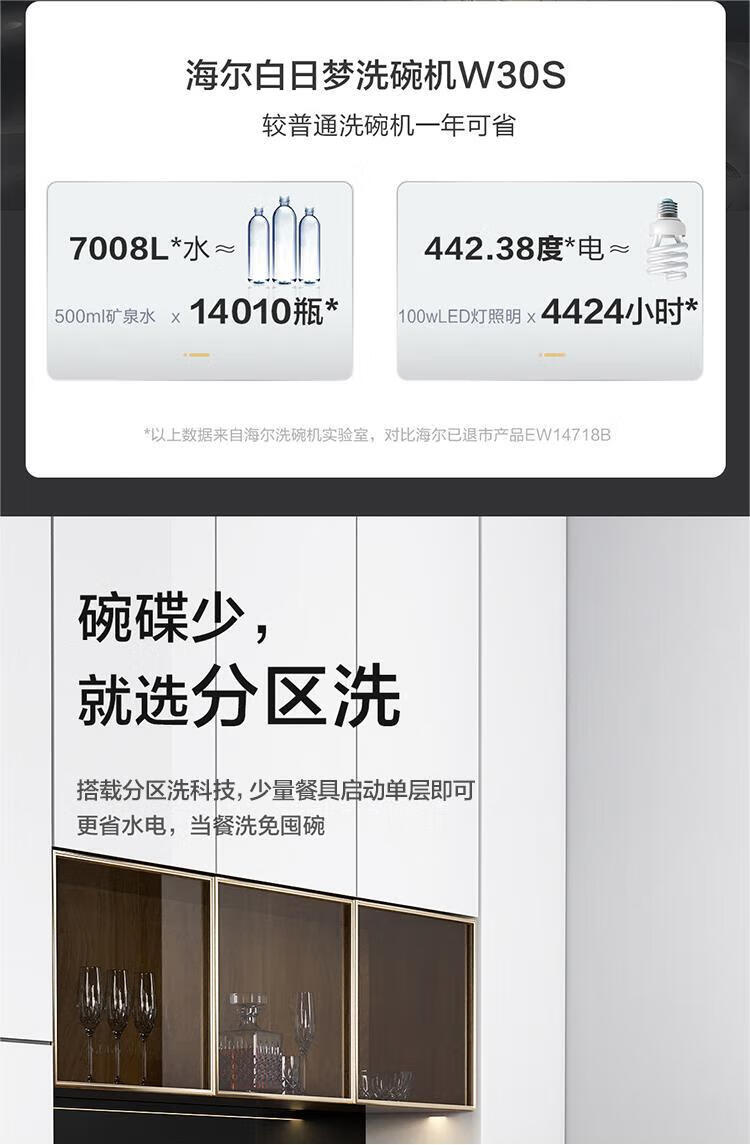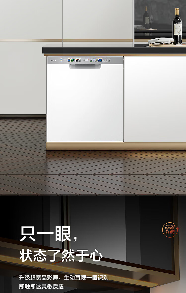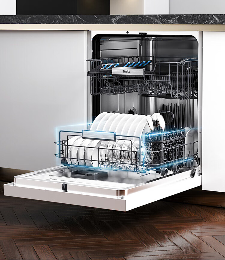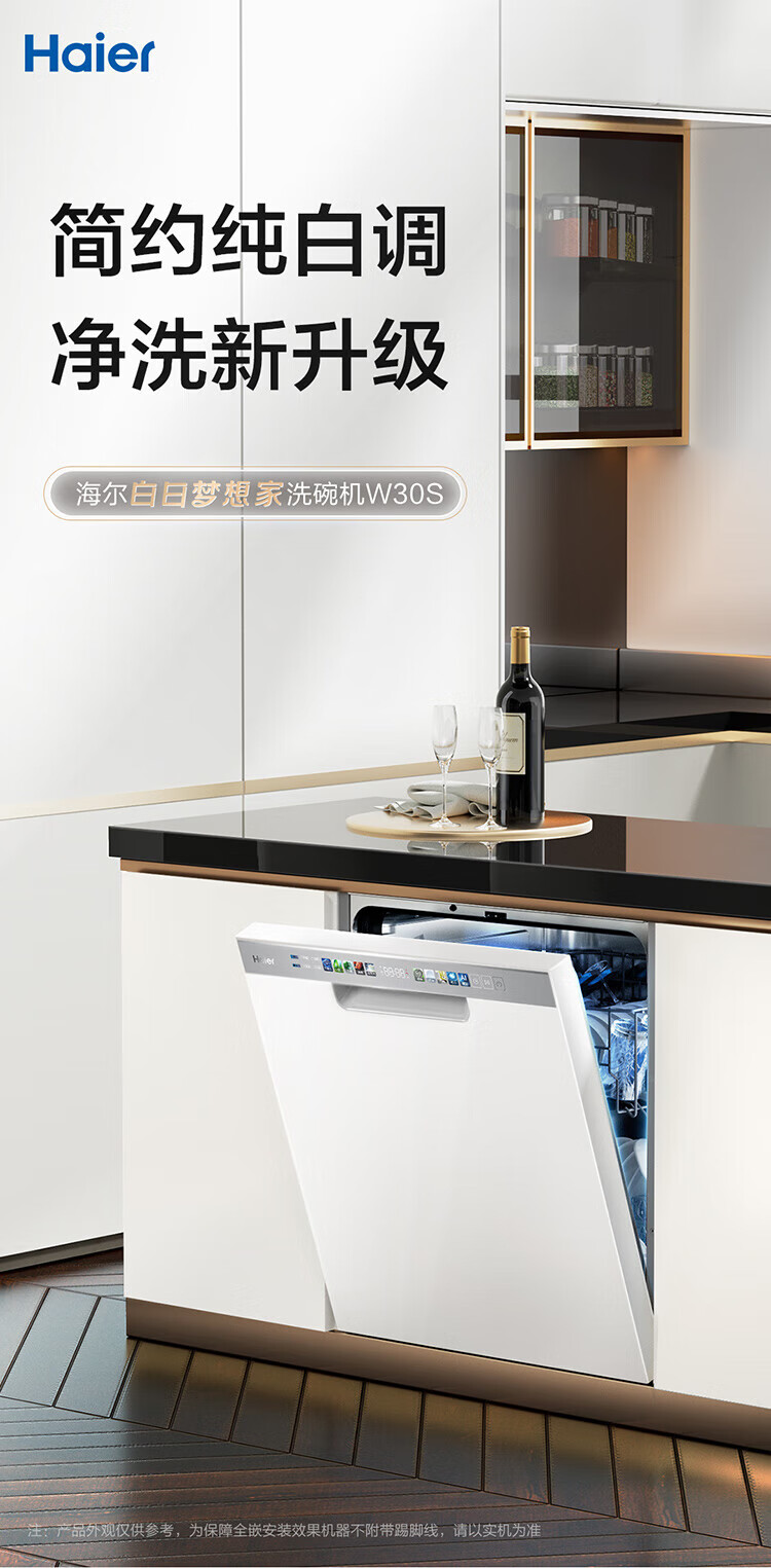 海尔(Haier)【山茶花系列】嵌入式洗碗机W30S白色15套大容量 变频一级水效 分区洗智能开门速干EYBW153286ZBU1 W30S标配版15套 简约白 分区洗