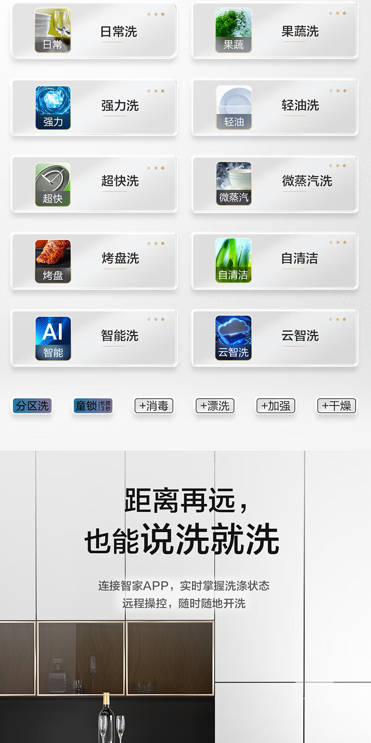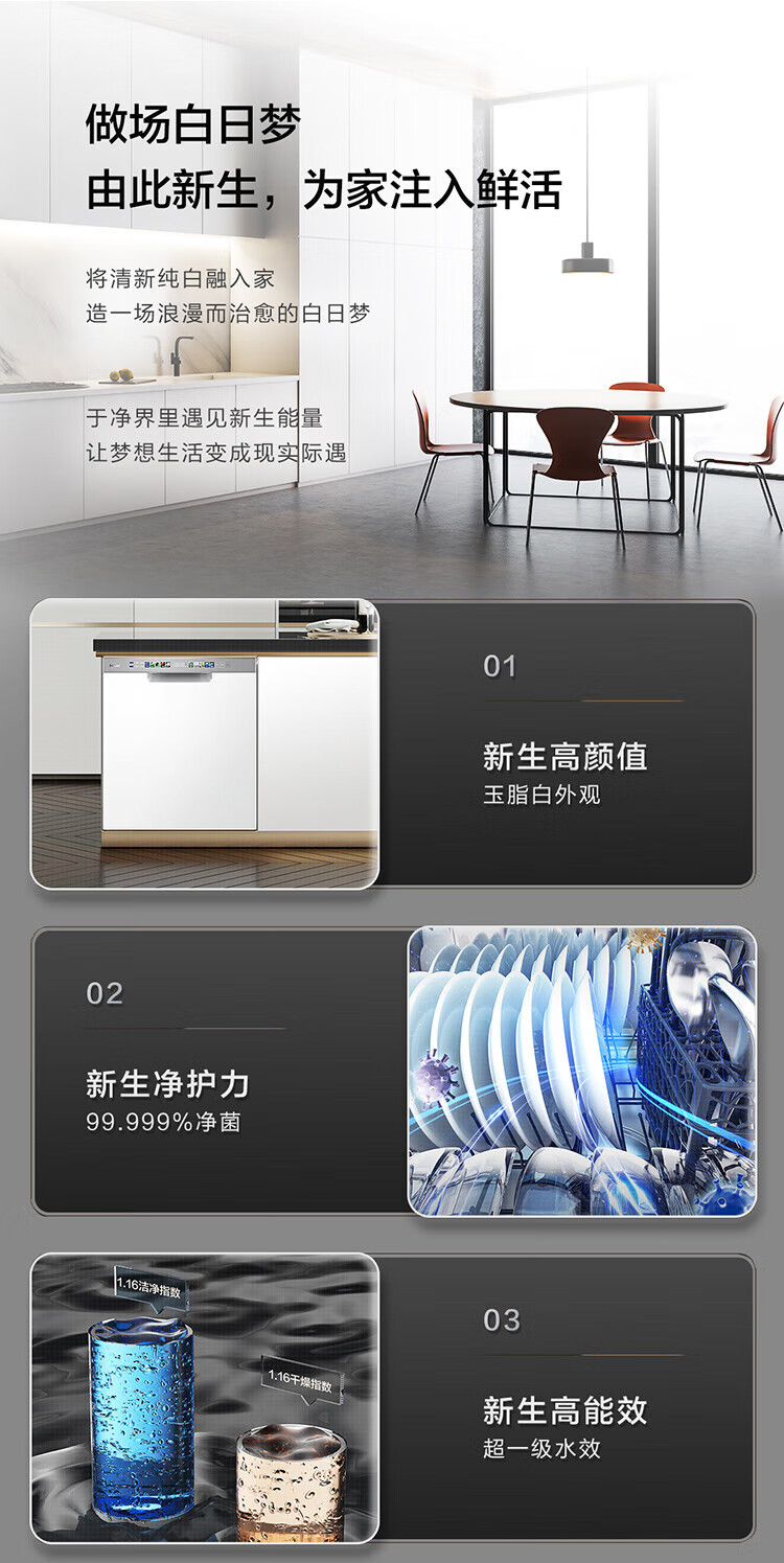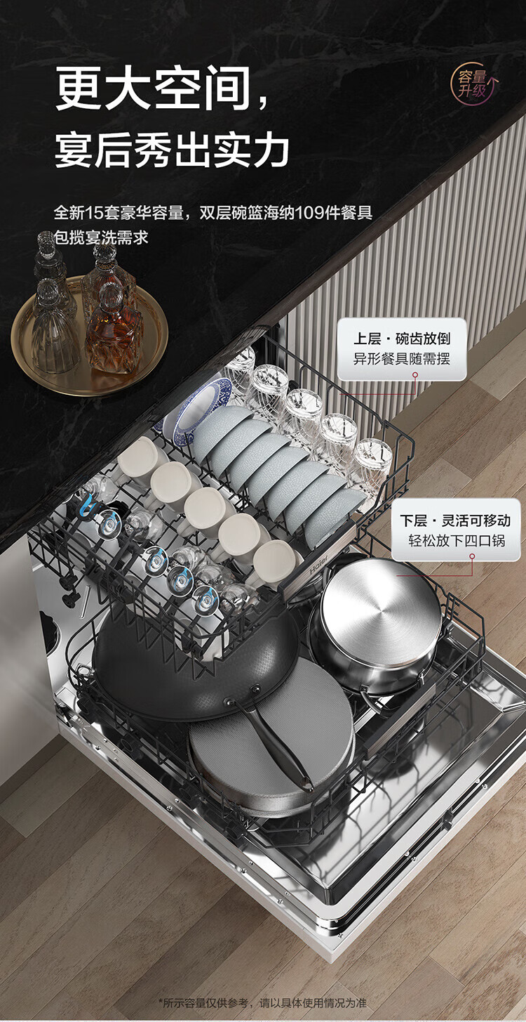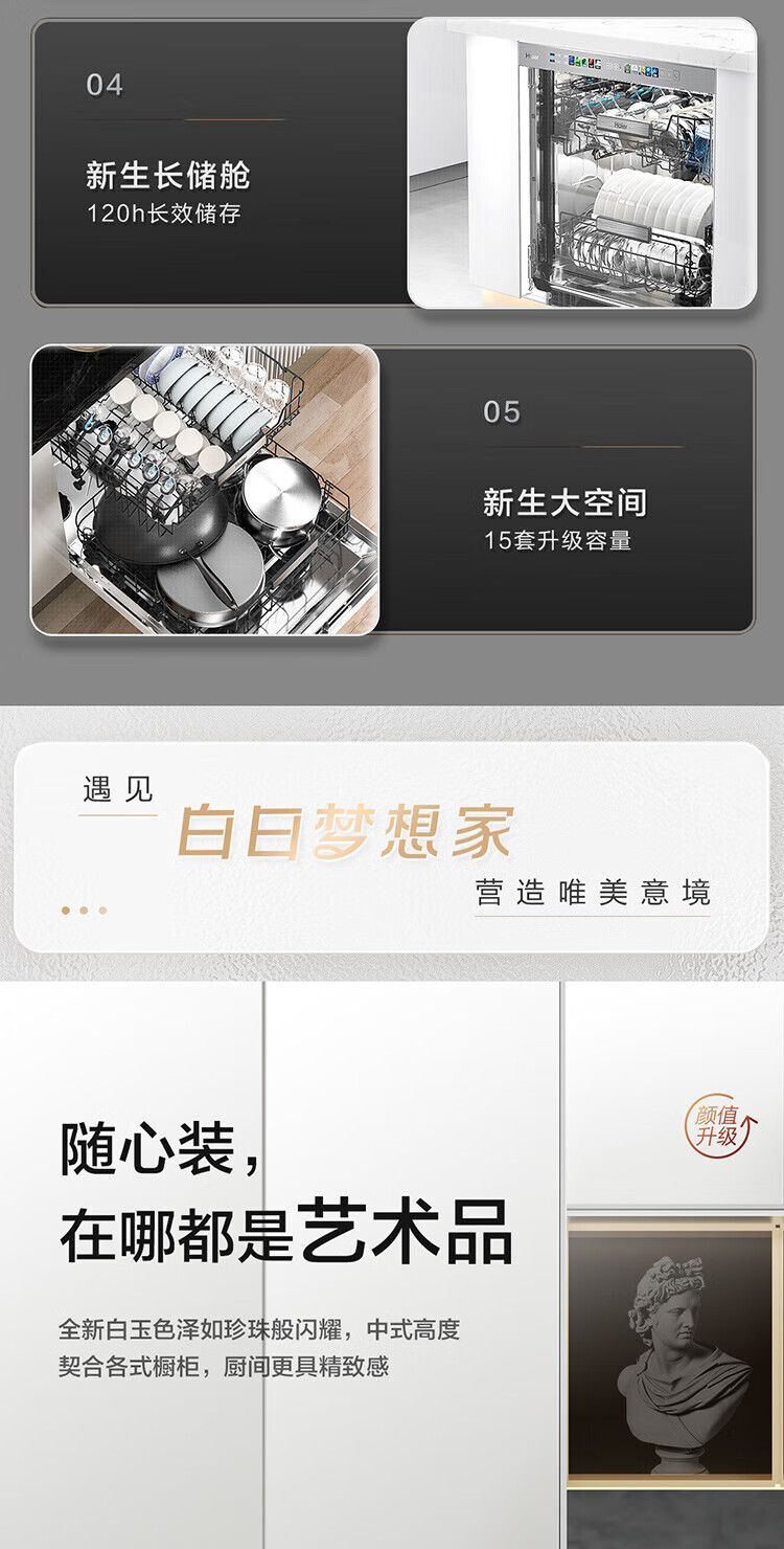 海尔(Haier)【山茶花系列】嵌入式洗碗机W30S白色15套大容量 变频一级水效 分区洗智能开门速干EYBW153286ZBU1 W30S标配版15套 简约白 分区洗