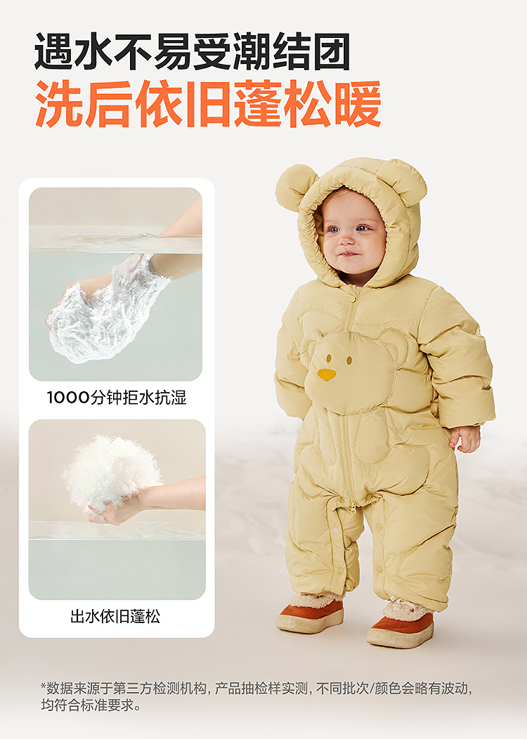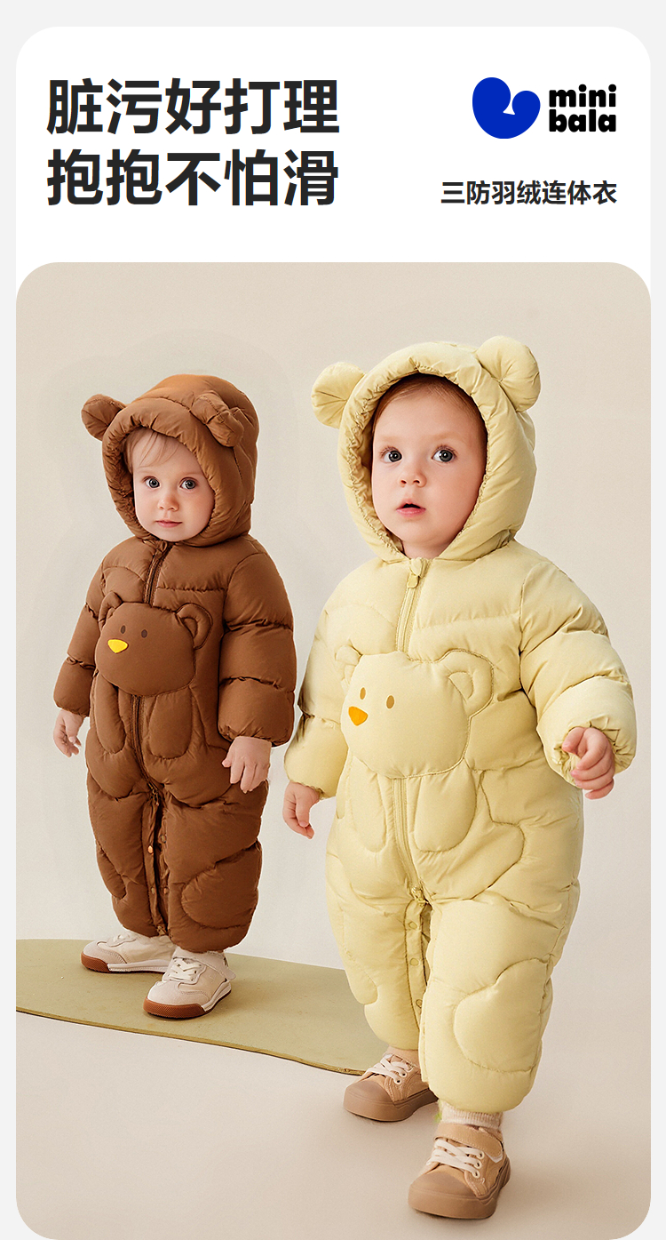 【拒水绒】迷你巴拉男女童羽绒连体衣宝宝三防爬服2025冬新品