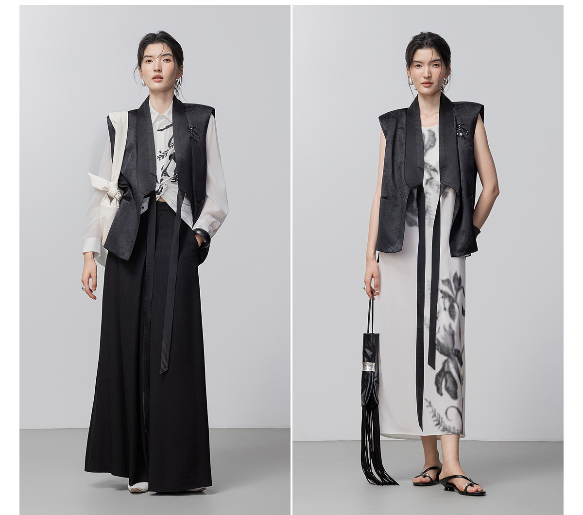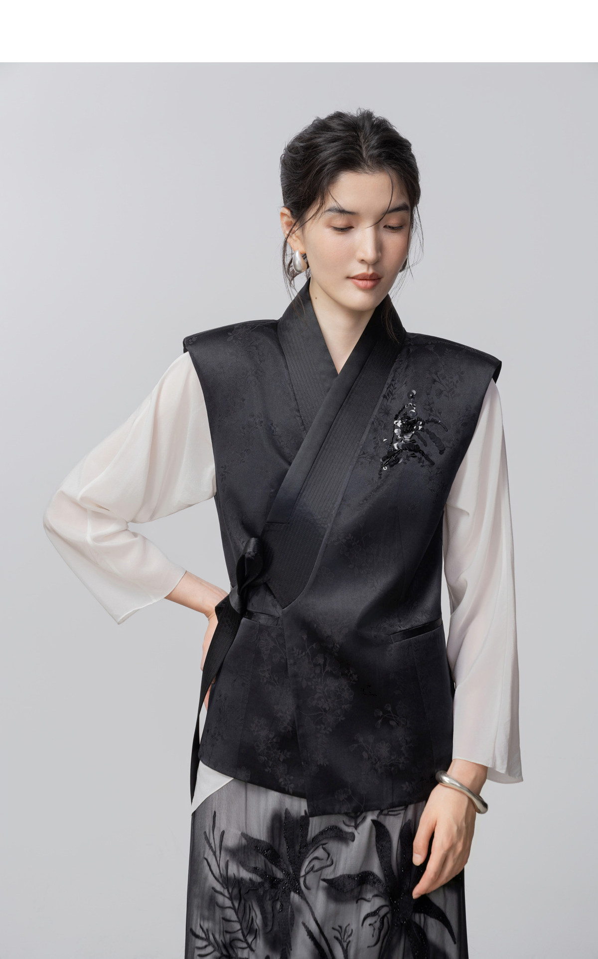 【林栖设计小店】【手工钉珠】笔墨花事生活在左绣花马夹轻中式交领2026早春新款无袖上衣女1961104