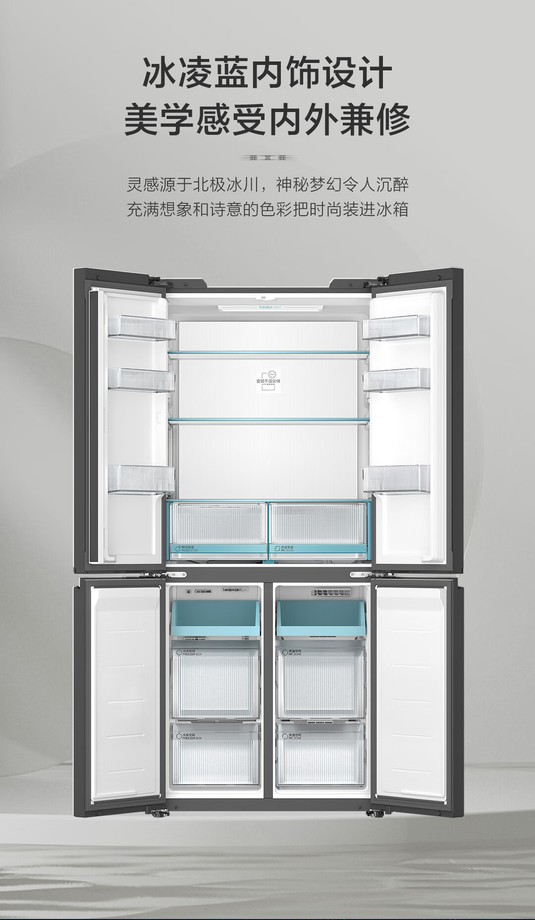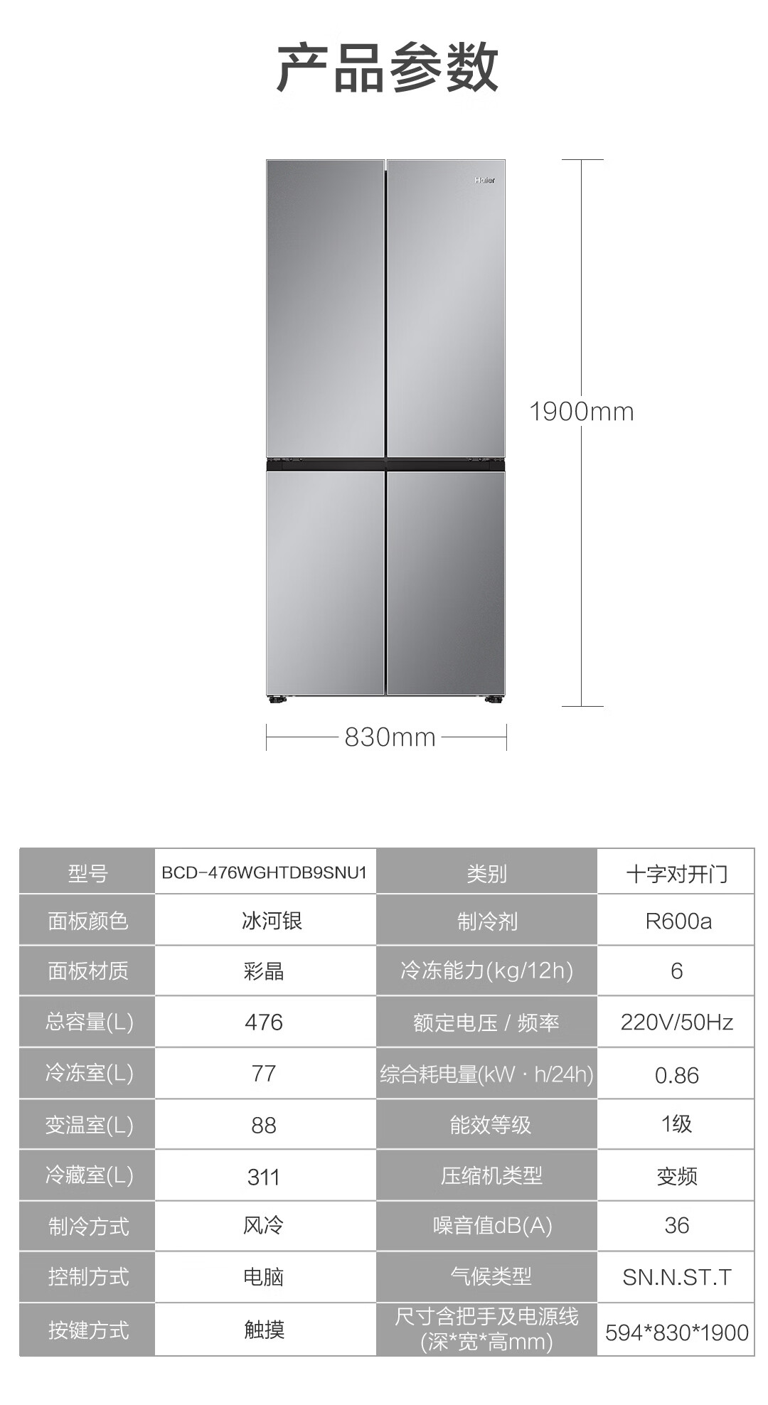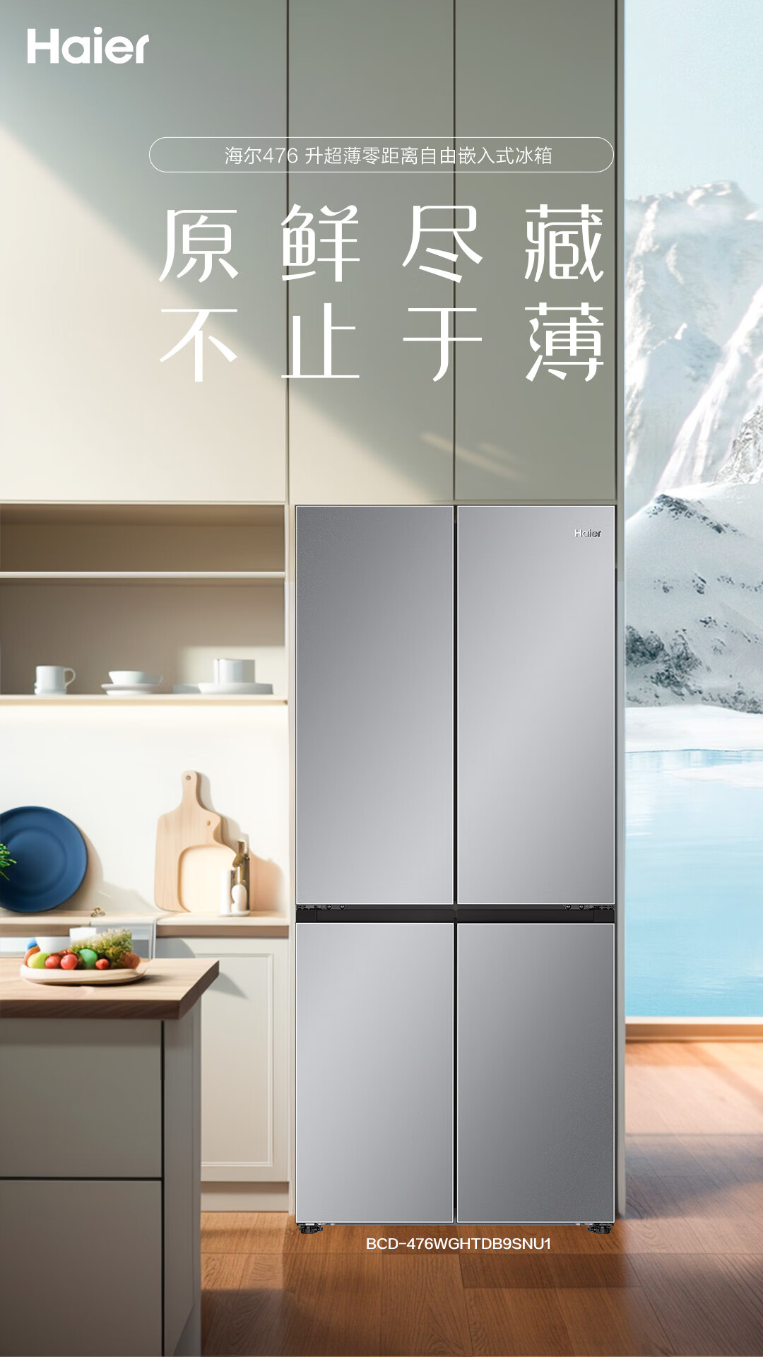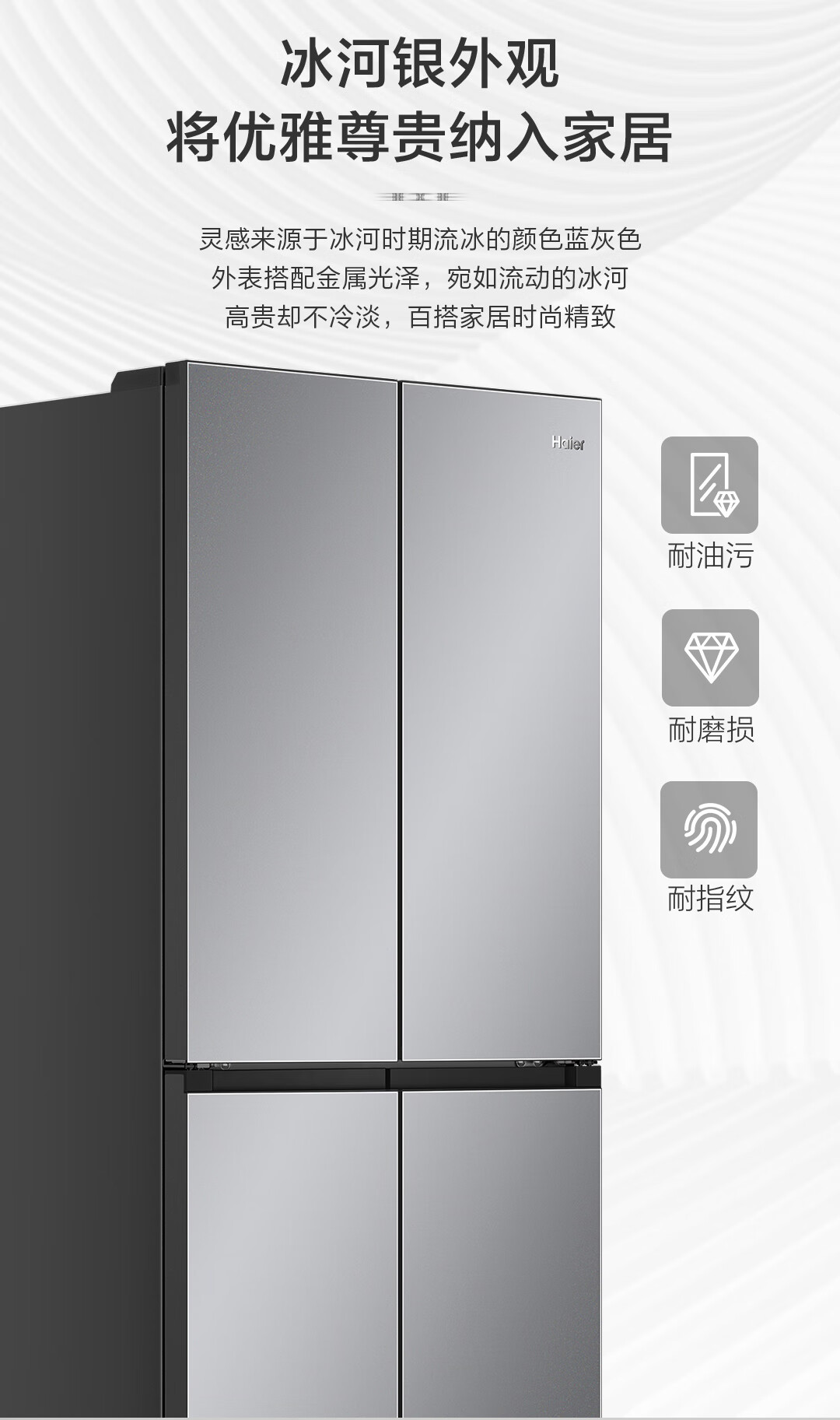 海尔(Haier)【小红花套系】476升冰河银594mm超薄零嵌EPP超净彩晶T型冰箱BCD-476WGHTDB9SNU1