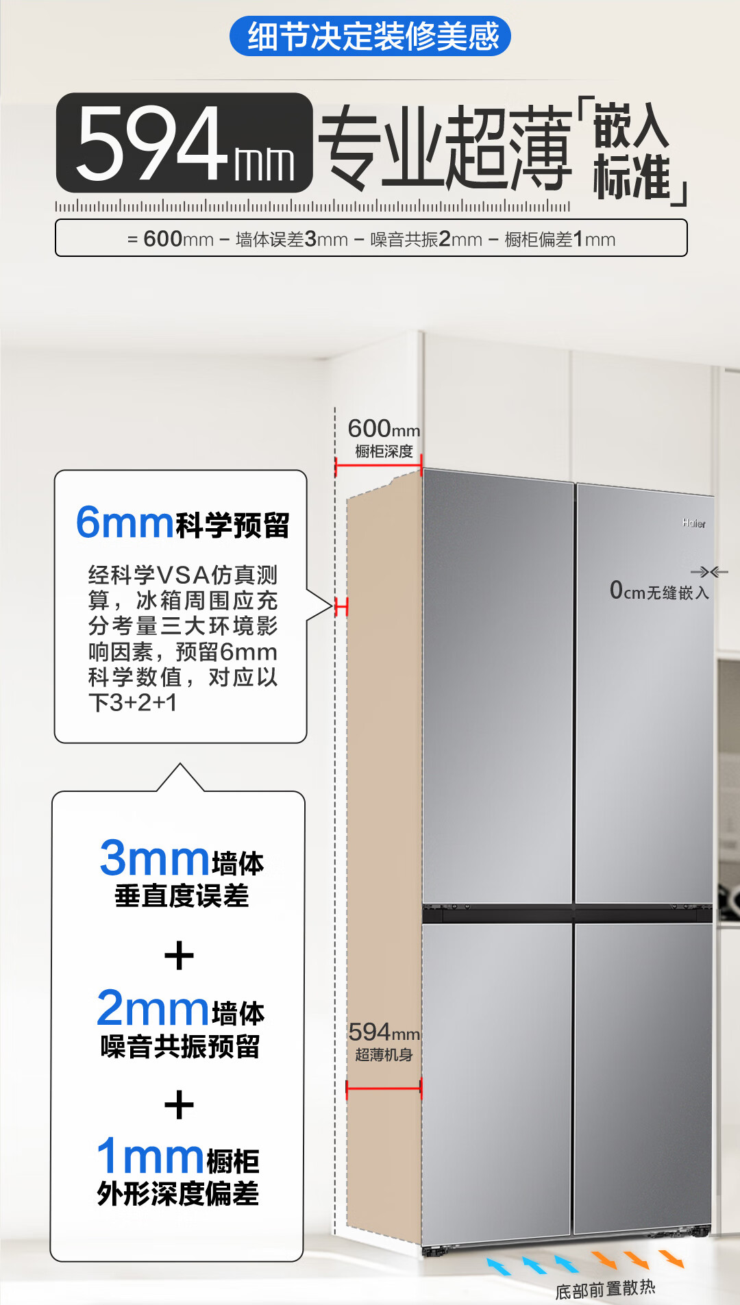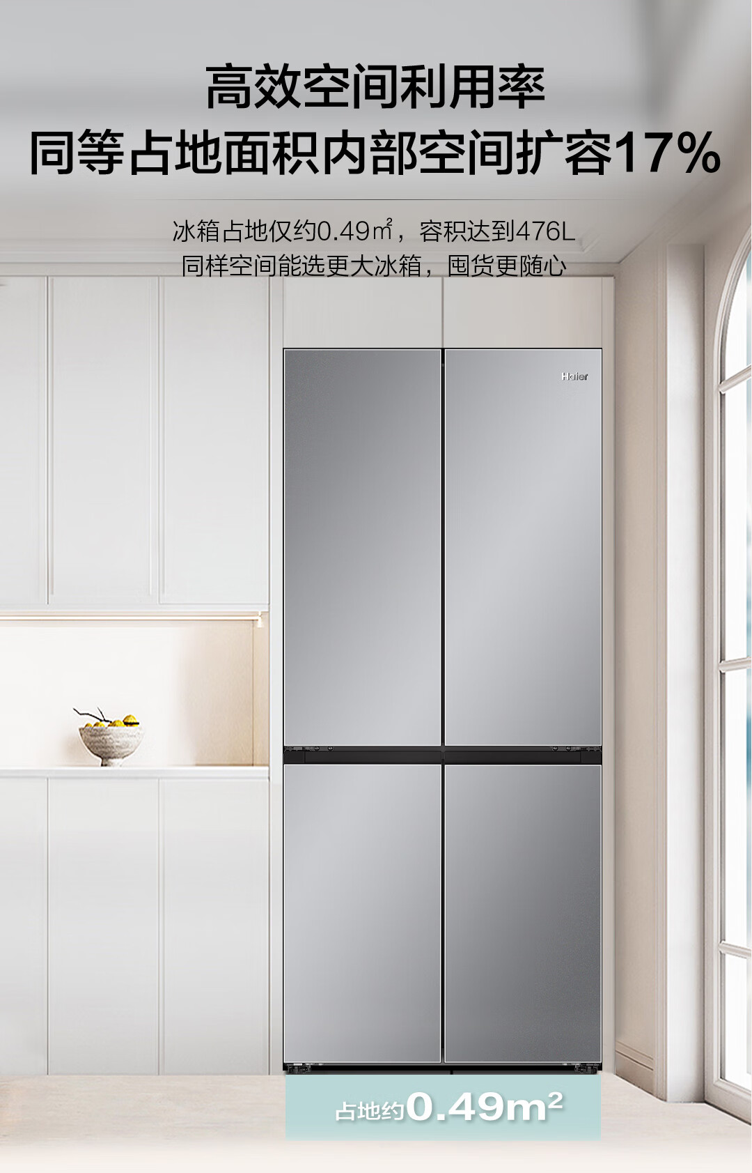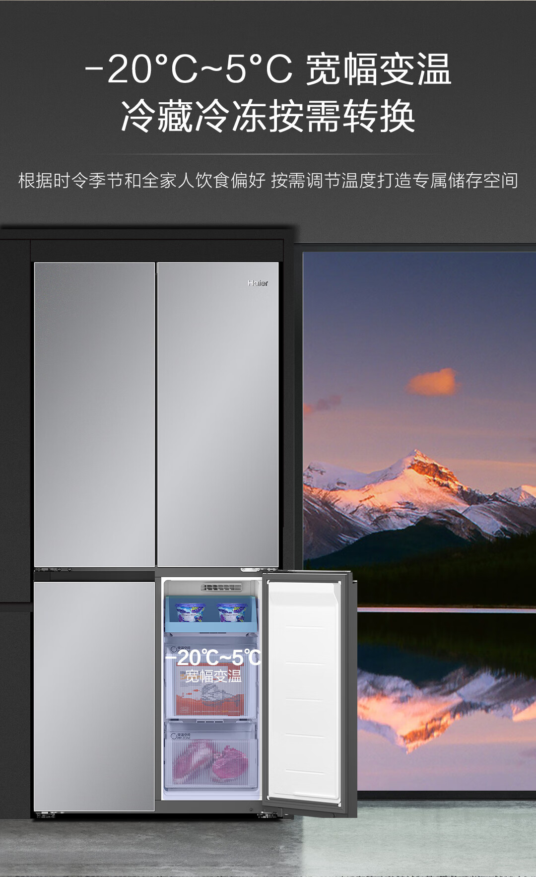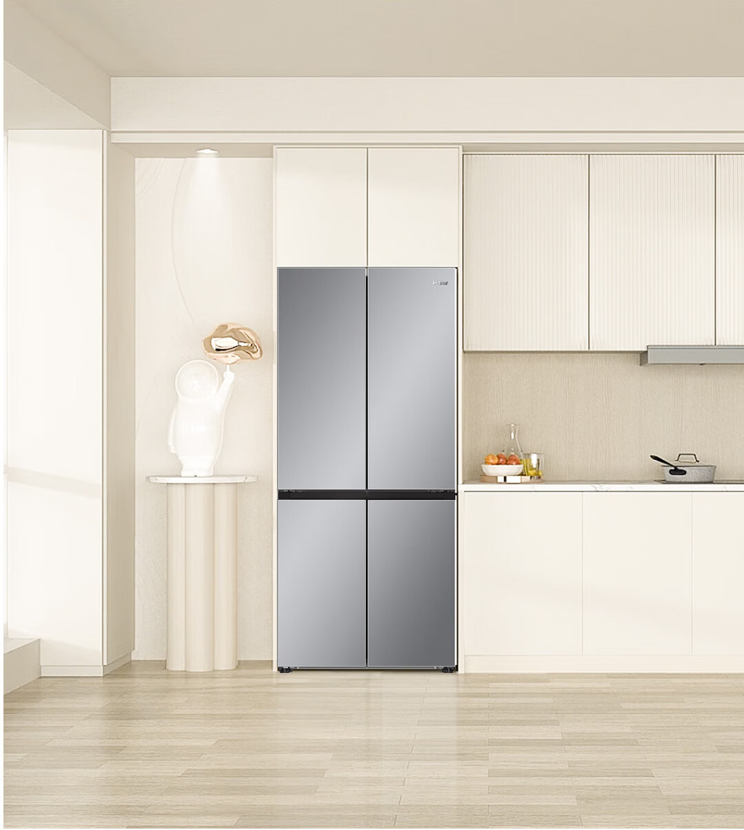 海尔(Haier)【小红花套系】476升冰河银594mm超薄零嵌EPP超净彩晶T型冰箱BCD-476WGHTDB9SNU1