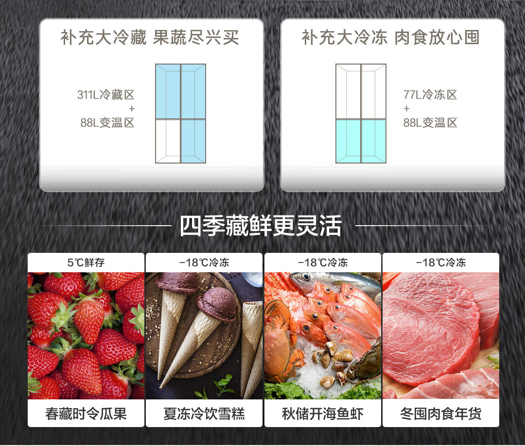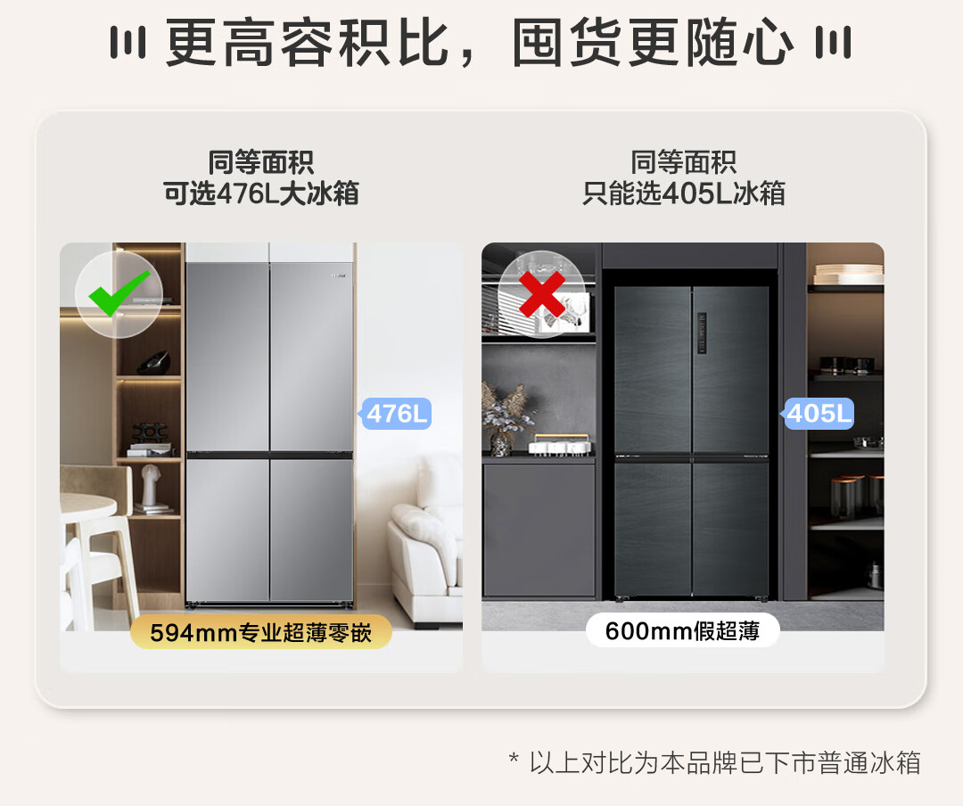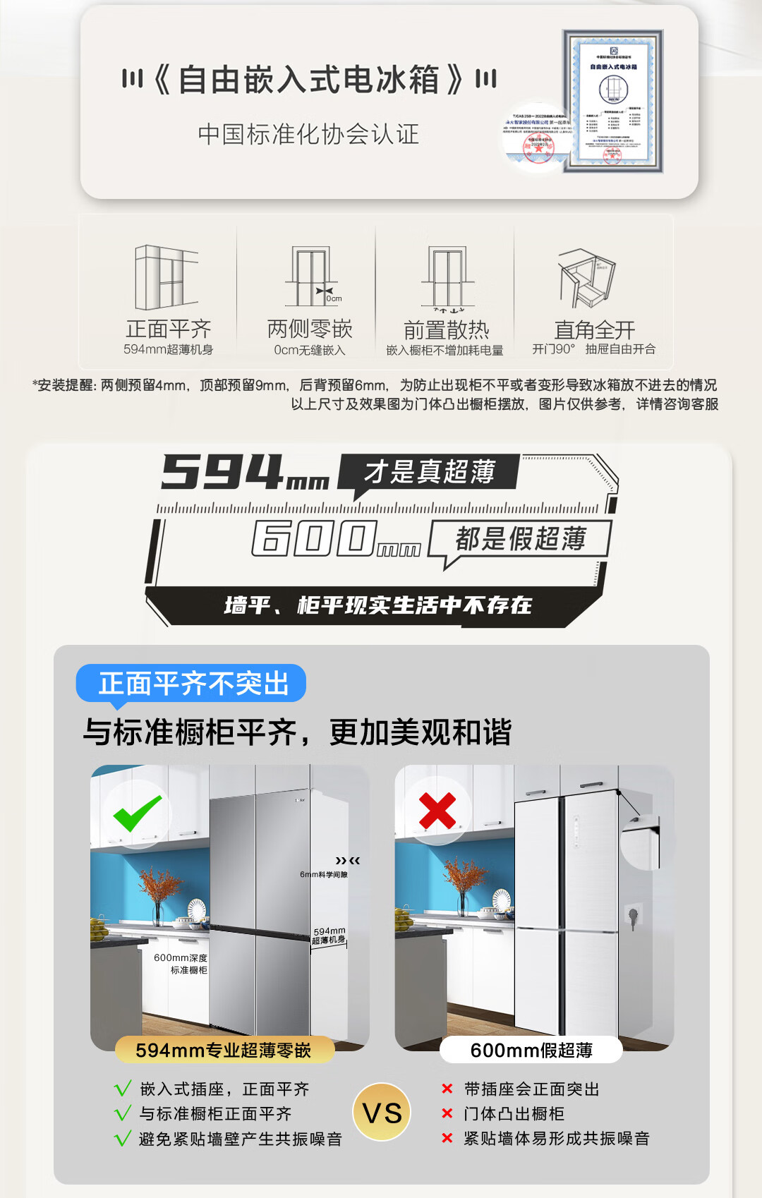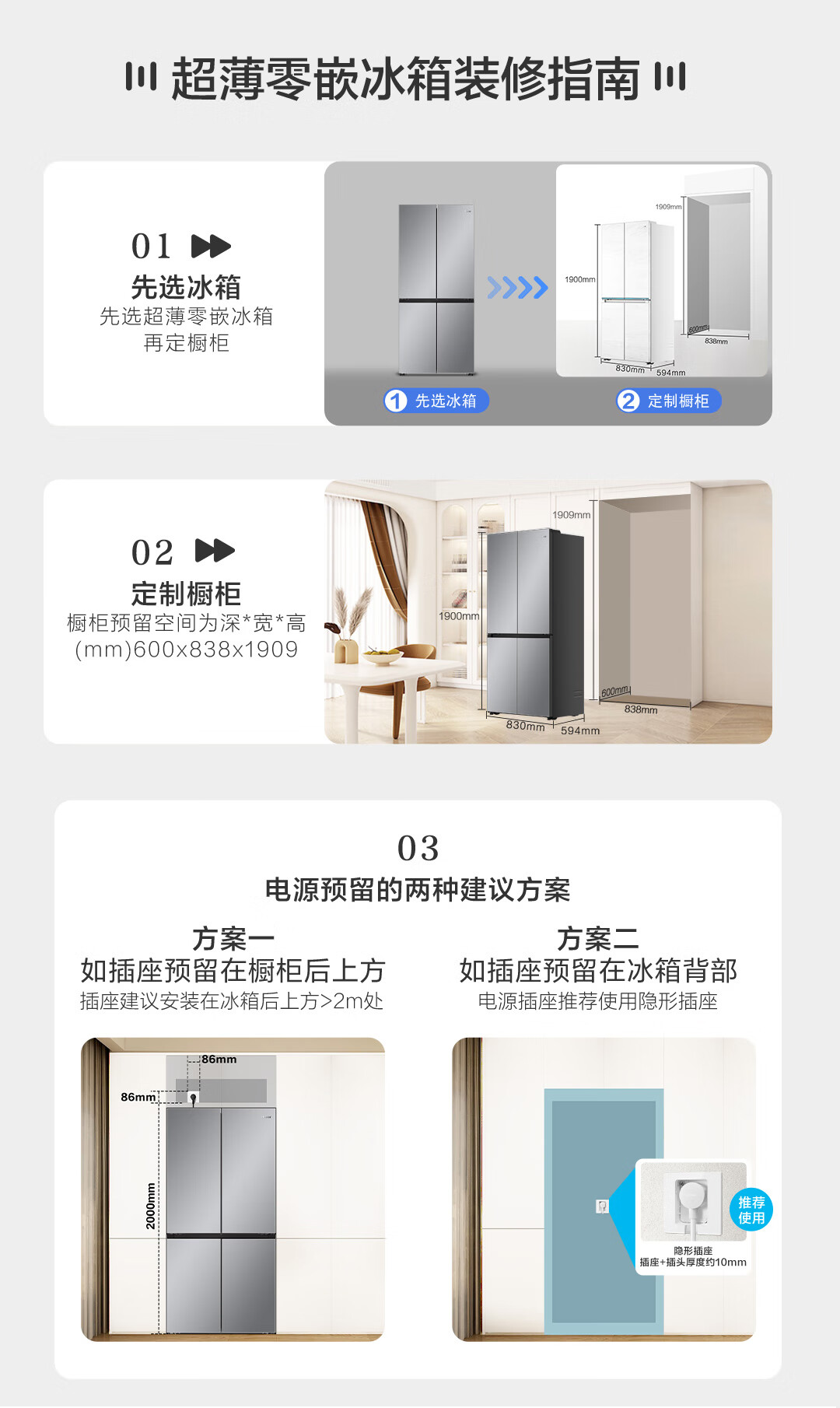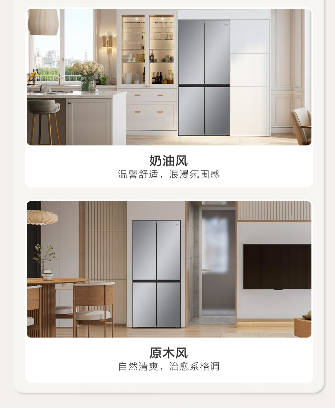 海尔(Haier)【小红花套系】476升冰河银594mm超薄零嵌EPP超净彩晶T型冰箱BCD-476WGHTDB9SNU1