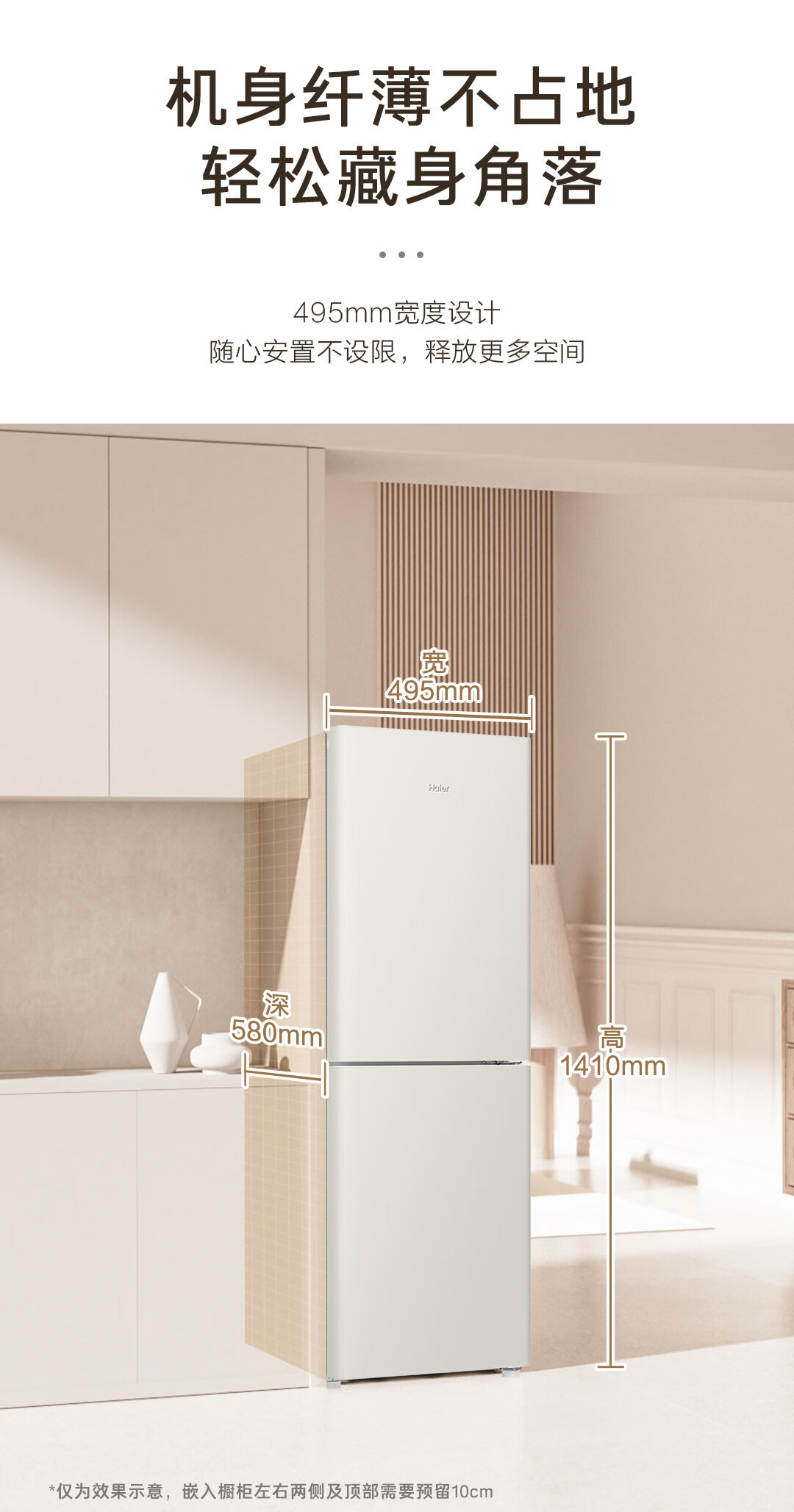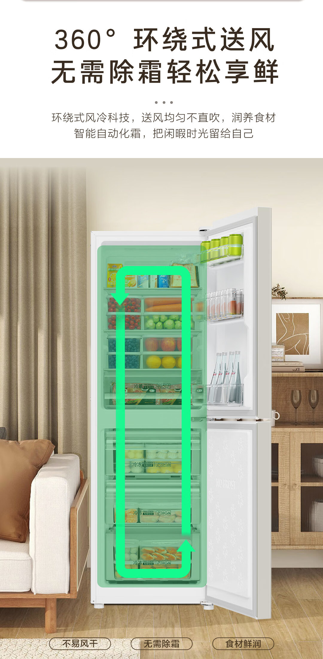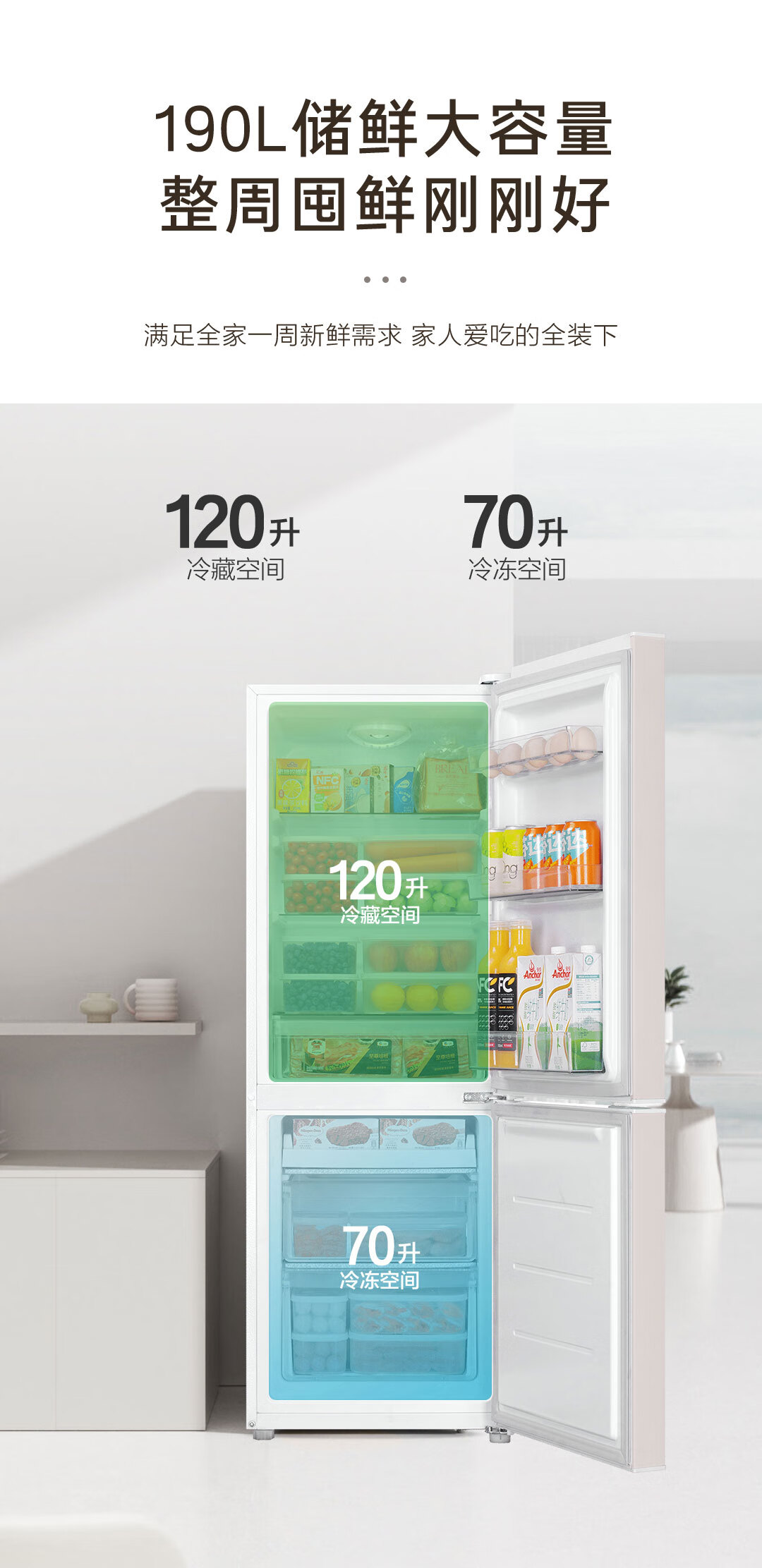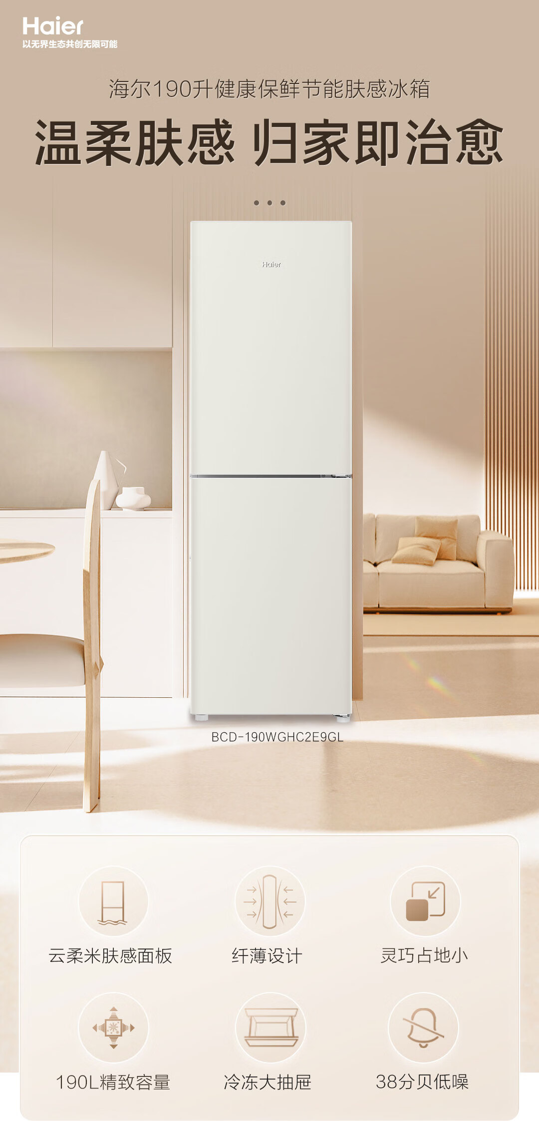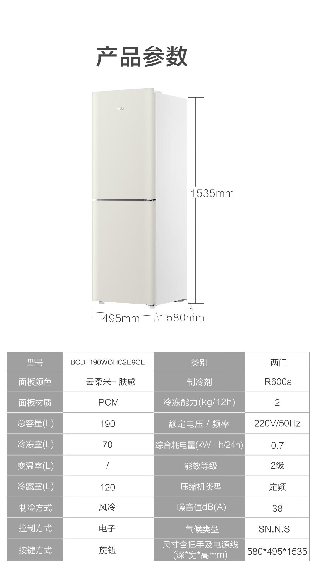 海尔(Haier)190升风冷无霜二门两门双门节能小户型家用电冰箱租房冷藏冷冻BCD-190WGHC2E9GL