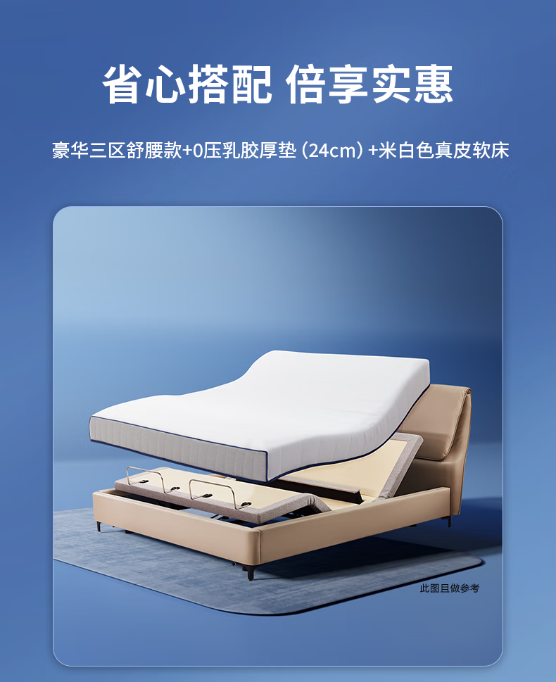 海享睡M3舒腰深睡智能床加硬护脊一键入眠按摩护腰 PB003真皮软床+舒腰床架+绵床垫 1.8米