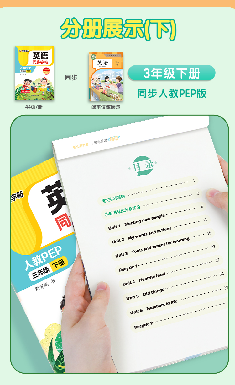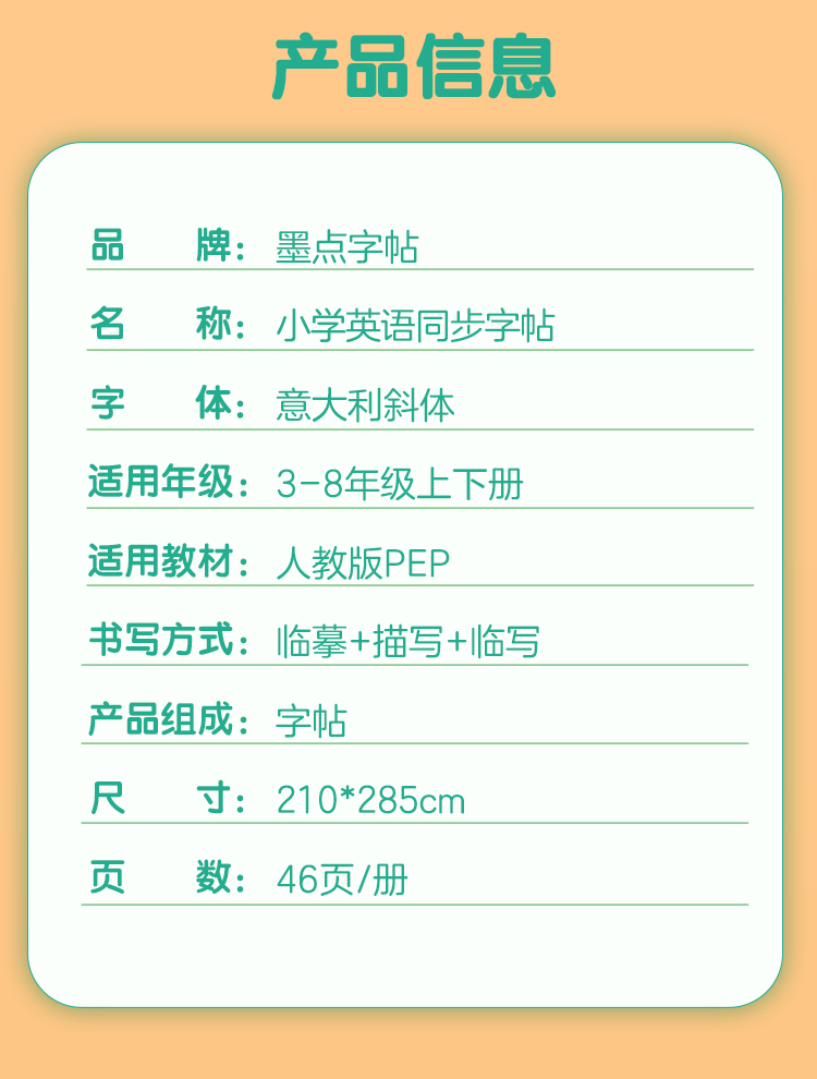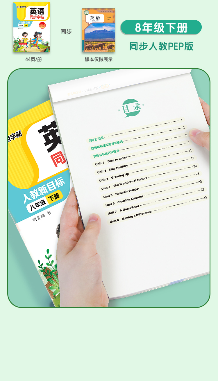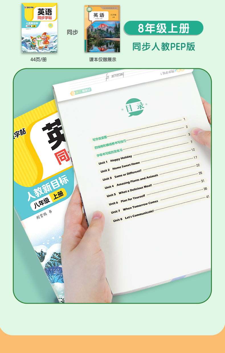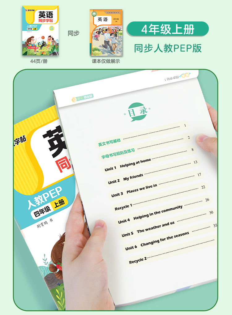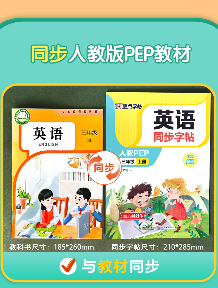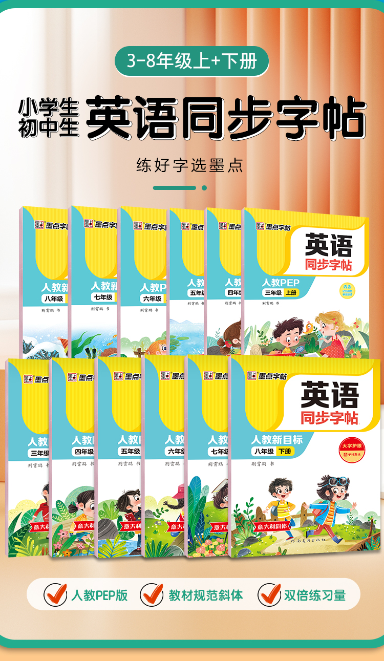 墨点字帖 英语同步字帖 人教版3-8年级上下册意大利斜体英语练字帖