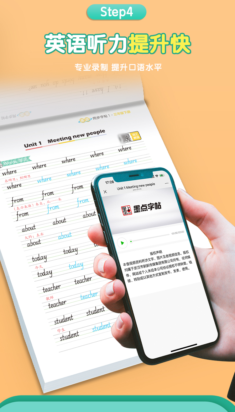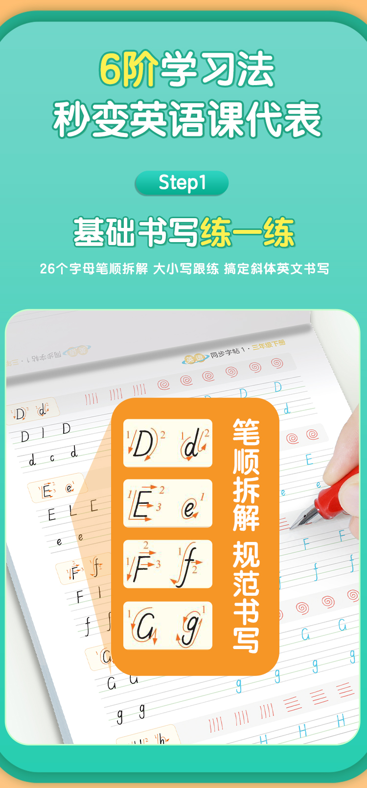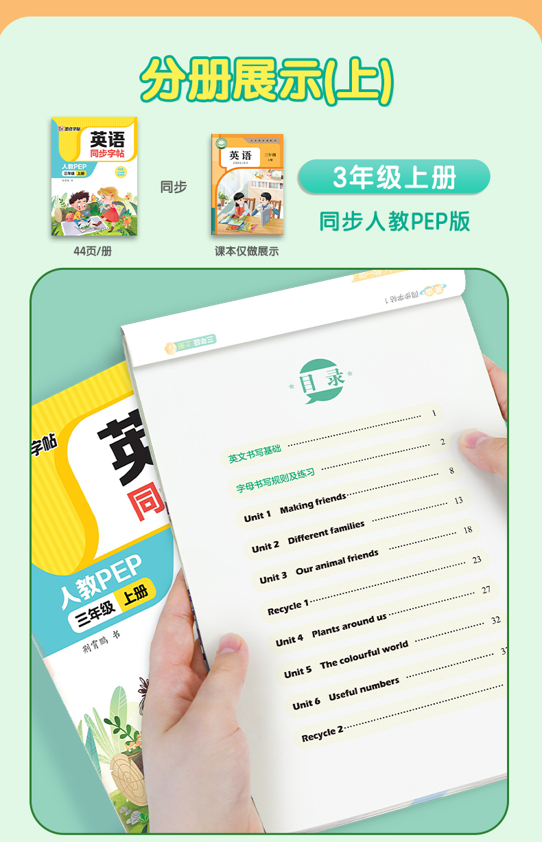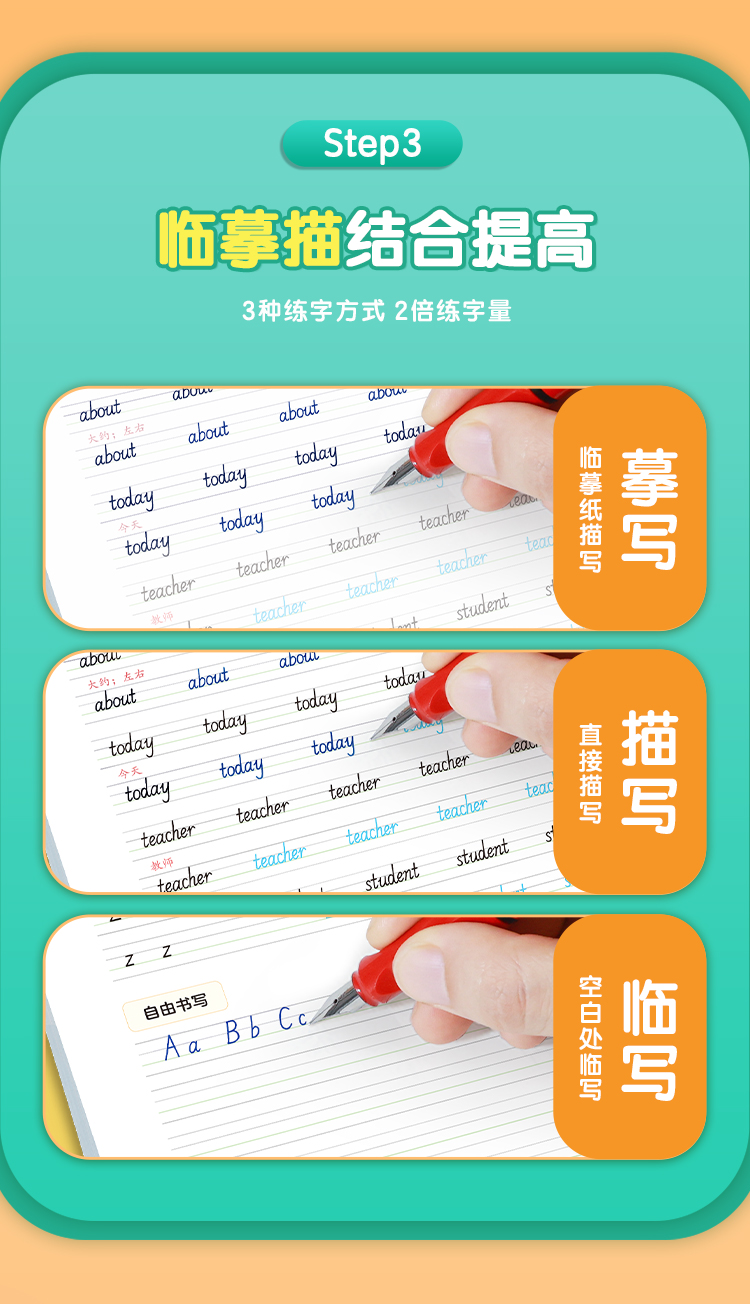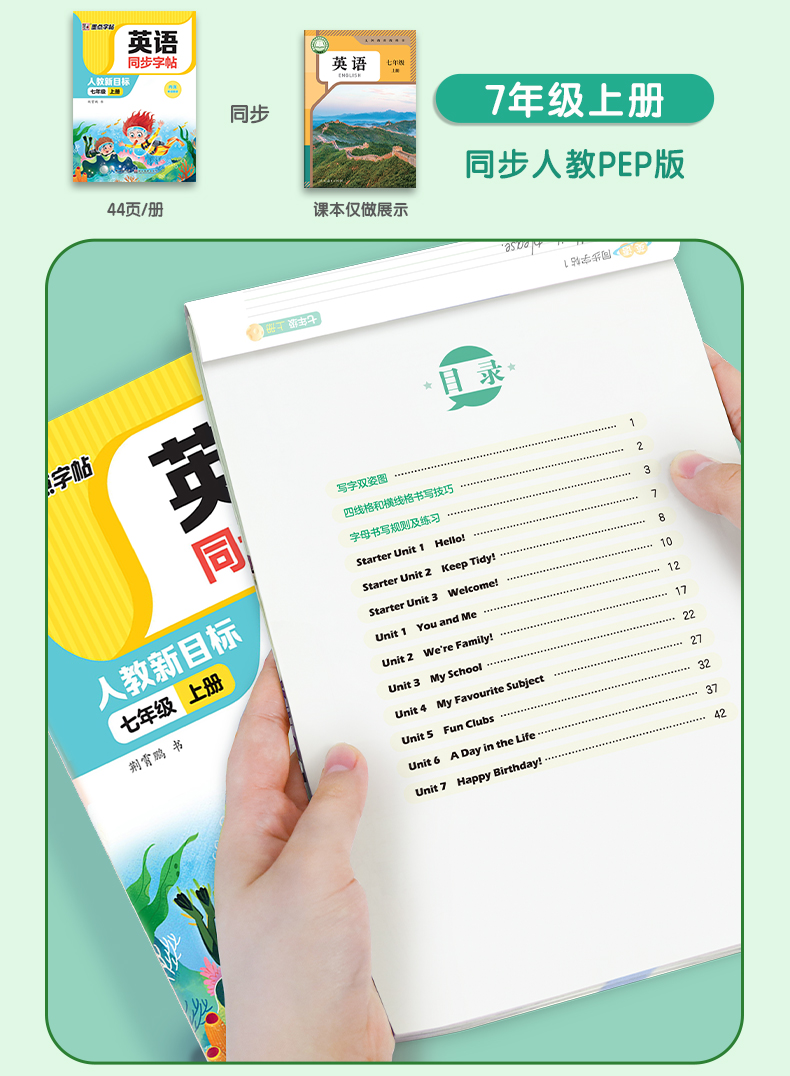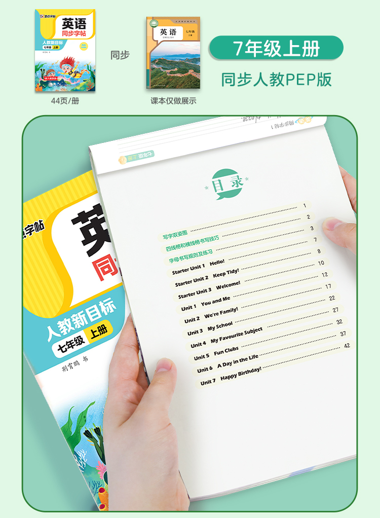 墨点字帖 英语同步字帖 人教版3-8年级上下册意大利斜体英语练字帖