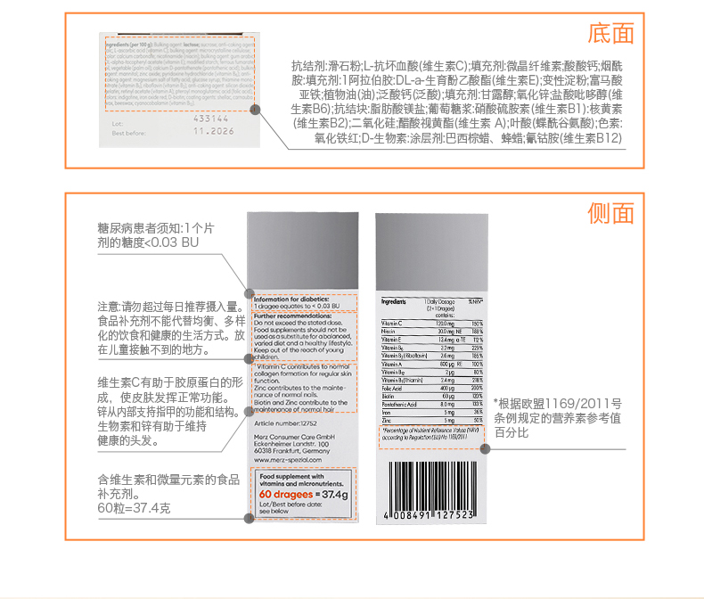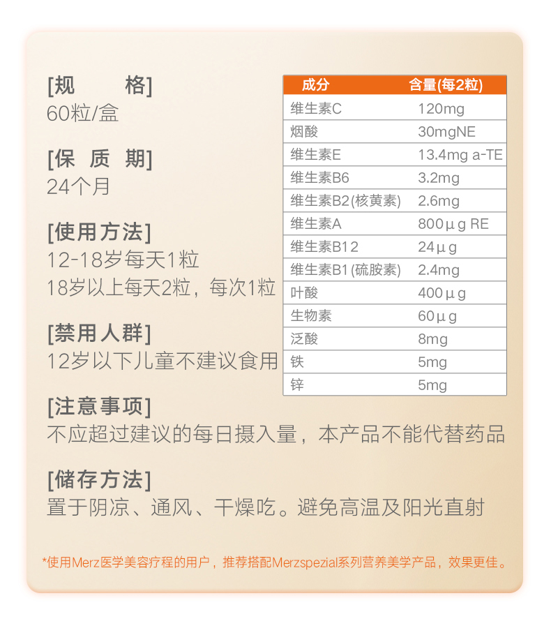 【品牌名称】:Merz Spezial德国麦施传奇美肌丸 60粒