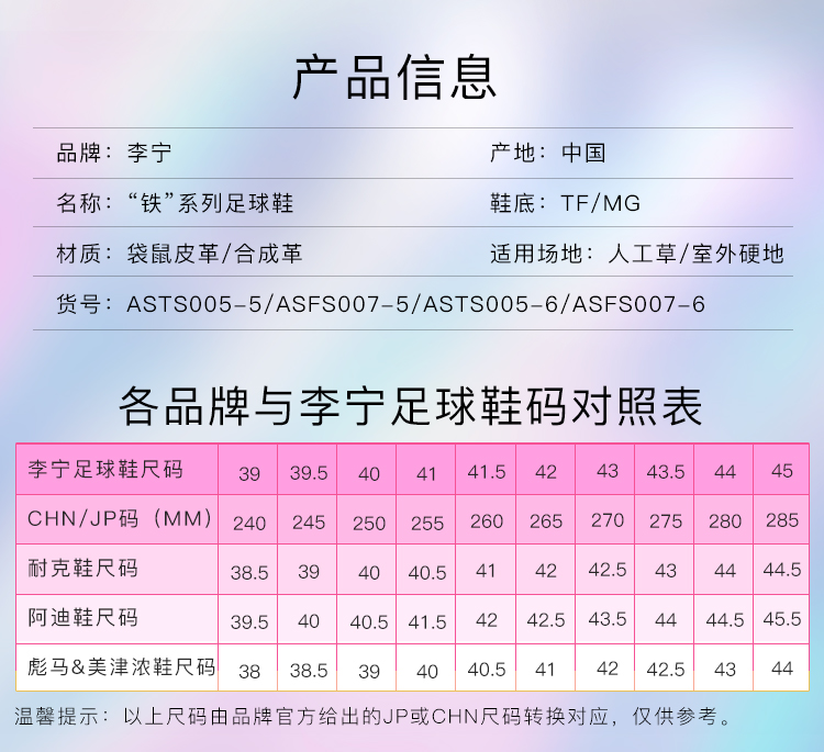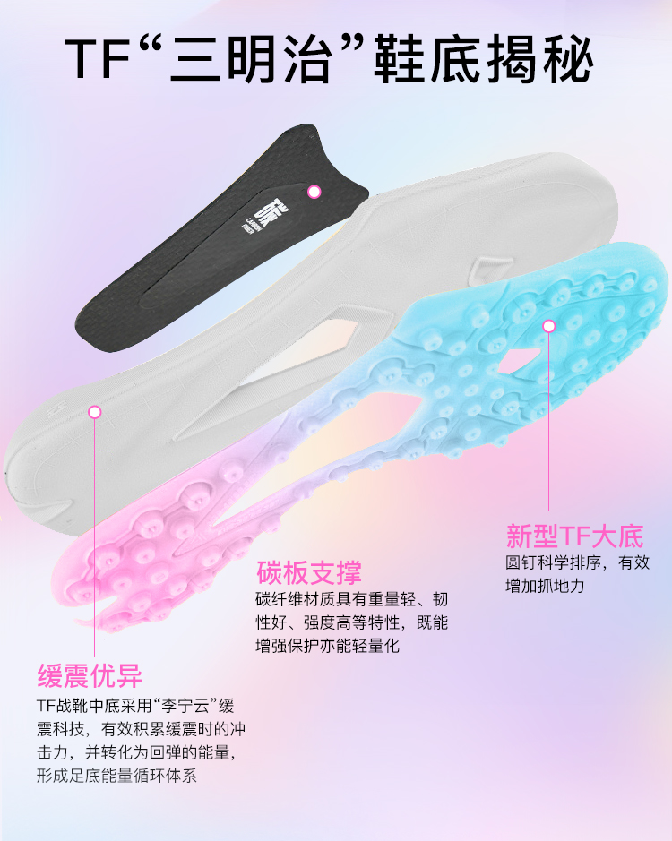 Lining/李宁 铁2升级 棉花糖配色碎钉足球鞋