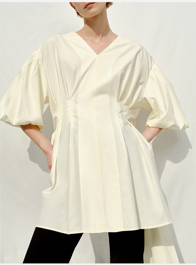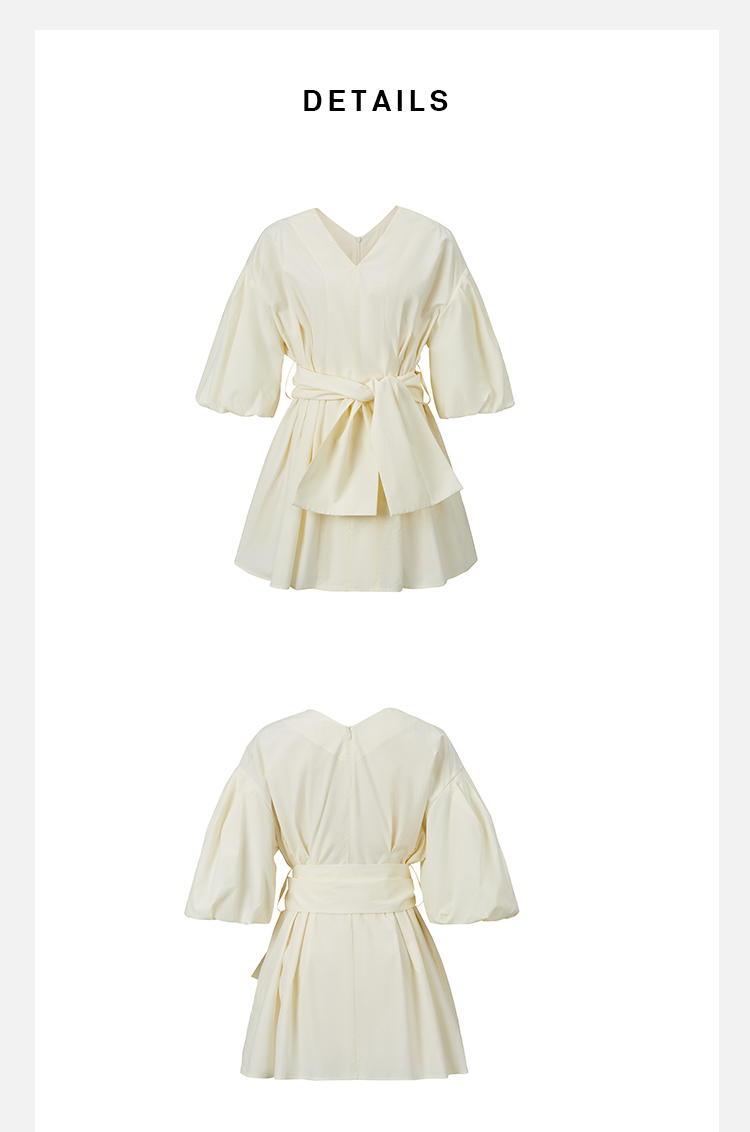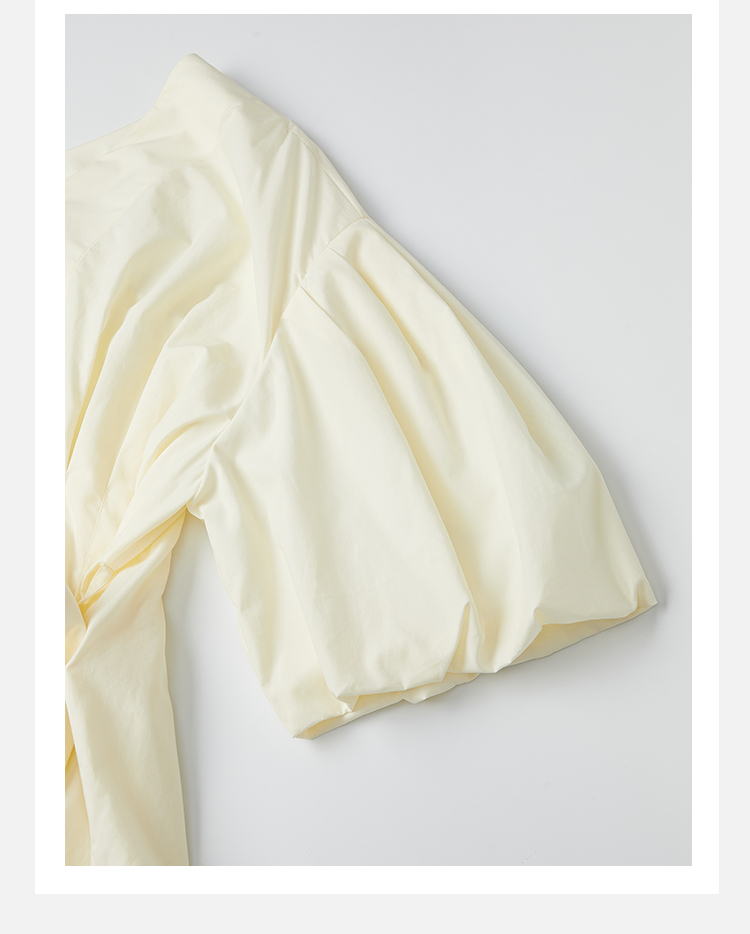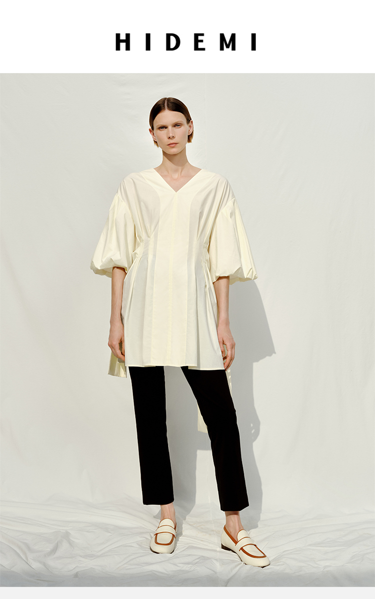 HIDEMI 度假系列奶油花苞袖v领收腰可拆卸腰带设计感多穿上衣