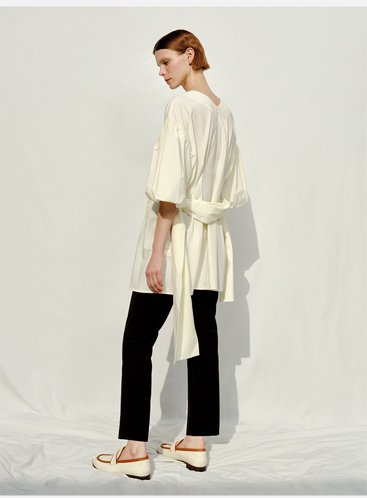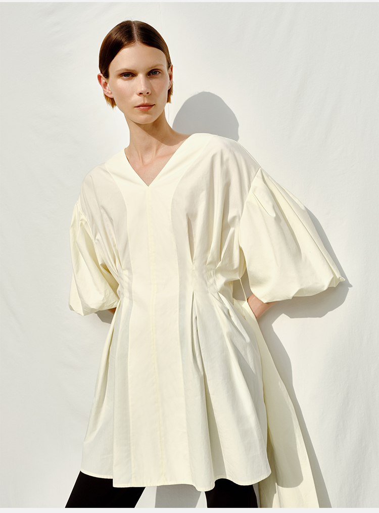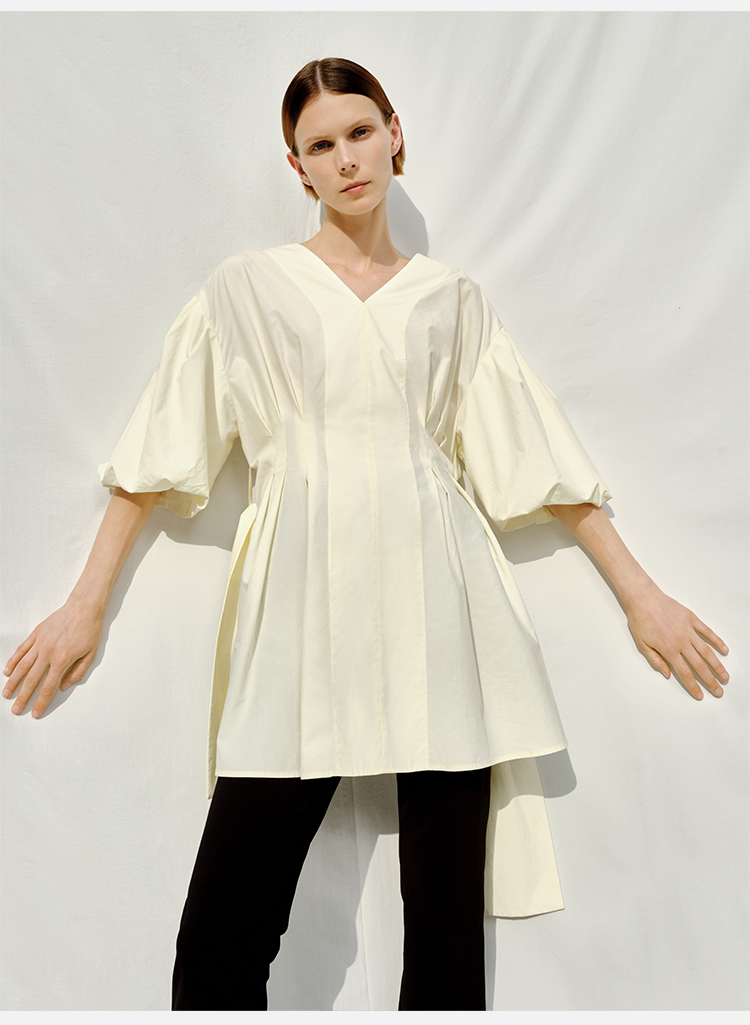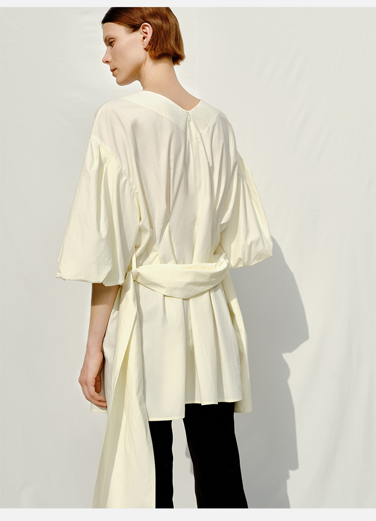 HIDEMI 度假系列奶油花苞袖v领收腰可拆卸腰带设计感多穿上衣