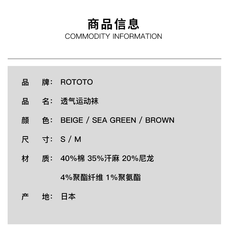 ROTOTO HEMP/ORGANIC 日本奈良制有机棉麻混纺透气运动男女低帮袜