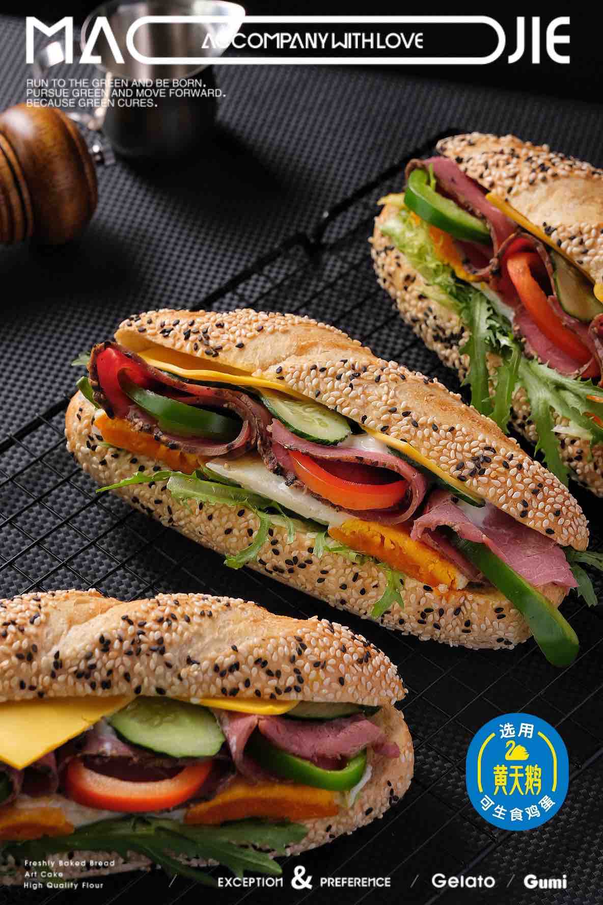 配料表:全麦粉,新西兰进口牛奶、韩国幼砂糖、新西兰奶粉、黄天鹅可生食鸡蛋(无沙门氏菌)、盐、鲜酵母、饮用水、荷美尔帕斯雀黑椒牛肉、黄天鹅太阳蛋、有机苦苣、丘比沙拉酱、黄芥末酱、青椒、黄瓜、西生菜
