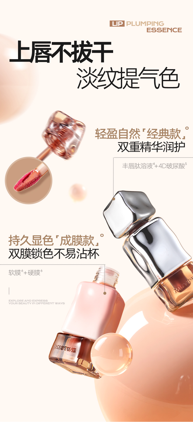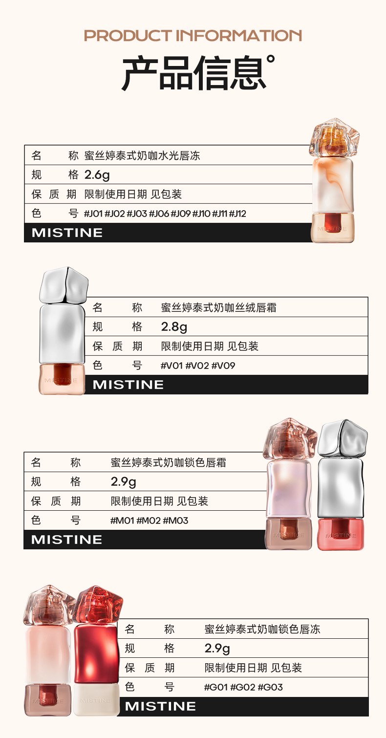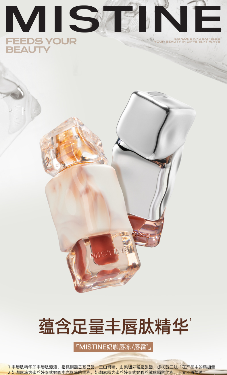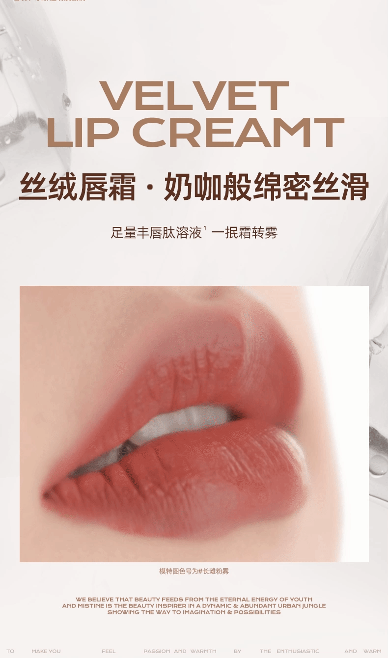 【上新】Mistine蜜丝婷奶咖唇釉镜面水光唇蜜口红裸色唇膏,融合水光镜面与丝绒质地双效妆感,蕴含足量丰唇肽与4D玻尿酸,上妆同时滋润双唇,展现自然柔和与时尚魅力