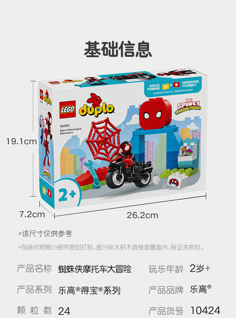 乐高LEGO 蜘蛛侠摩托车大冒险LEGC10424