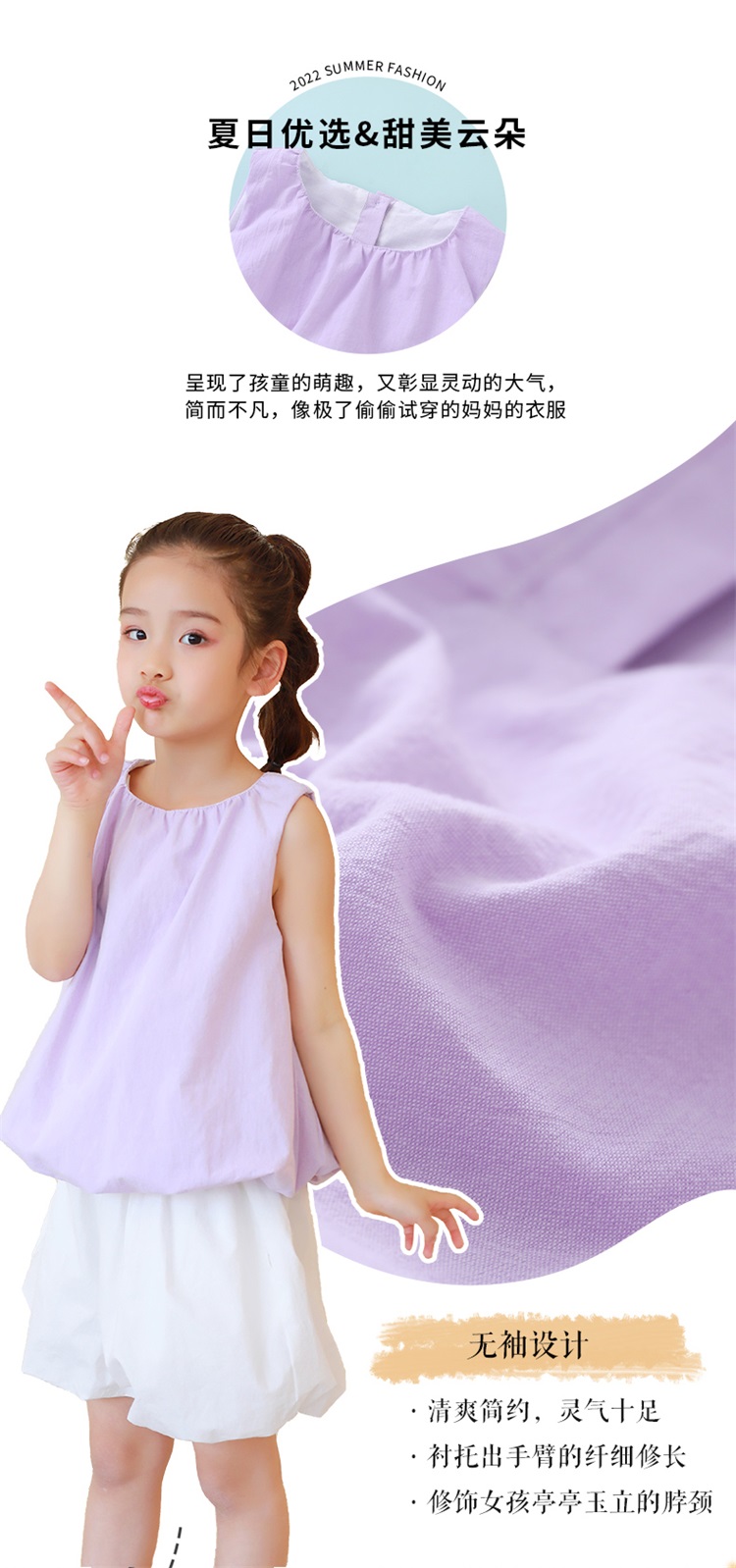 【气质网红爆款】2022龙之涵原创设计师款无袖面包上衣 面包短裤 全棉 三次高温水洗 简约气质款