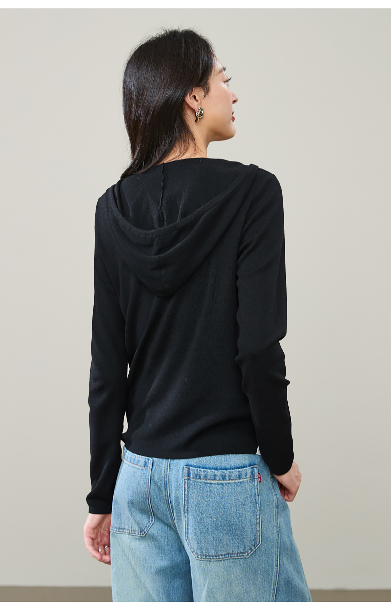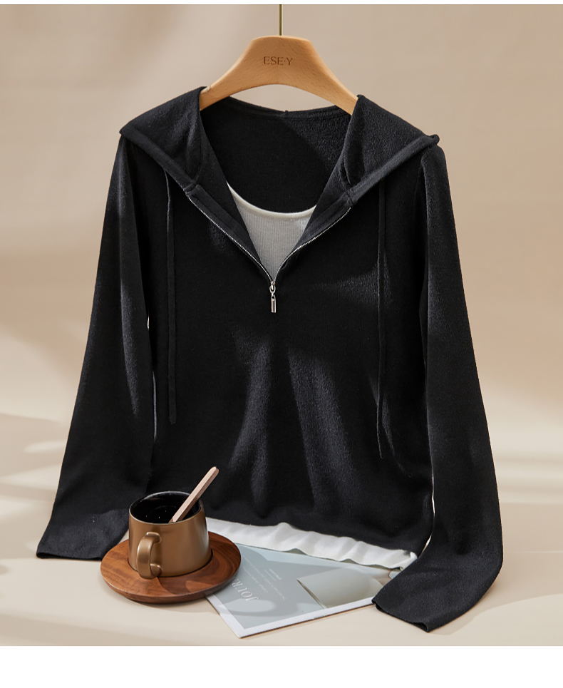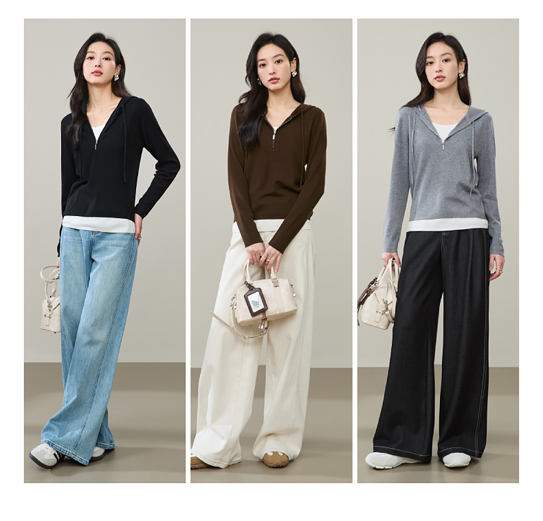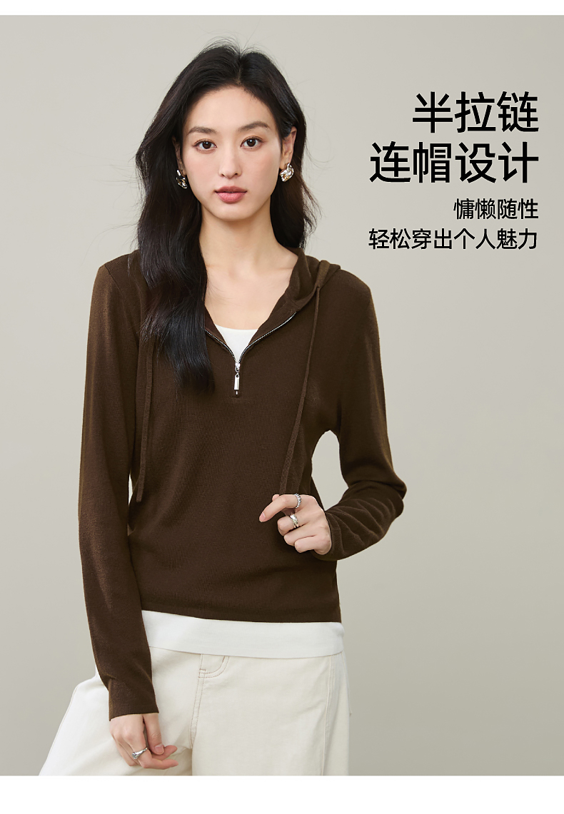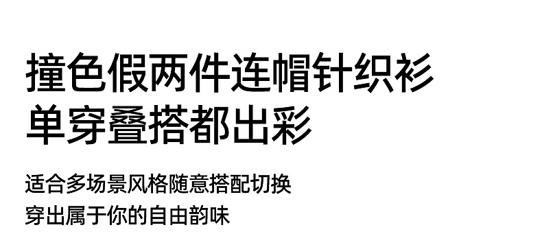 【桑蚕丝+绵羊毛-假两件打底】逸阳秋新款撞色V领连帽休闲卫衣5287