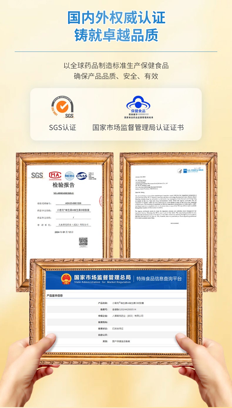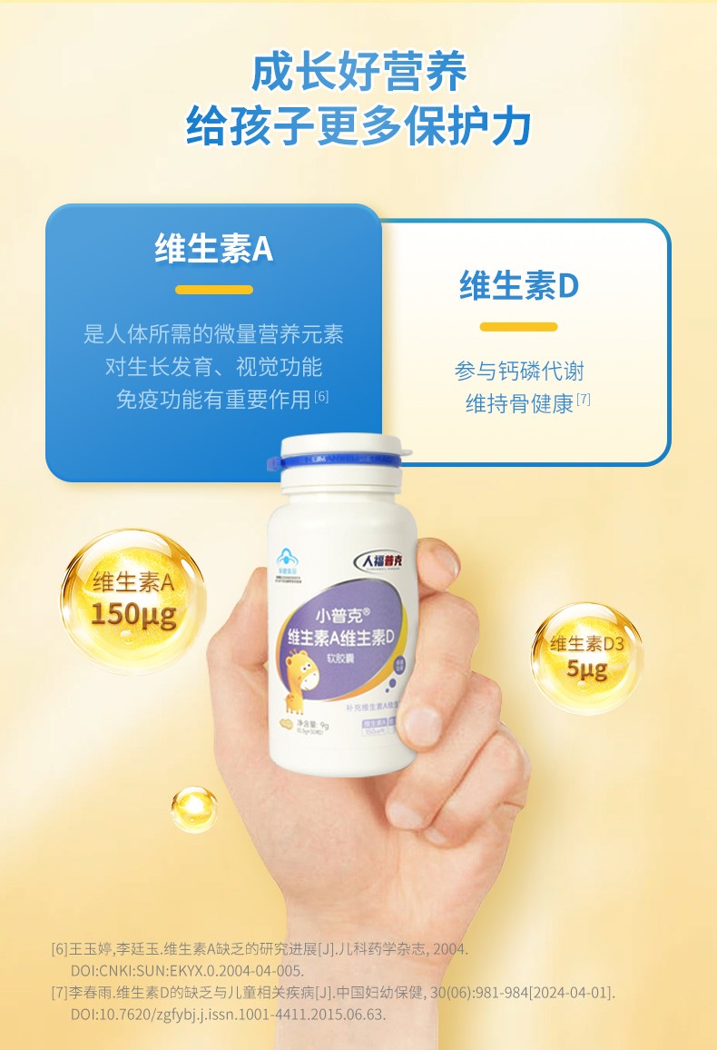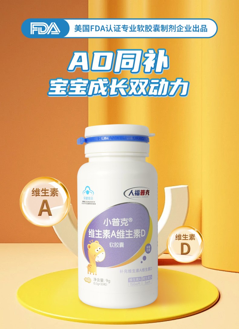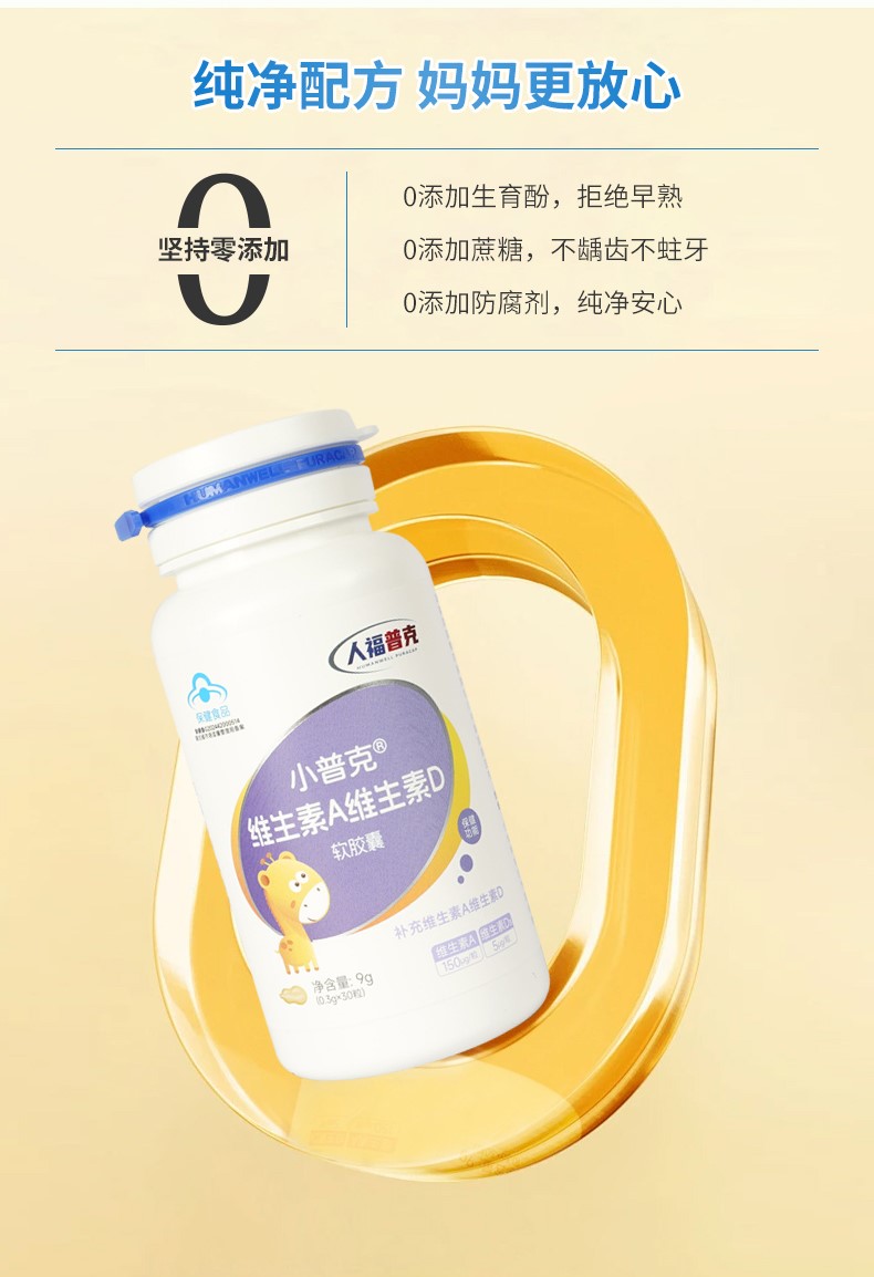 人福普克小普克维生素A维生素D软胶囊1-17岁儿童孕妇乳母补维生素0.3g*30粒