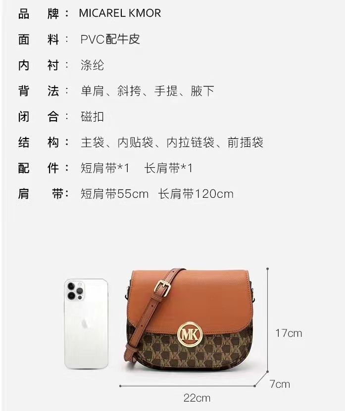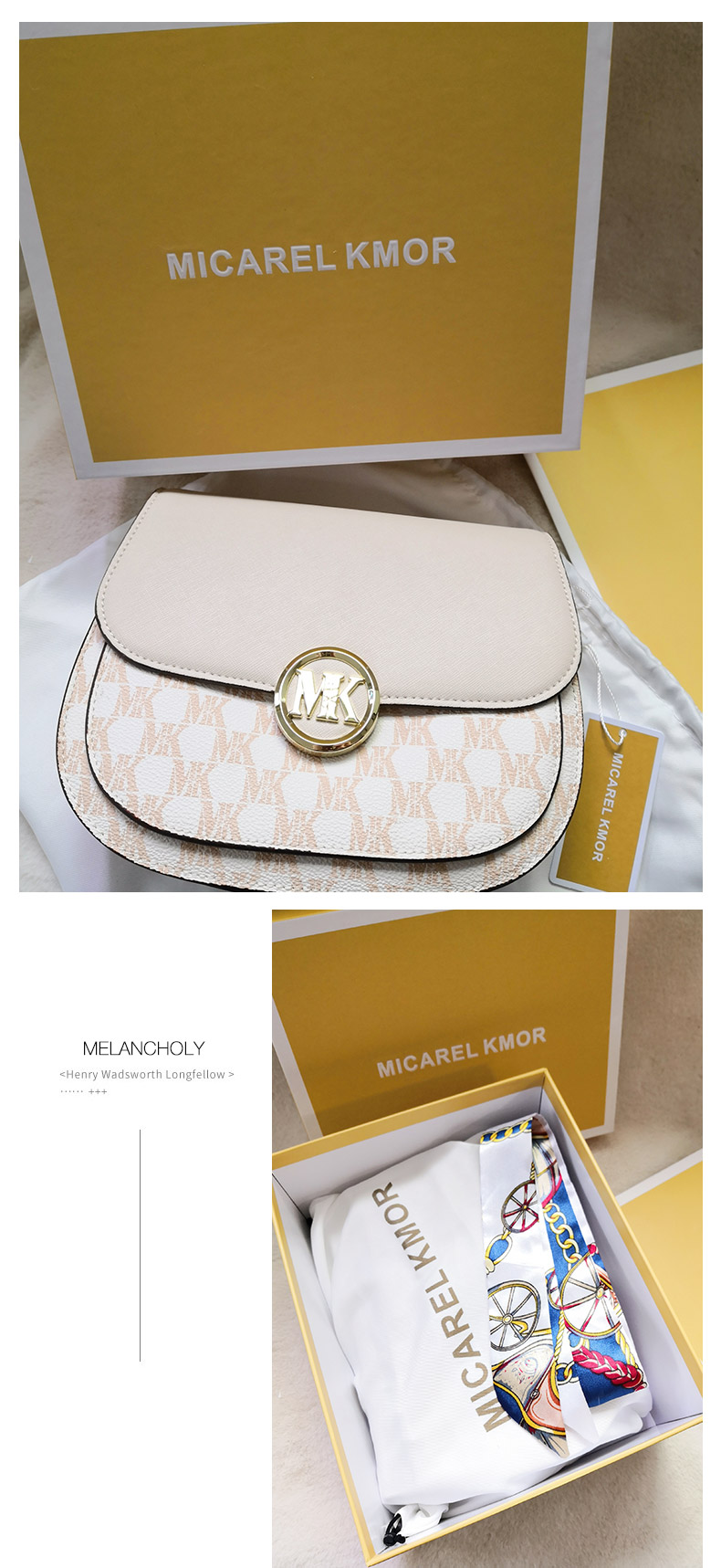 给大家介绍的这款是MK的马鞍包,这是一款单肩斜挎的精致小巧马鞍包,圆润的边角加上挺括的圆弧边角,让包包显得柔和大方。