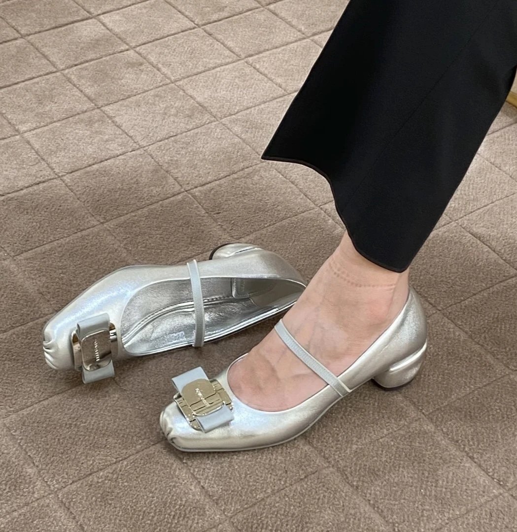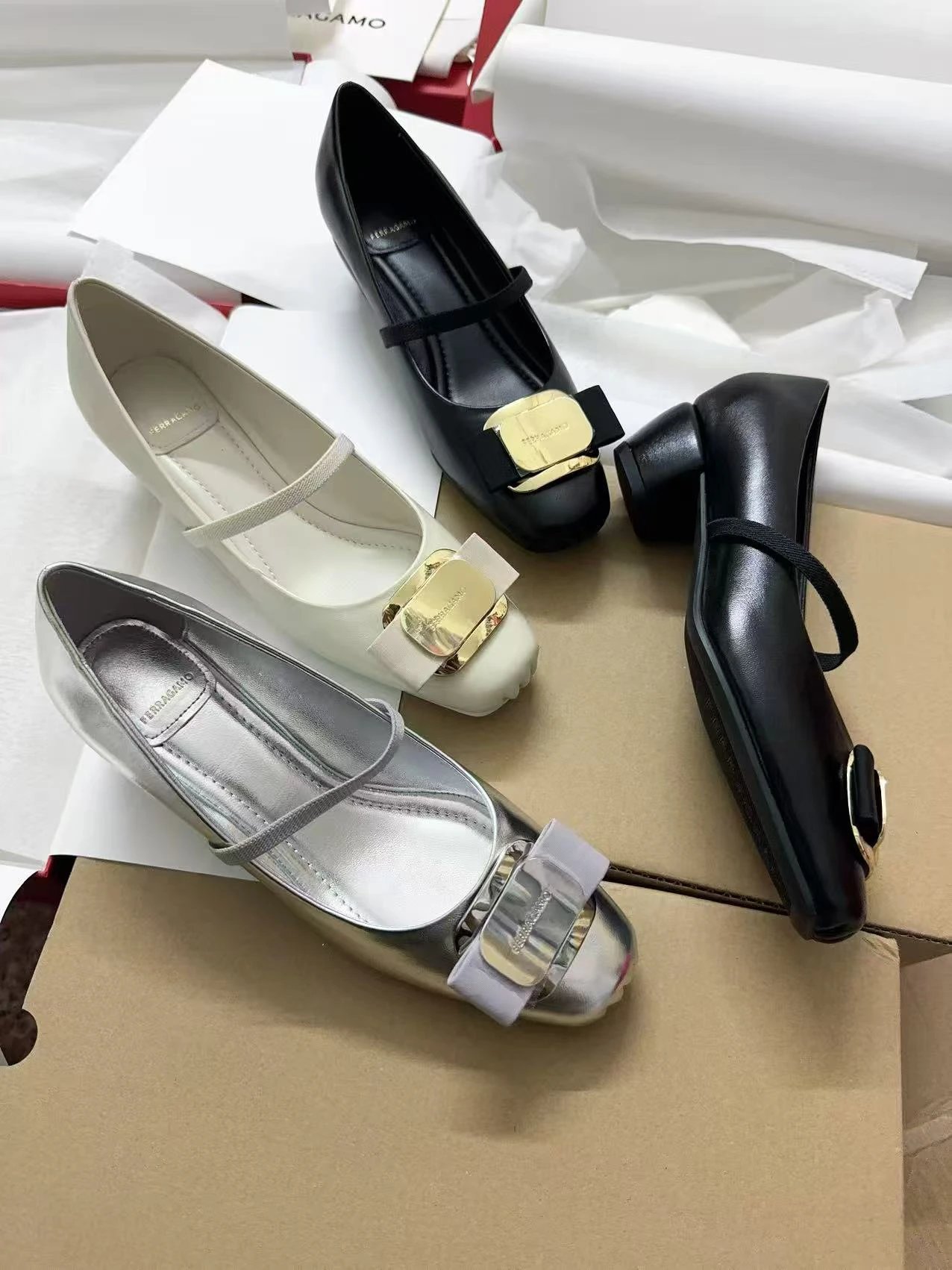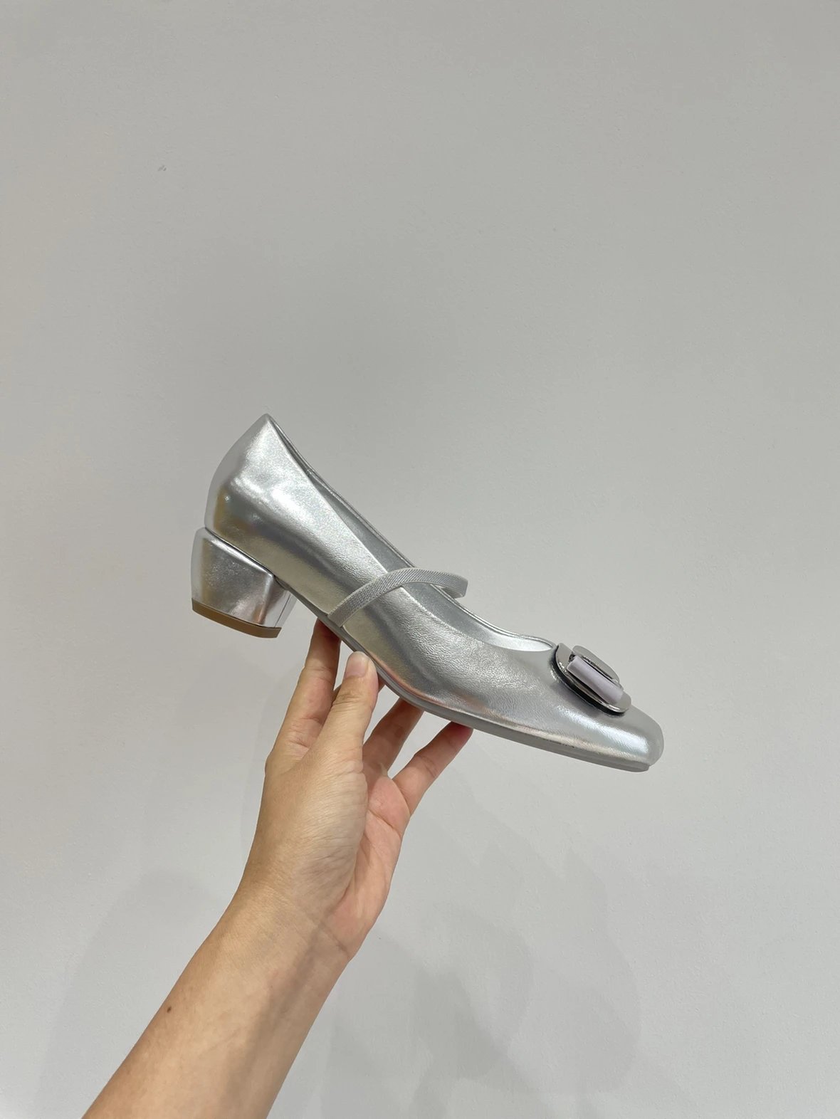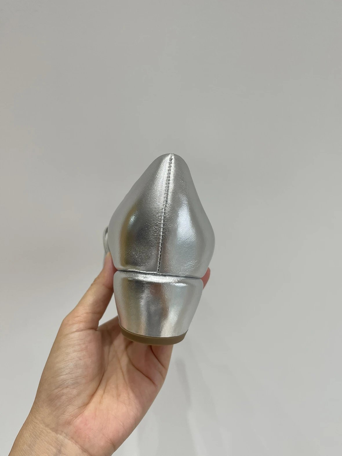 重磅推荐 菲拉金属扣单鞋 羊皮金属银单鞋 羊皮中跟单鞋/平底单鞋