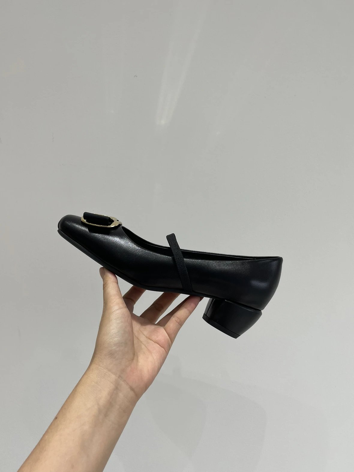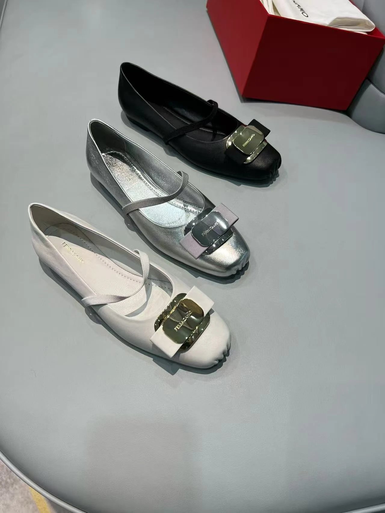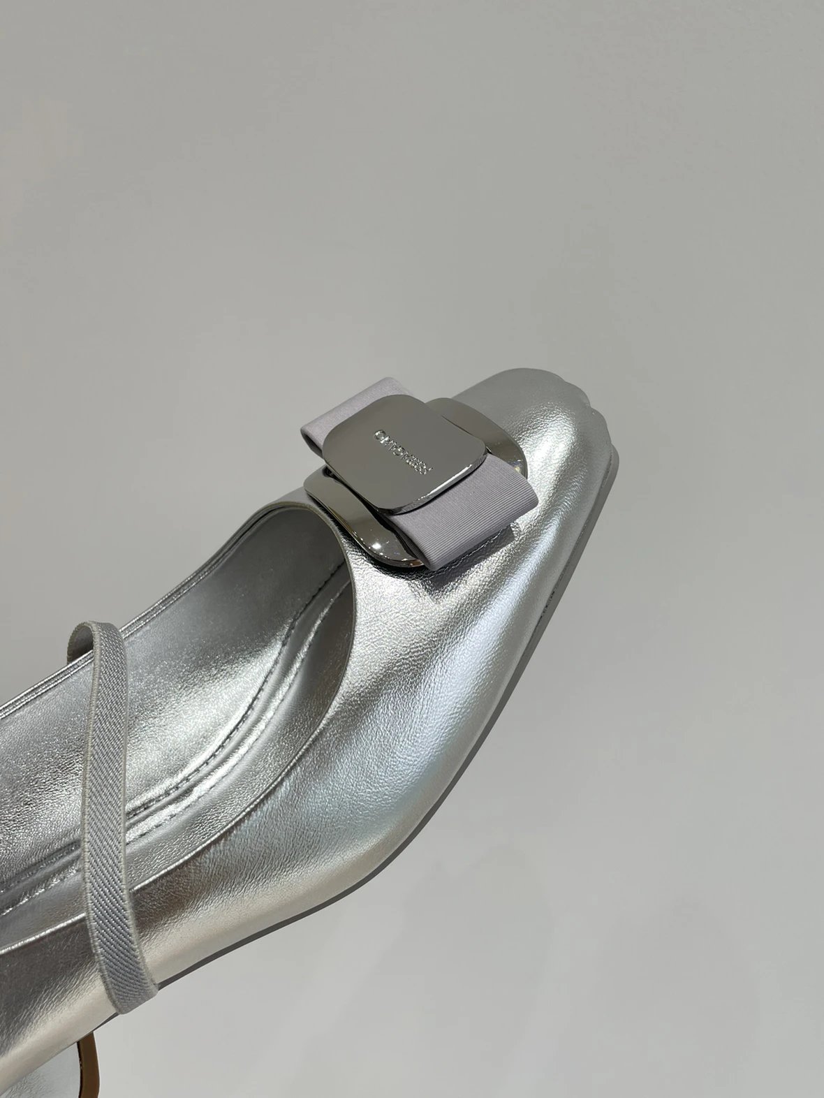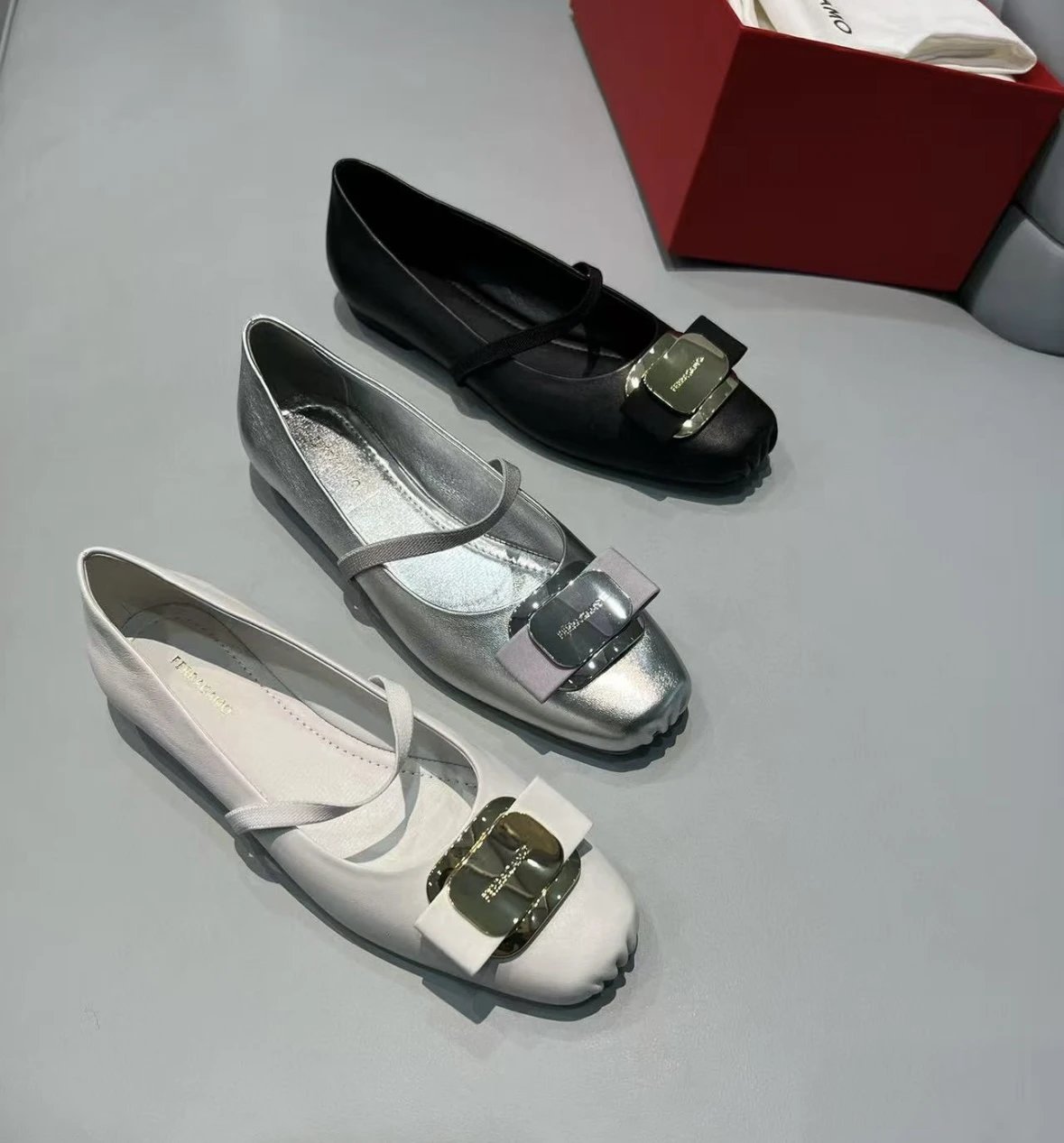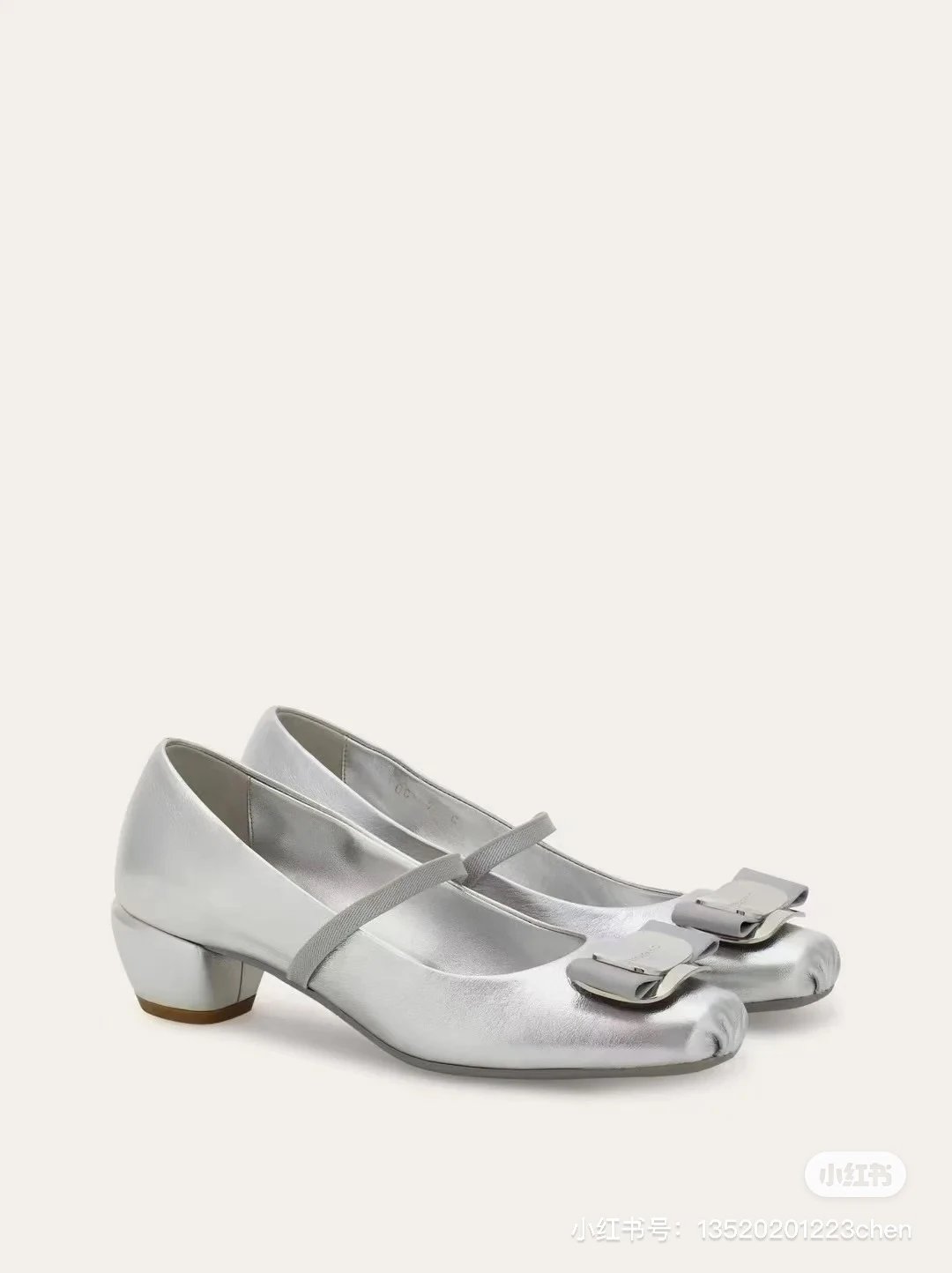 重磅推荐 菲拉金属扣单鞋 羊皮金属银单鞋 羊皮中跟单鞋/平底单鞋