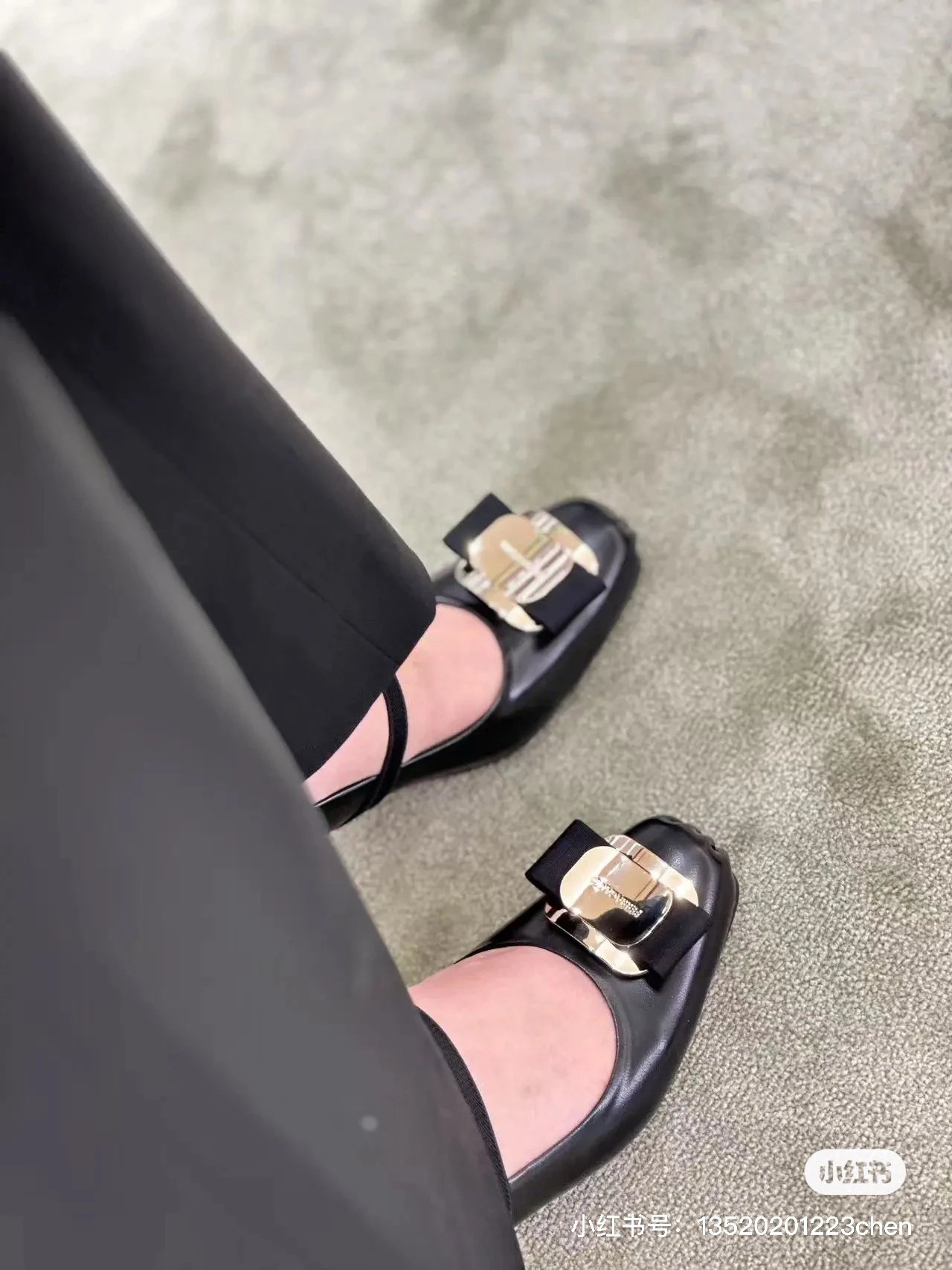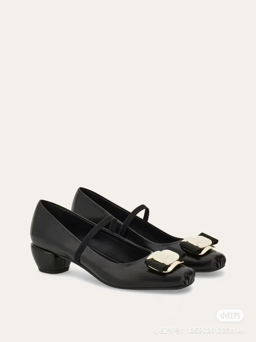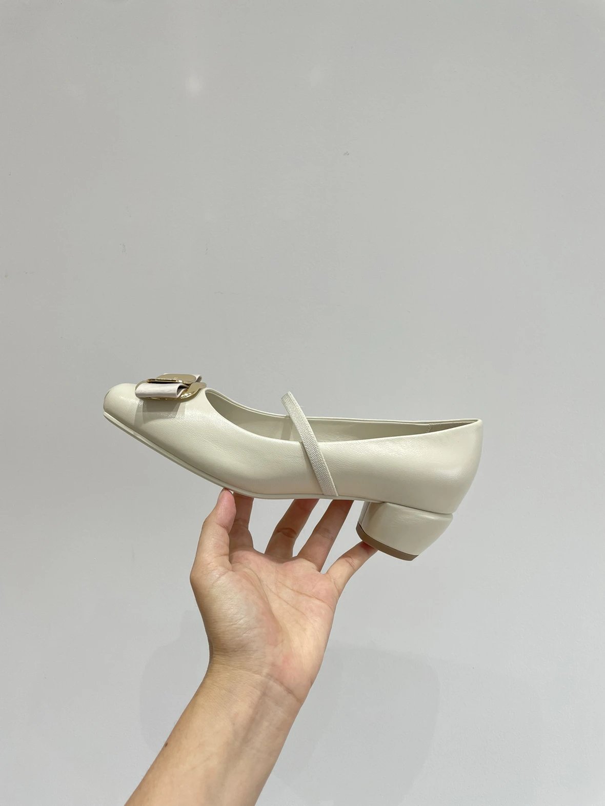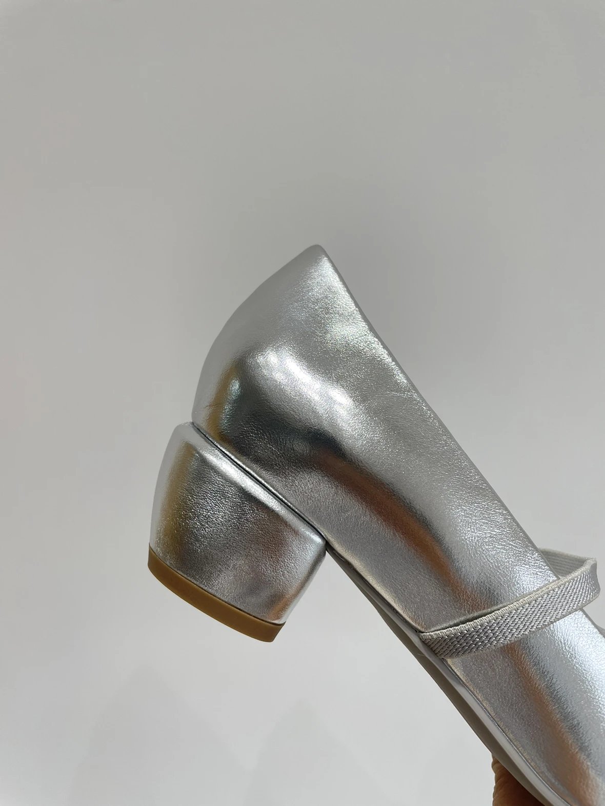 重磅推荐 菲拉金属扣单鞋 羊皮金属银单鞋 羊皮中跟单鞋/平底单鞋