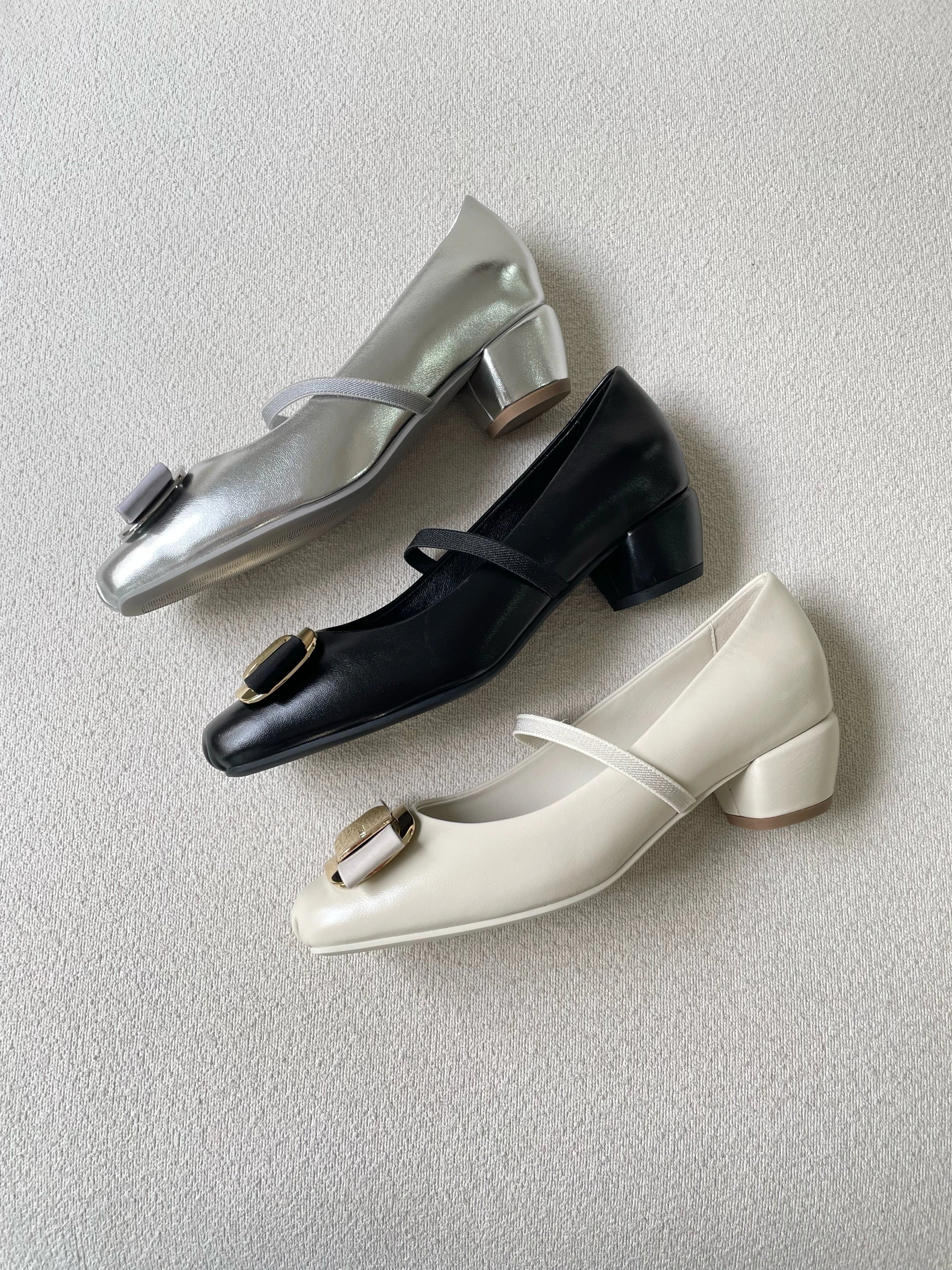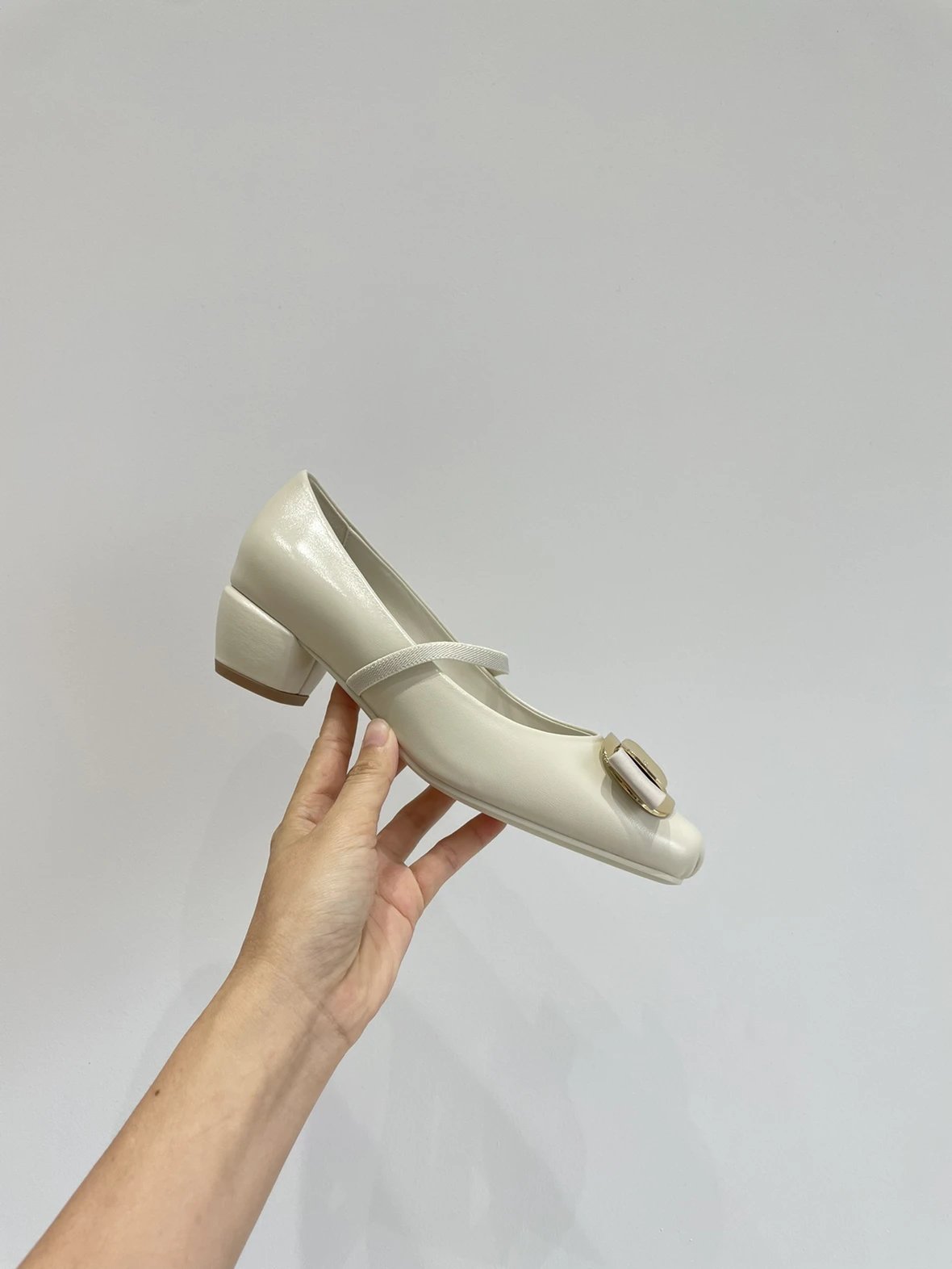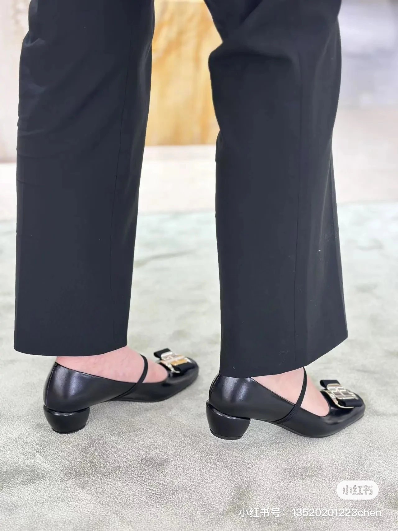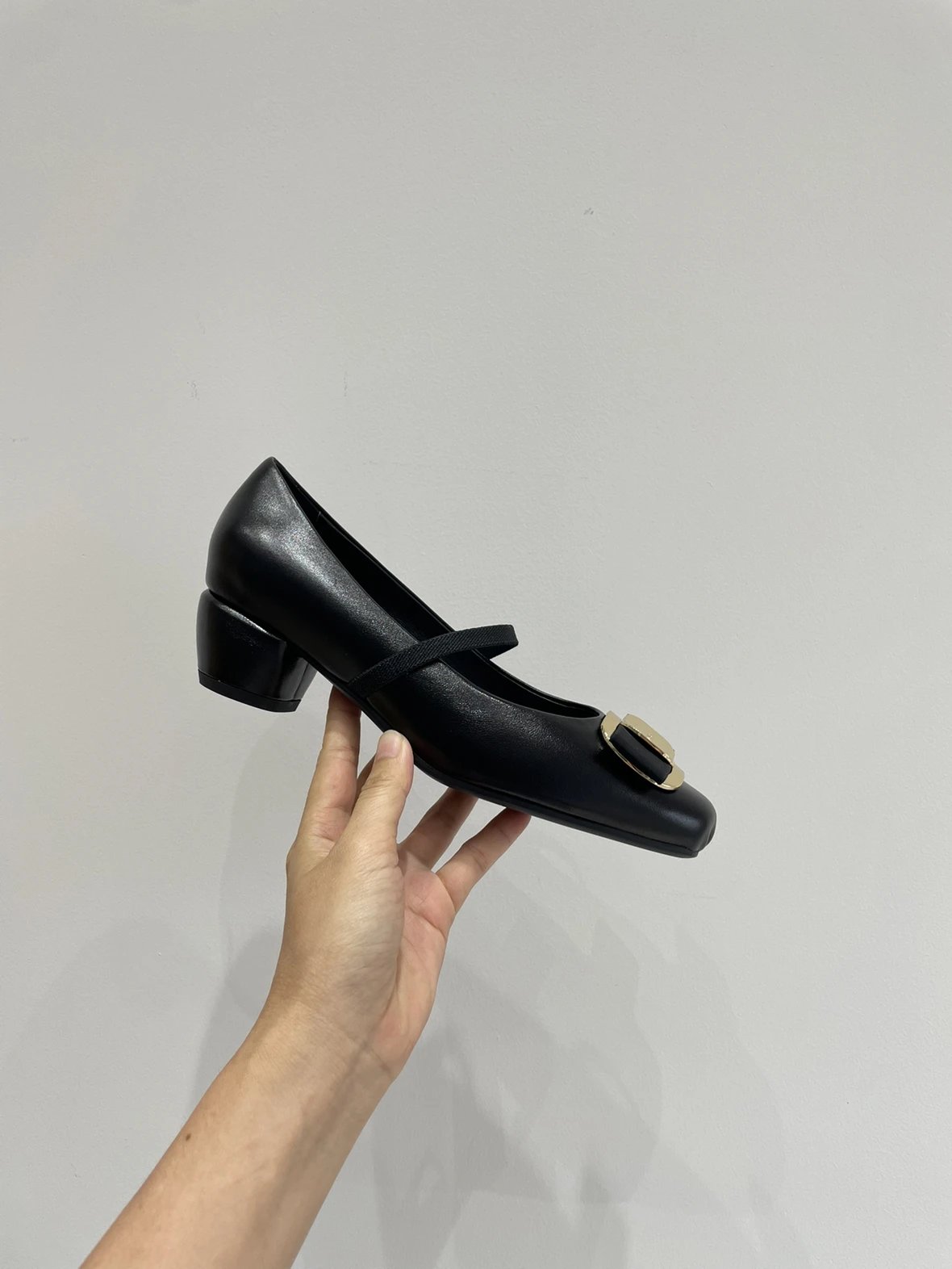 重磅推荐 菲拉金属扣单鞋 羊皮金属银单鞋 羊皮中跟单鞋/平底单鞋