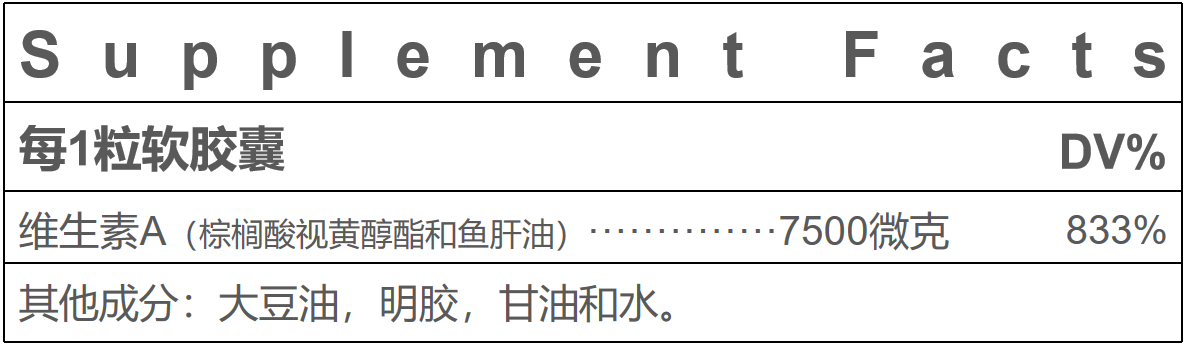 维生素A是脂溶性维生素,长期高剂量补充可以积累到潜在的有害水平,使用前请谘询医生。