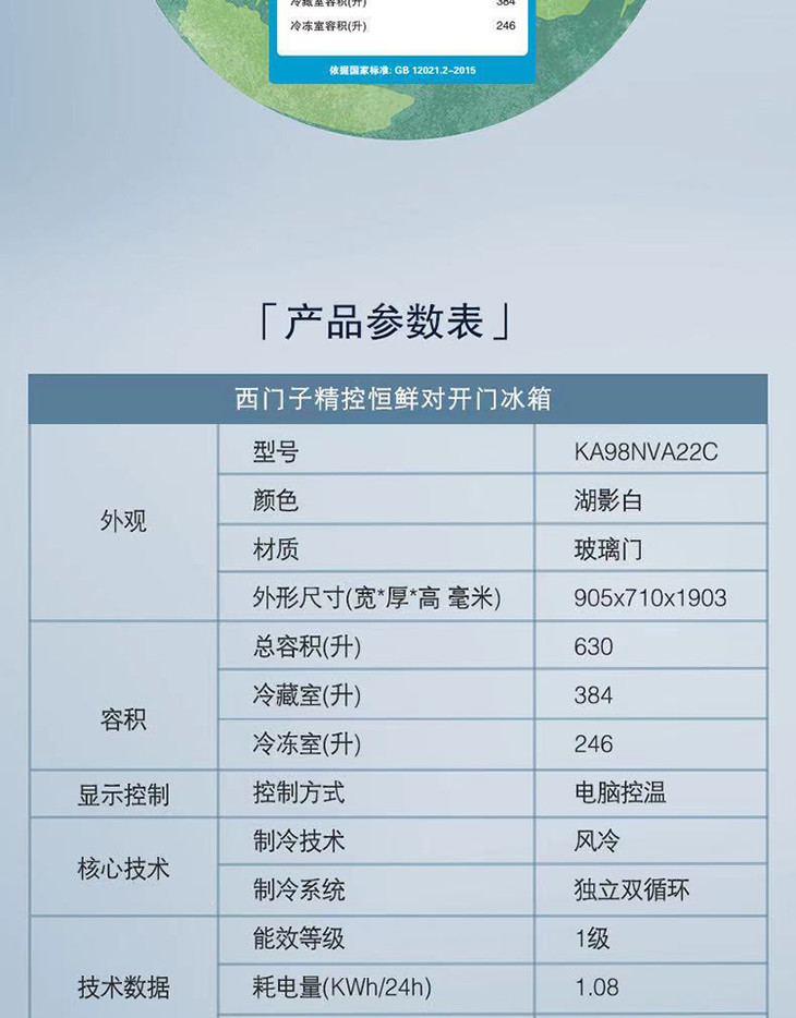 西门子(SIEMENS)(202509)风冷双循环 630L智能动态恒温对开门KA98NVA22C