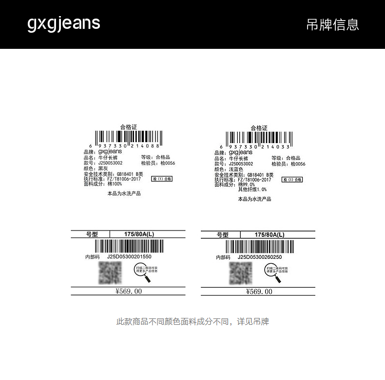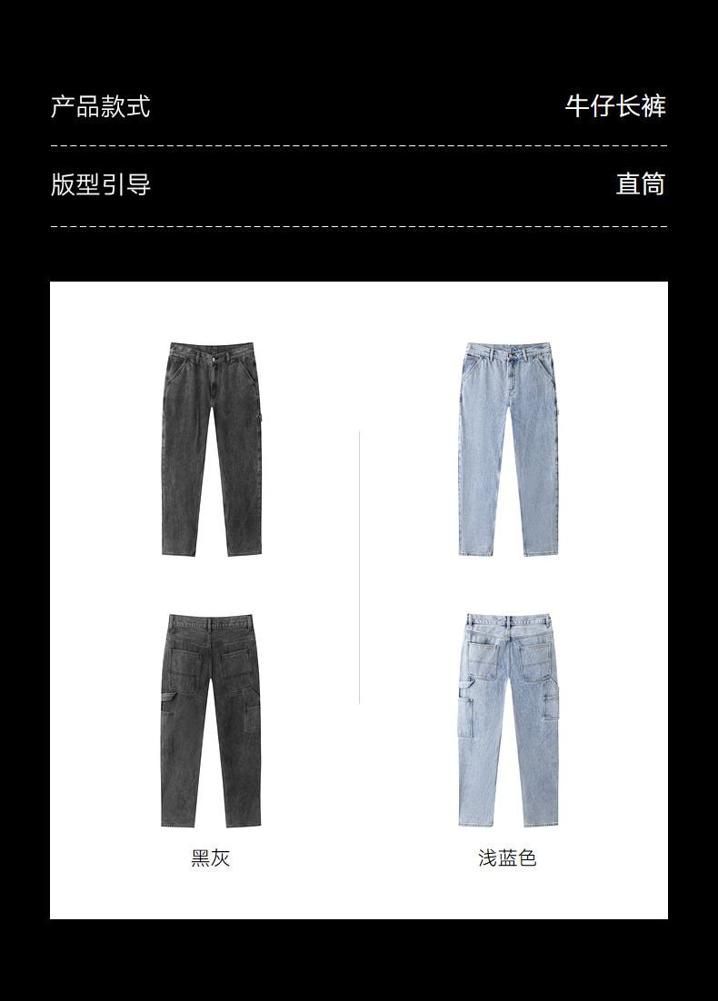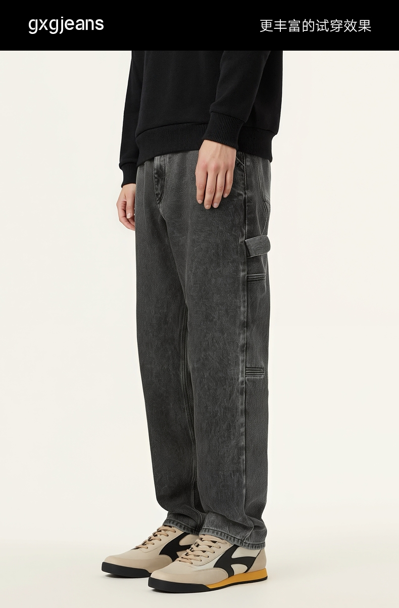 gxg.jeans男装 多色时尚多口袋水洗宽松直筒牛仔长裤男 25春热卖