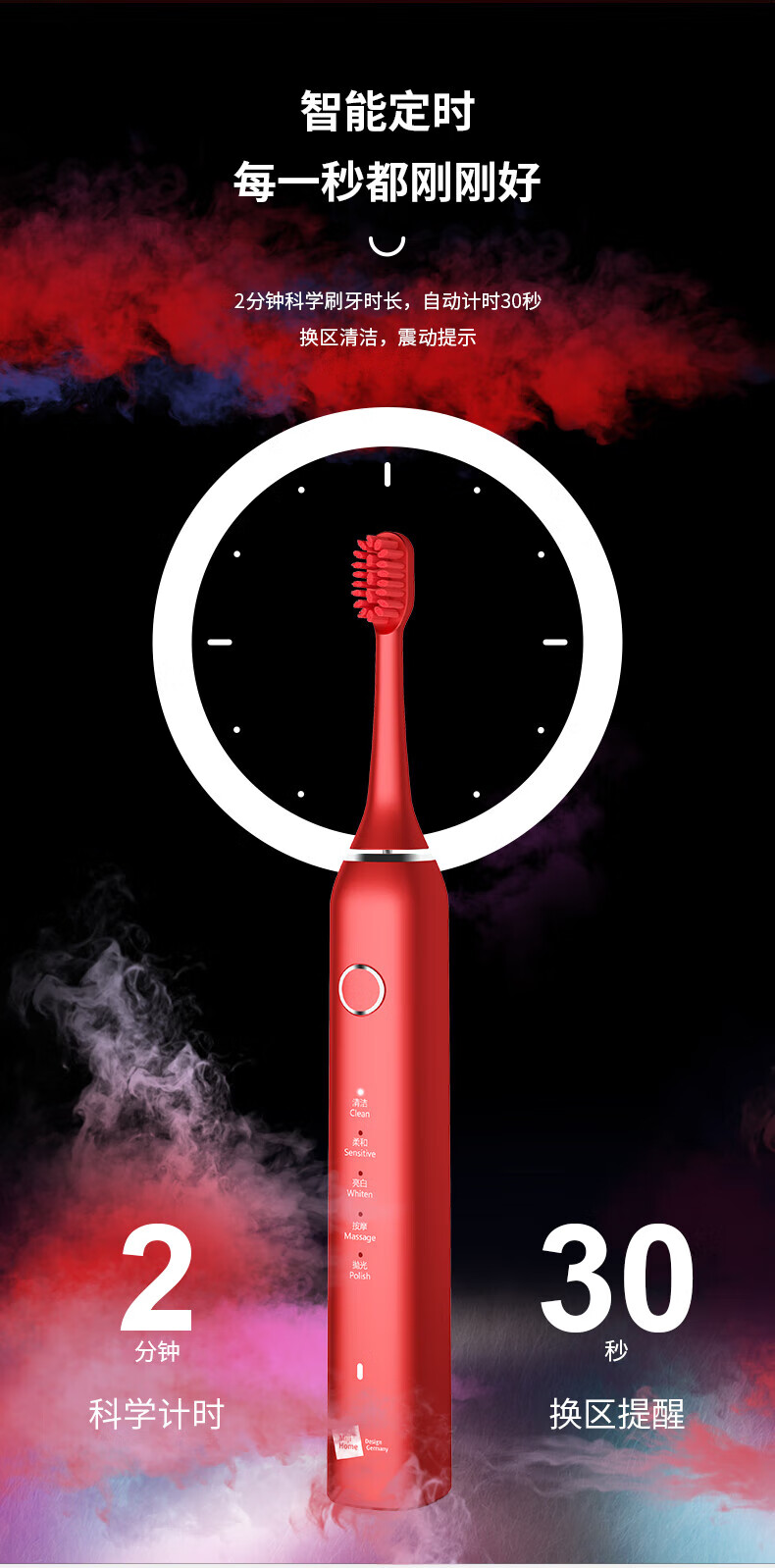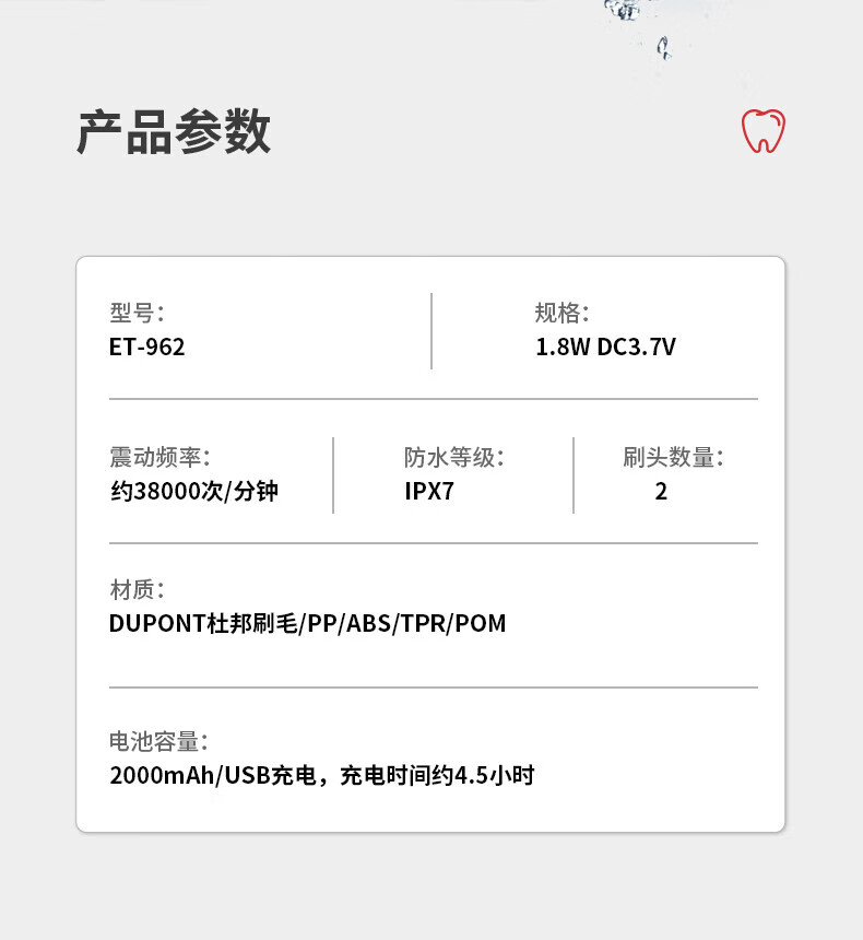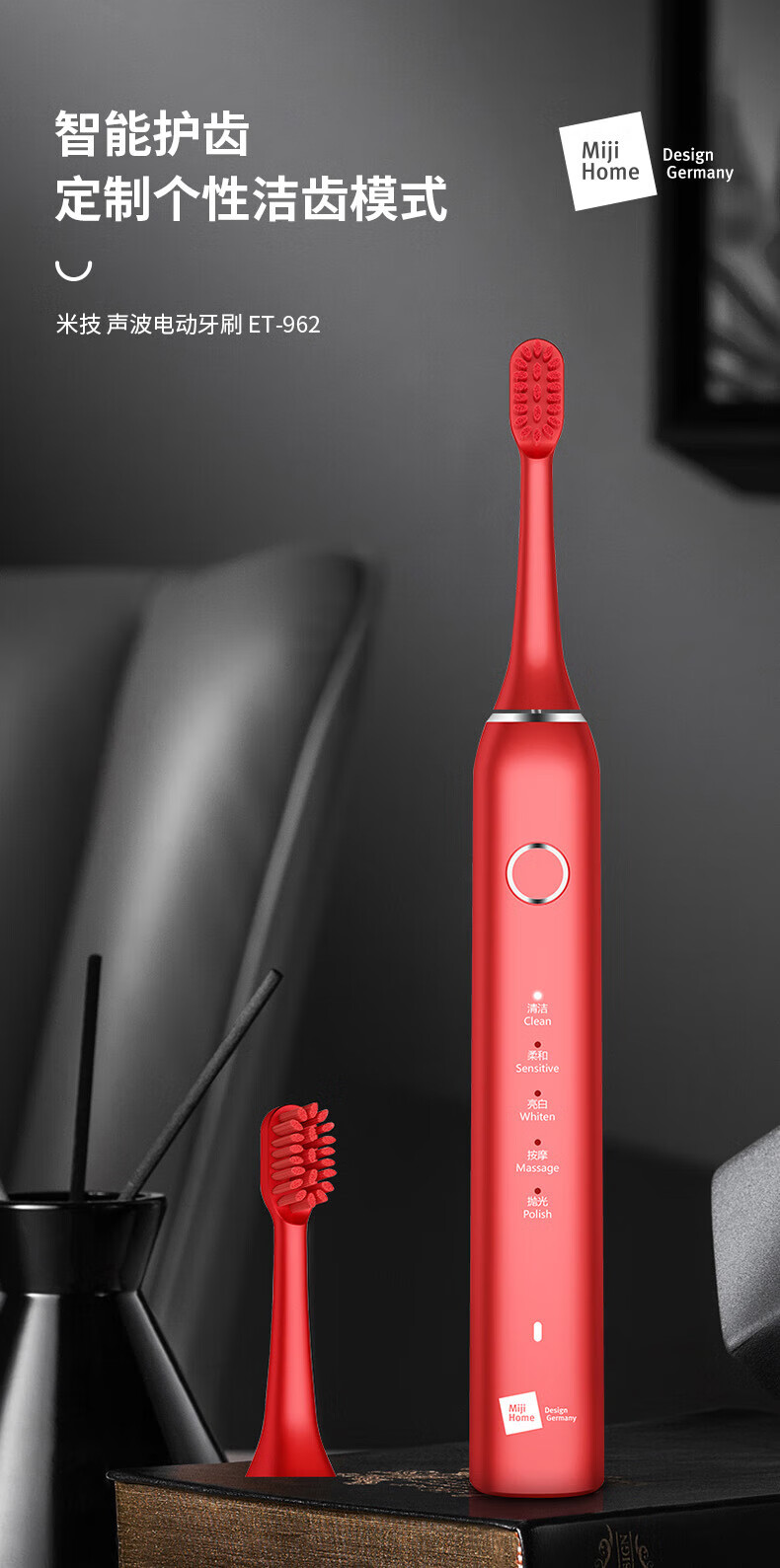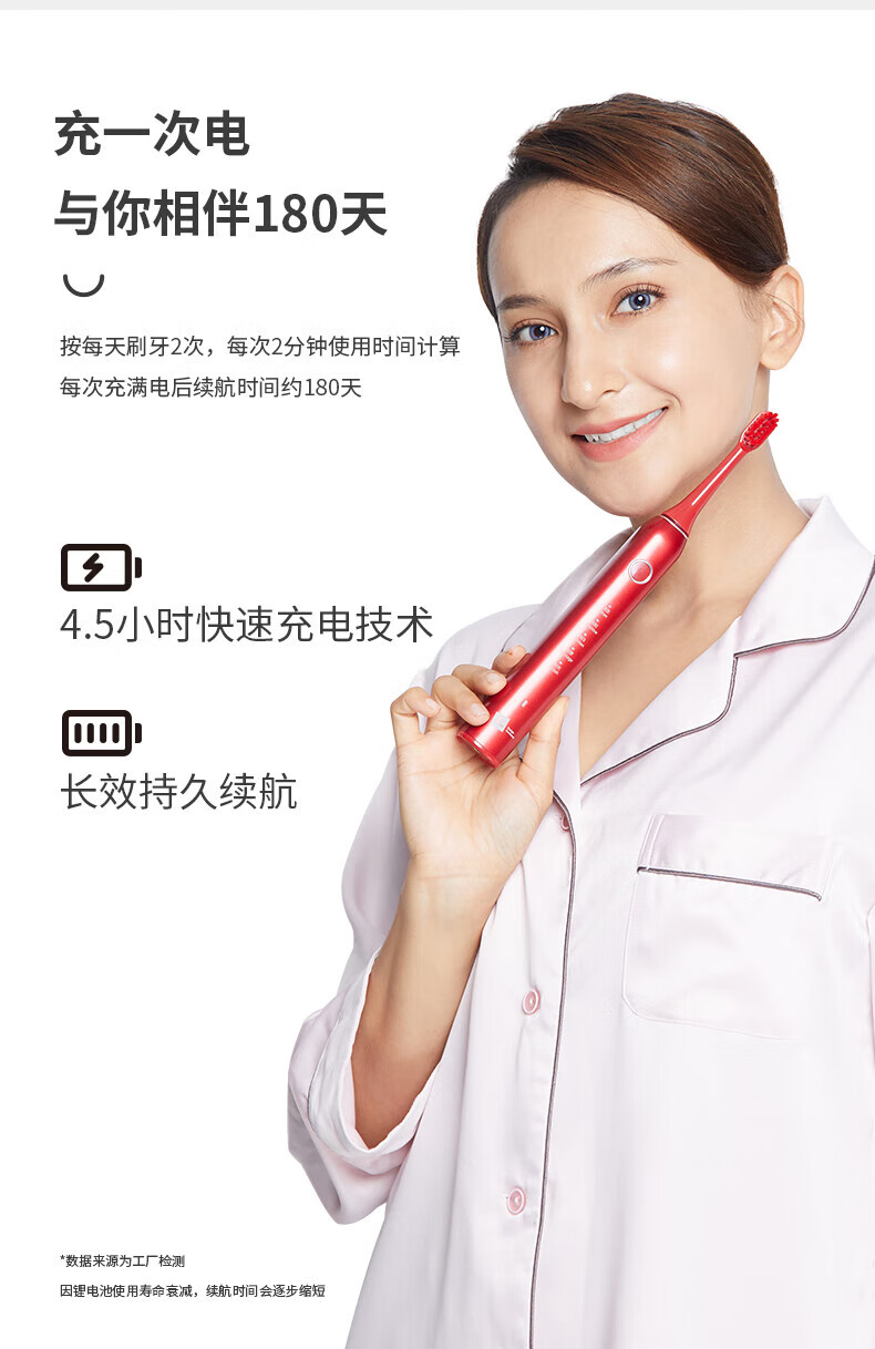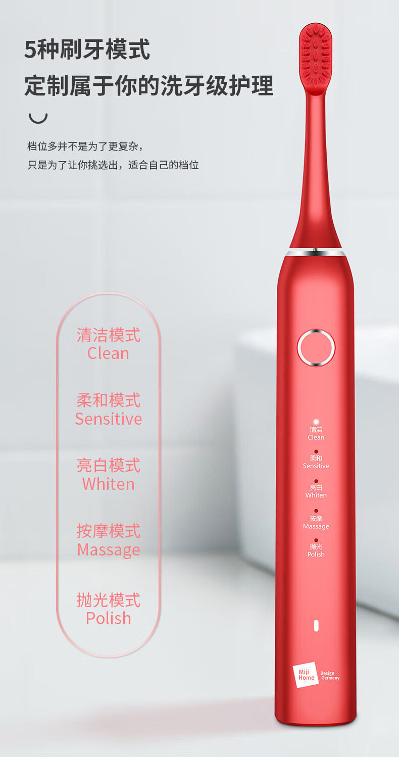 米技声波电动牙刷ET-962家用自动 红色 红色
