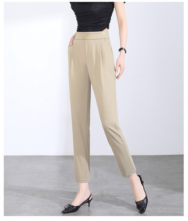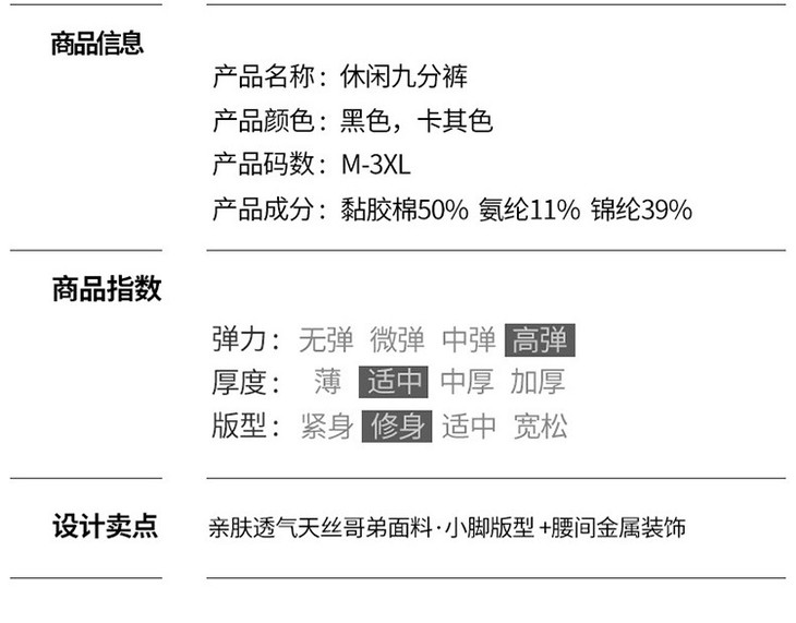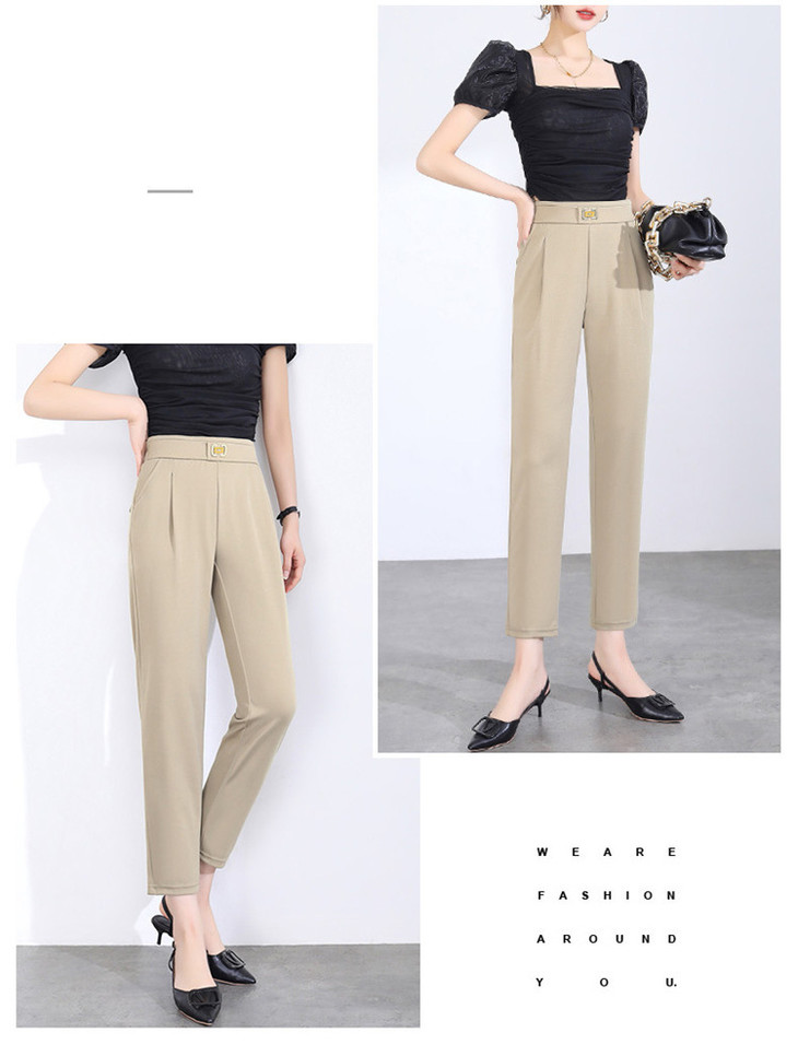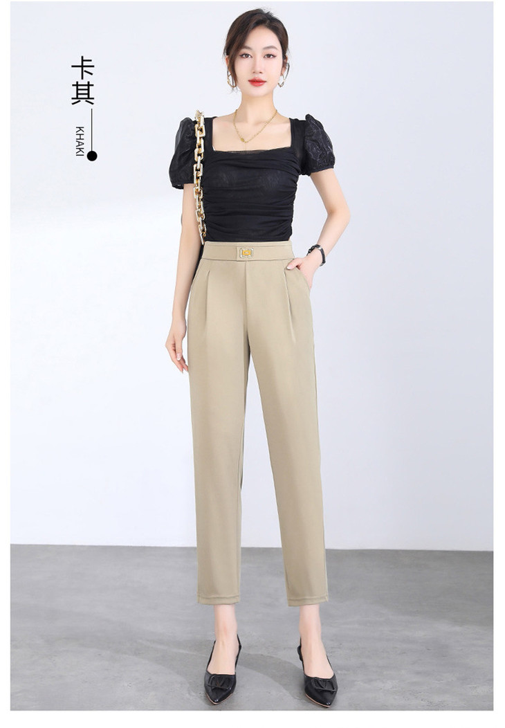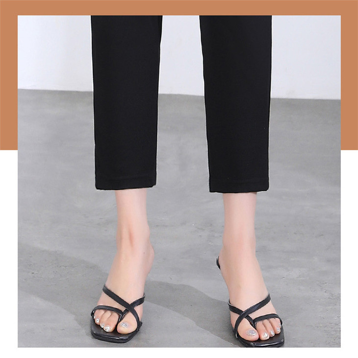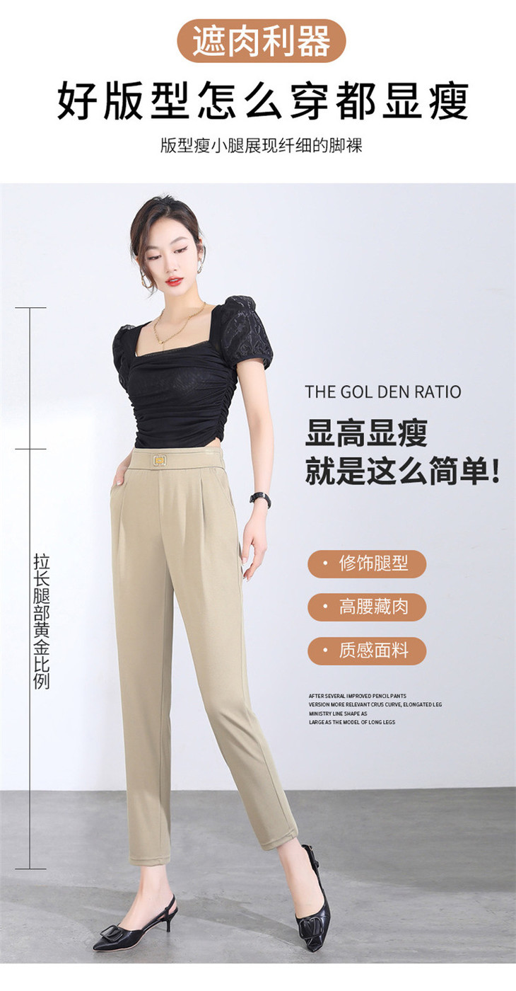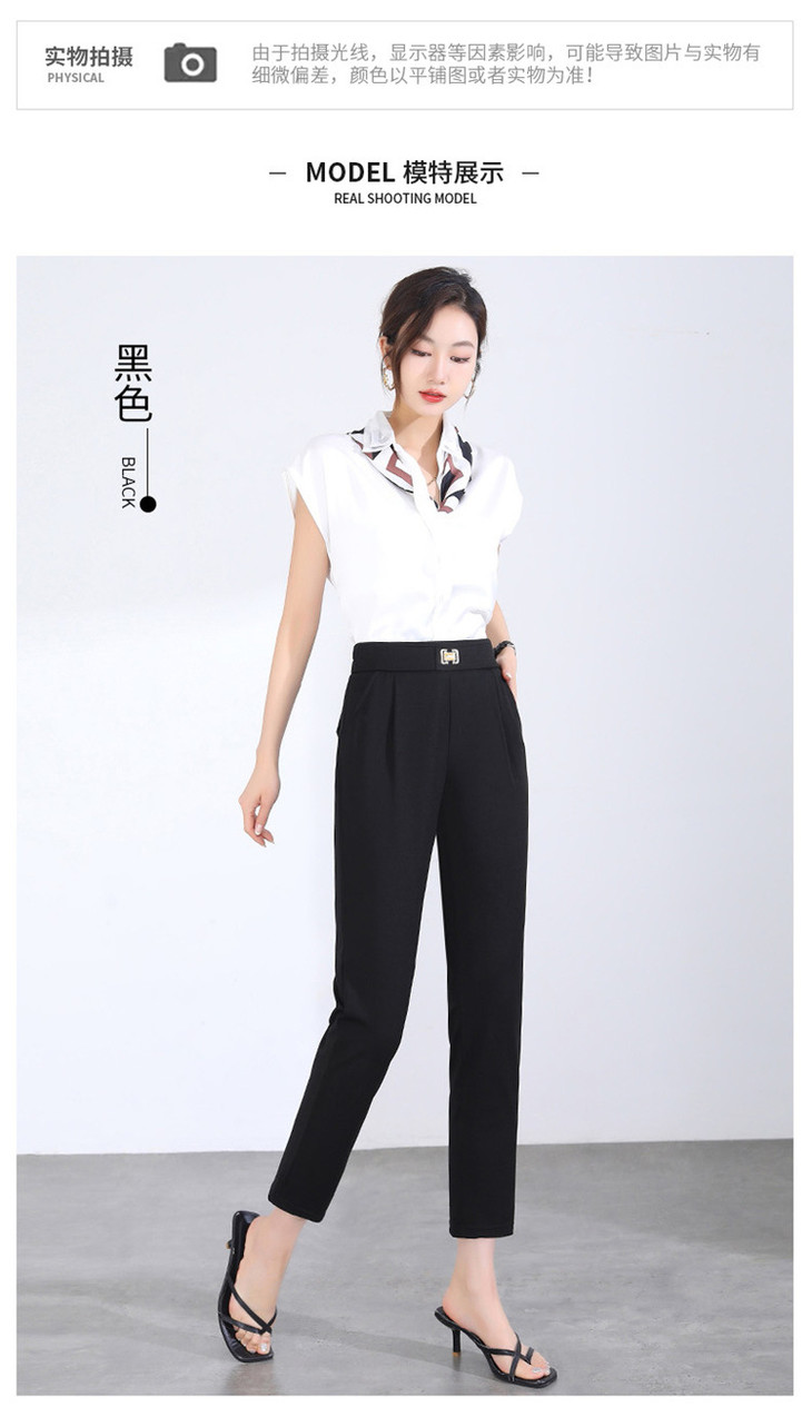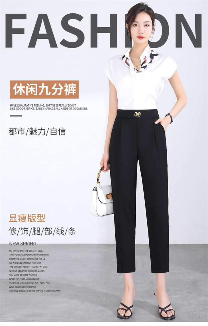 「两色可选!2024春季新款」修身铅笔裤弹力显瘦休闲小脚裤高腰黑色九分裤潮下装