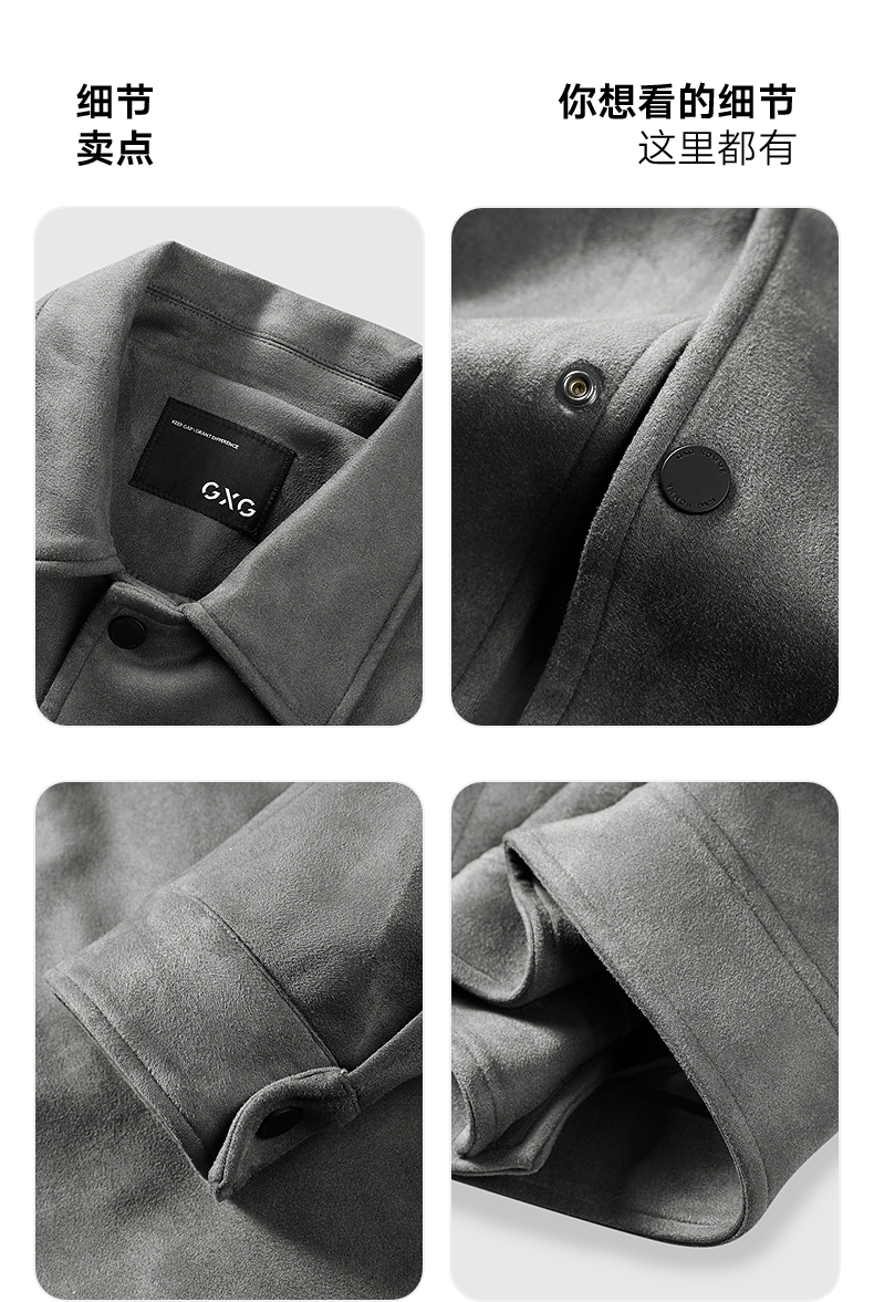 GXG男装 灰色仿麂皮毛户外口袋设计保暖夹克外套 2024冬季热卖