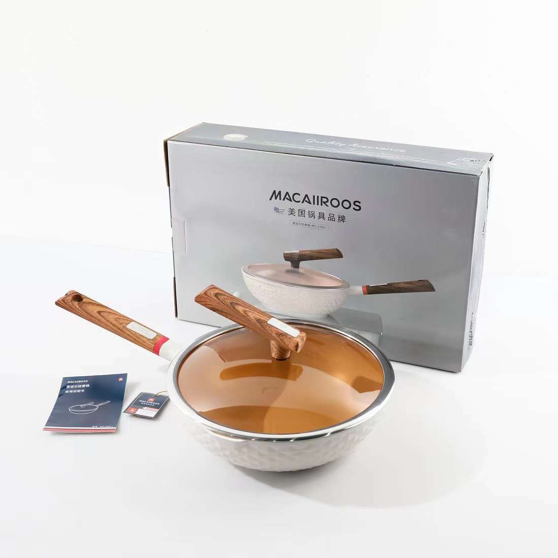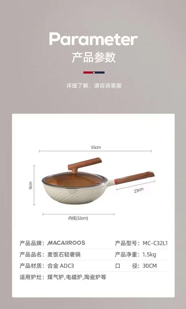 迈卡罗麦饭石不粘锅 中高端锅具 品质很赞 拿起来很轻 真的好好看啊 它健康环保 不挑灶炉 炒菜的时候轻颠锅不费力