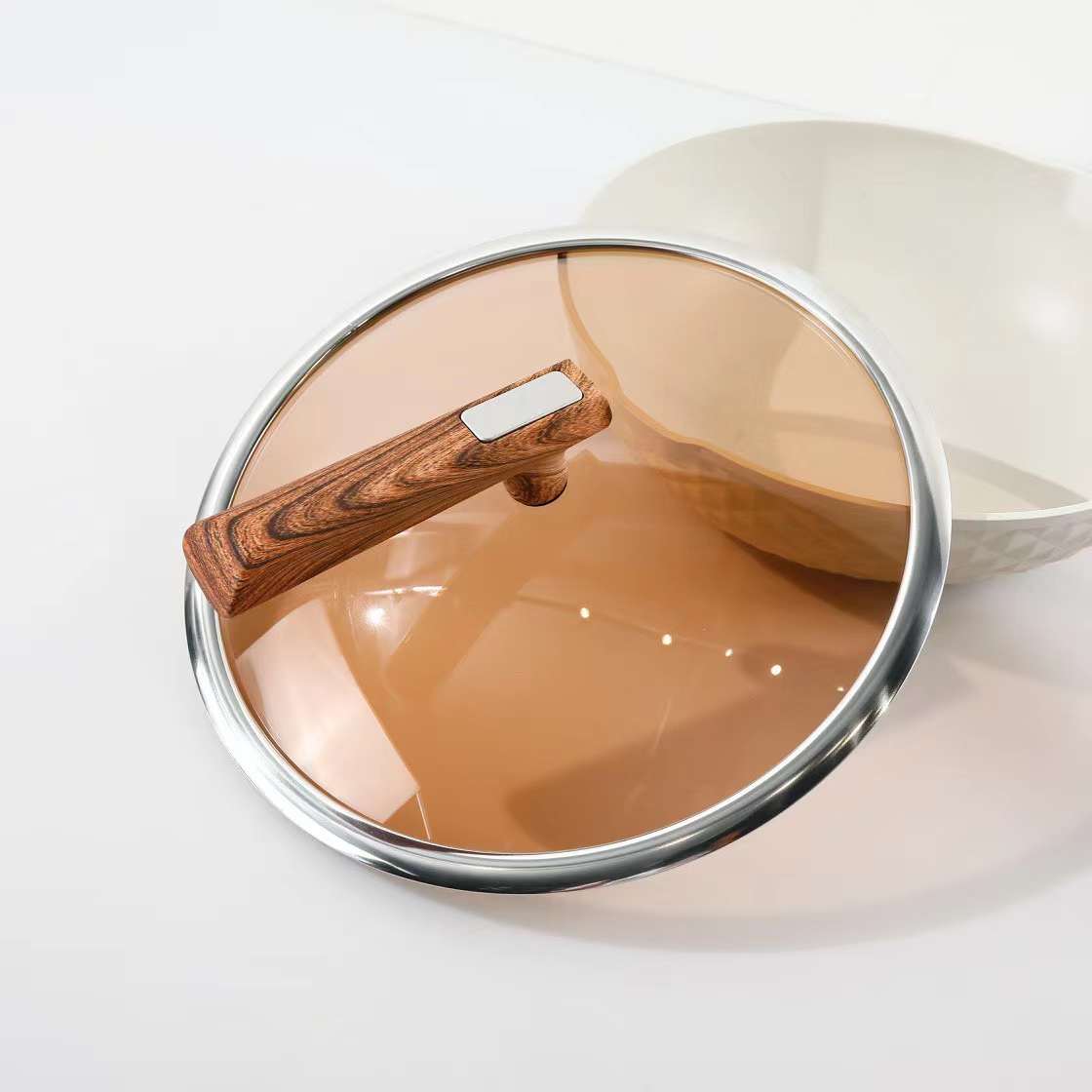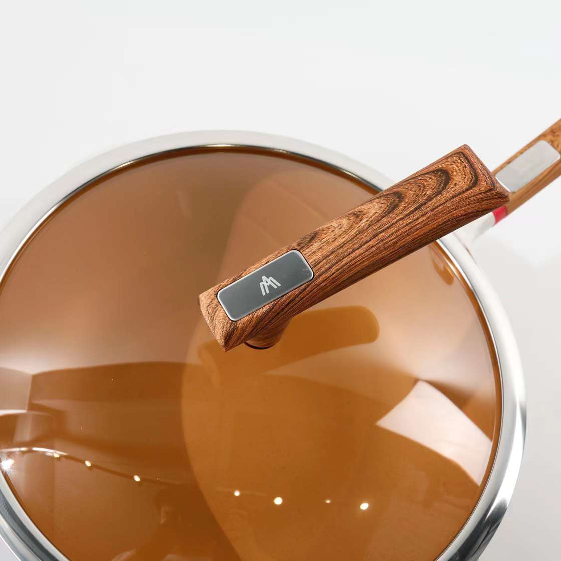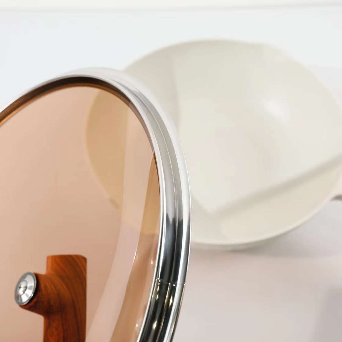 ※ 茶色透明高温玻璃不锈钢包边锅盖 美味看得见