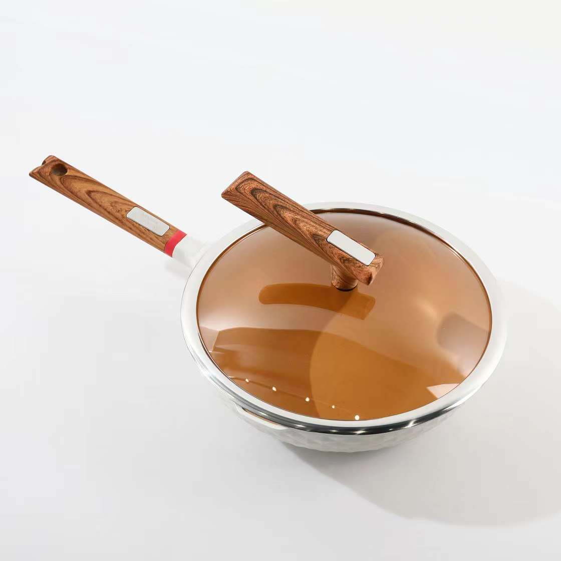 ※ 加长易握持流线型木纹手柄 防烫隔热