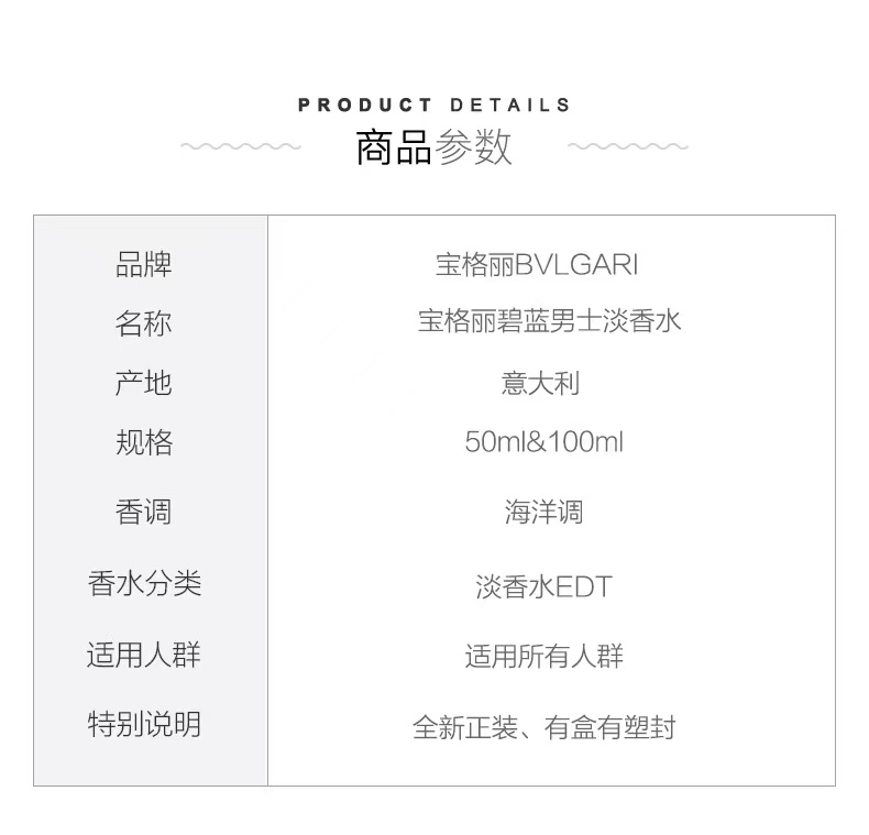 BVLGARI/宝格丽 碧蓝水能量男士淡香水50ml/100ml 海洋香调木质香调清新自然
