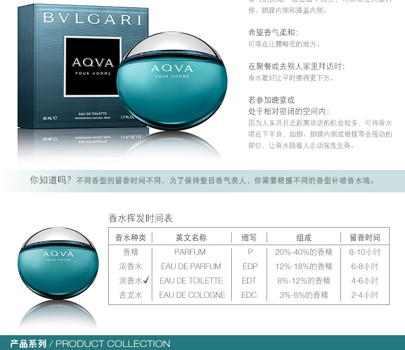 宝格丽 水能量(碧蓝) Bvlgari Aqva Pour Homme 50ml/100ml
