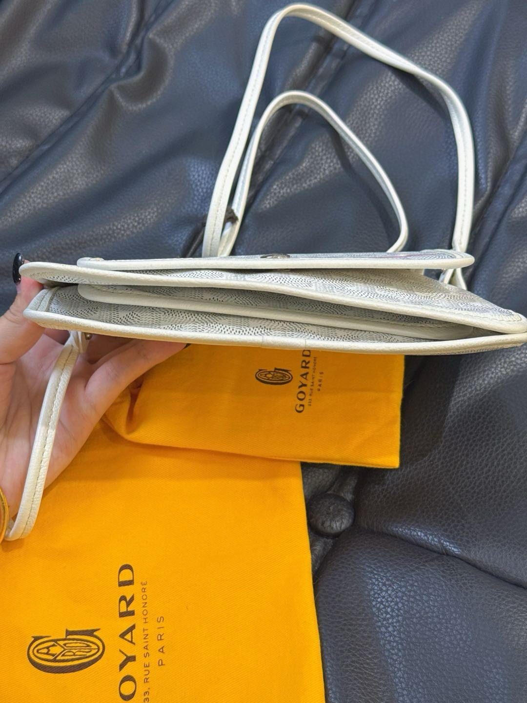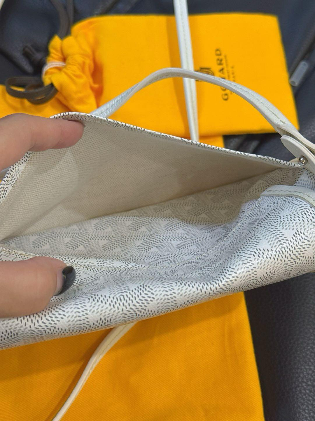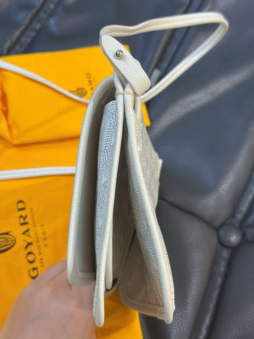 【商品詳情】正品二手 戈雅 Plumet 白色 老花 小号 信封 斜挎包🍯 98新 20×14 配件:肩带、防尘袋、扣子、小票。 边角轻微使用痕迹。绝美颜值 轻便实用小包