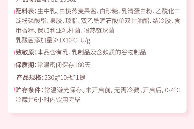 认养一头牛法式风味高端酸奶白桃燕麦味230g*10瓶