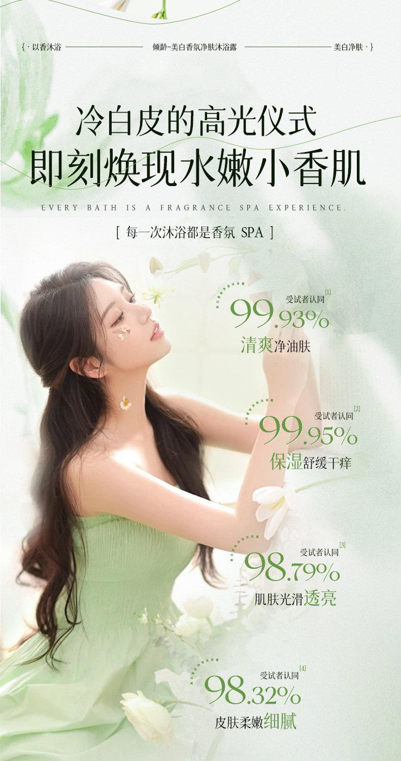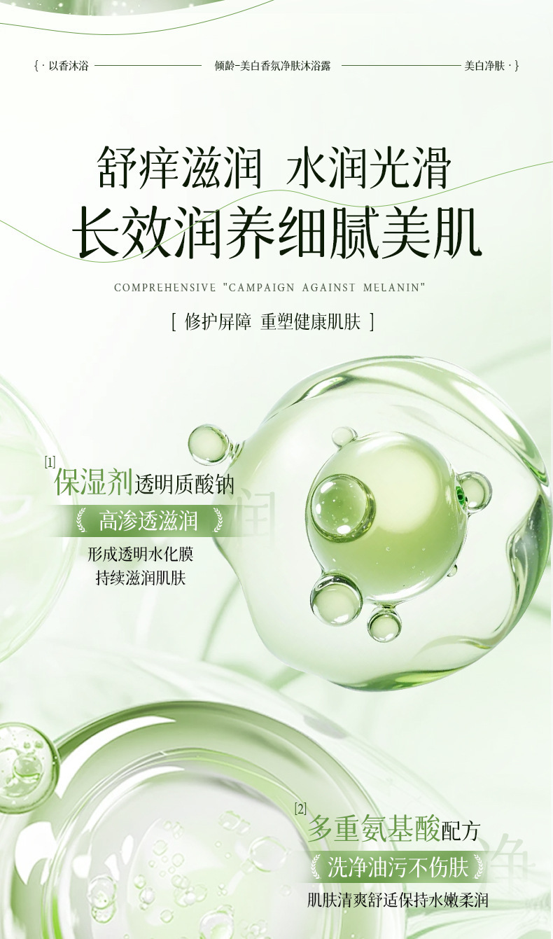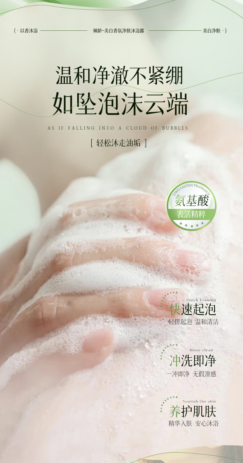 「温和·净爽无油肌」倾龄美白沐浴露 烟酰胺维C精华美白提亮滋润嫩肤轻奢香氛清洁 商品图4