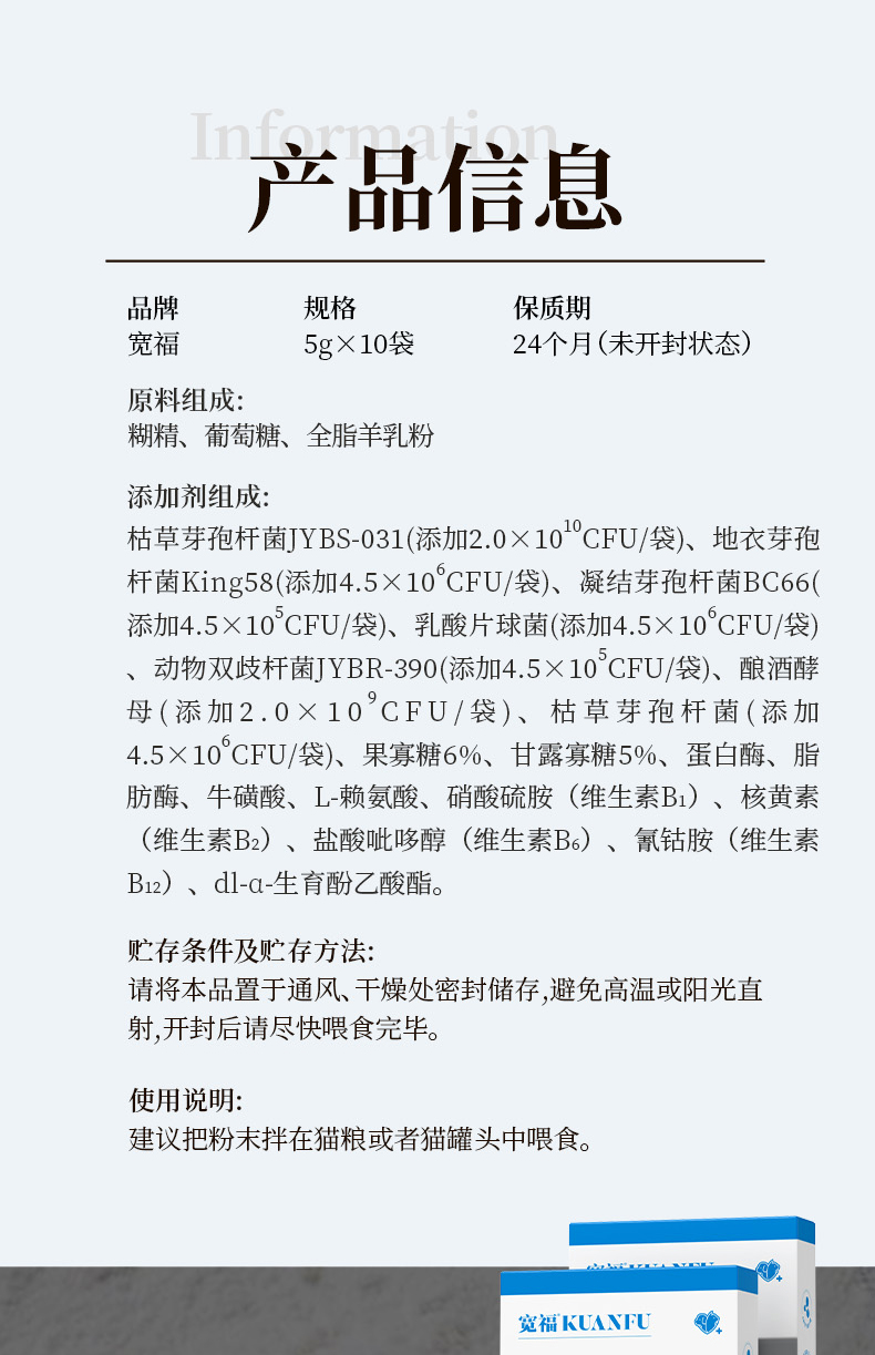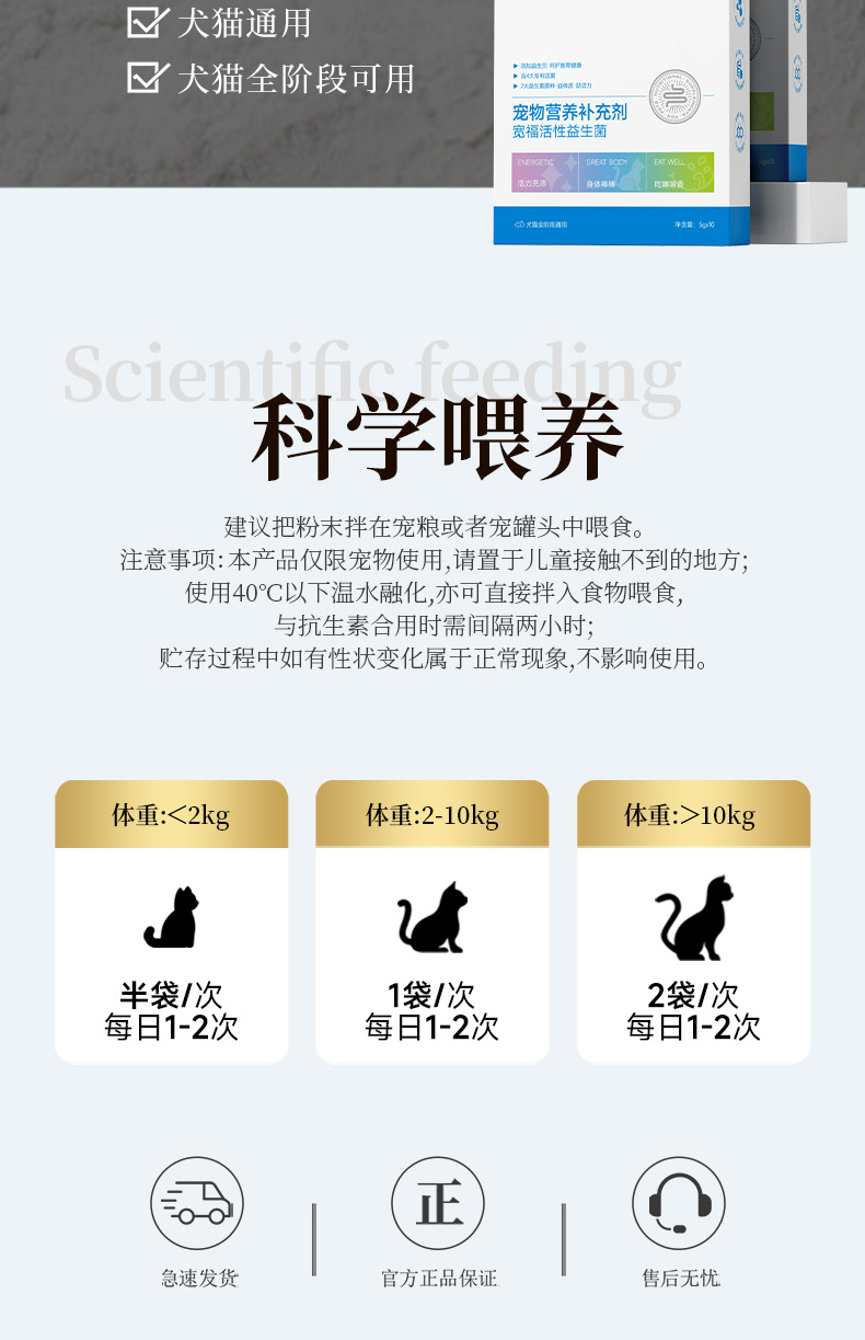 【益生菌】宽福 升级猫咪益生菌 7大菌种 猫狗通用 调理肠胃,促进吸收