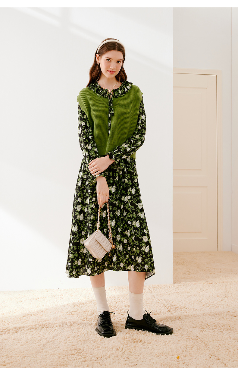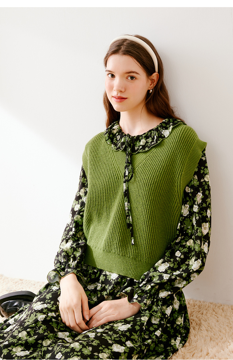 【严选】诗凡黎冬宽松V领H廓形套头背心7EA133231