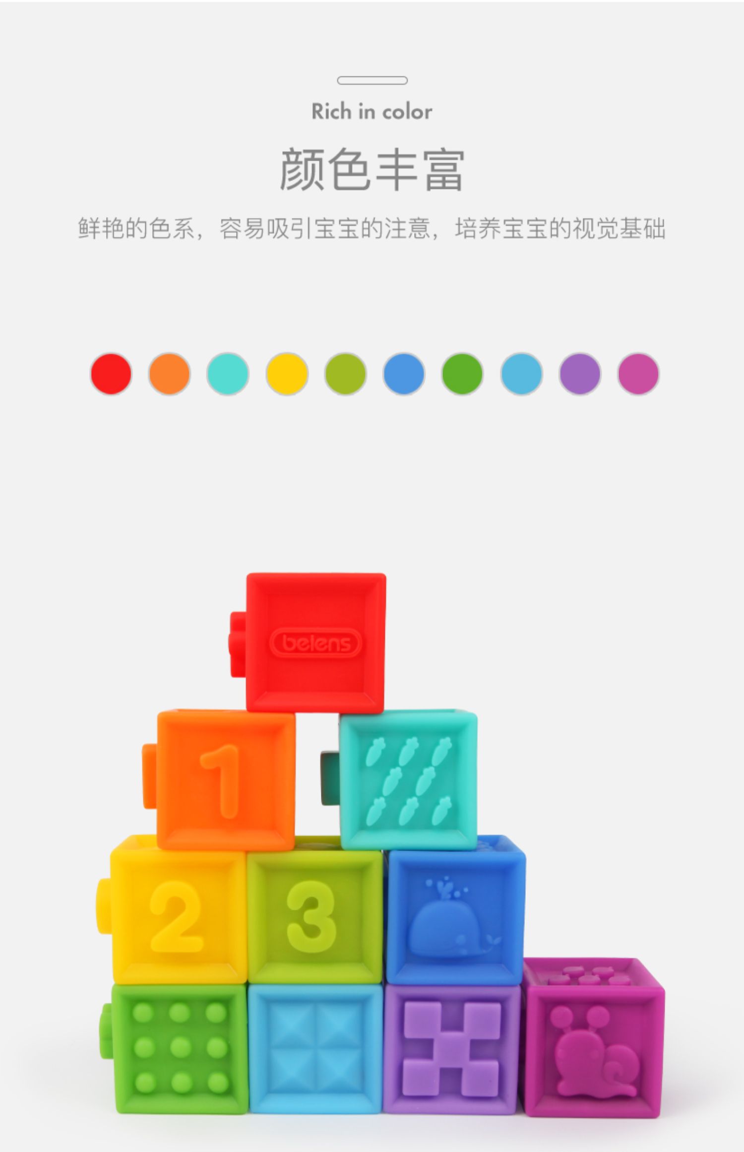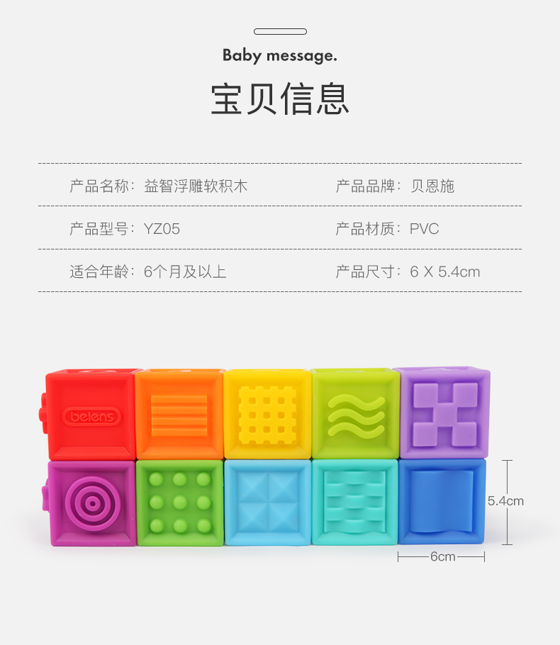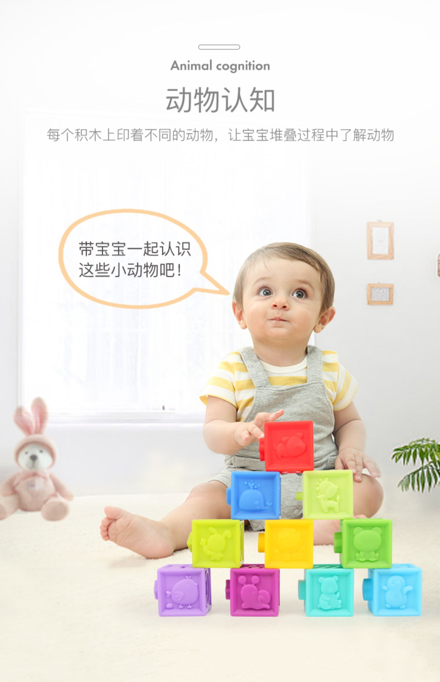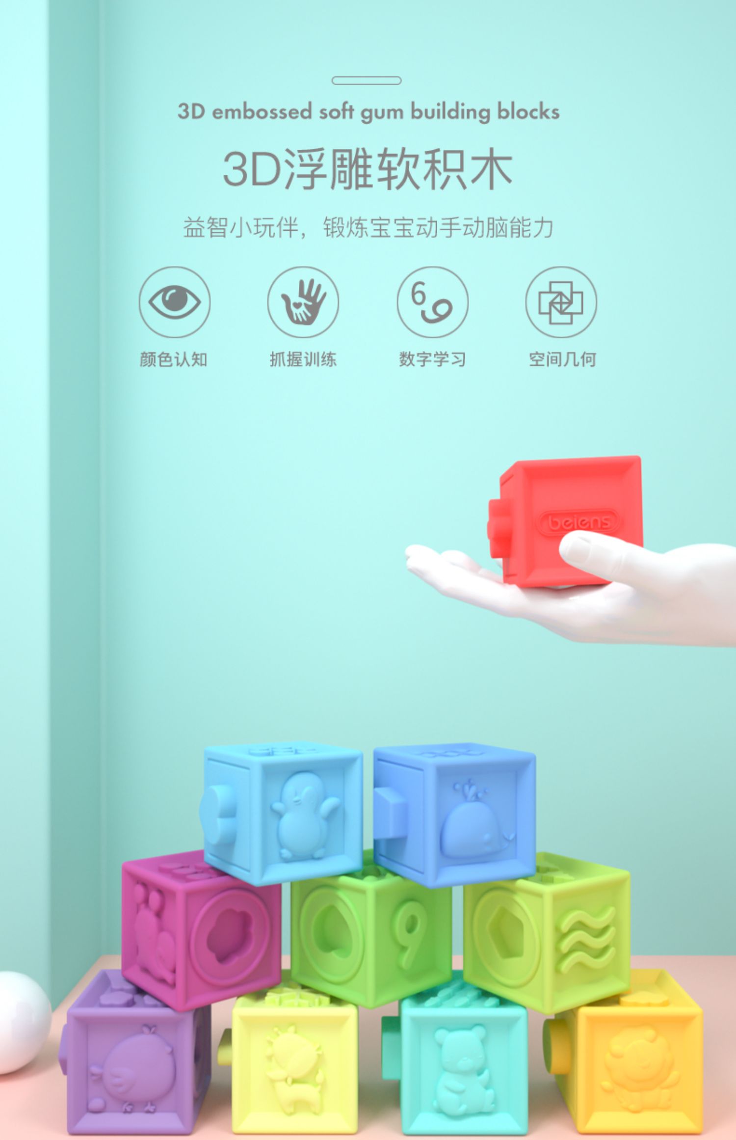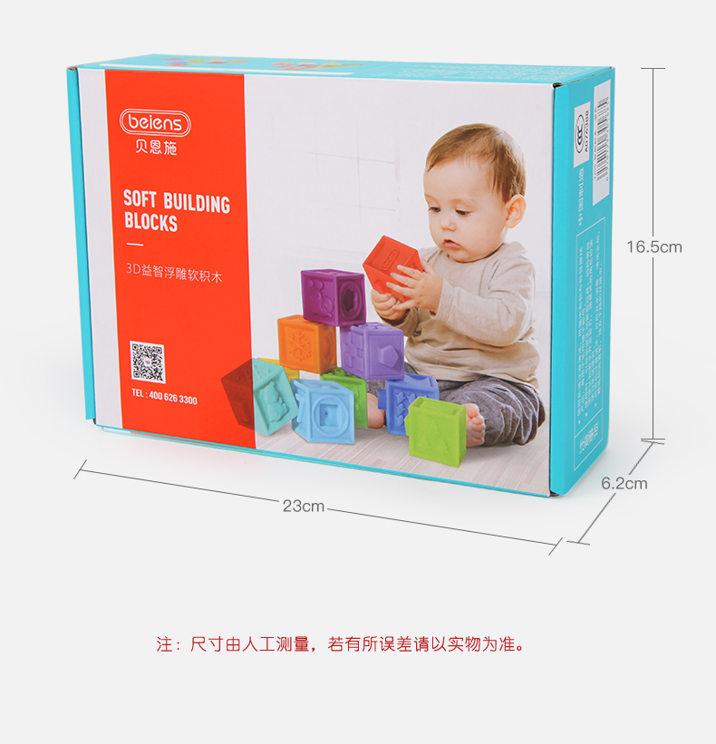 贝恩施软胶积木儿童浮雕软积木婴儿宝宝可啃咬早教益智玩具0-1岁