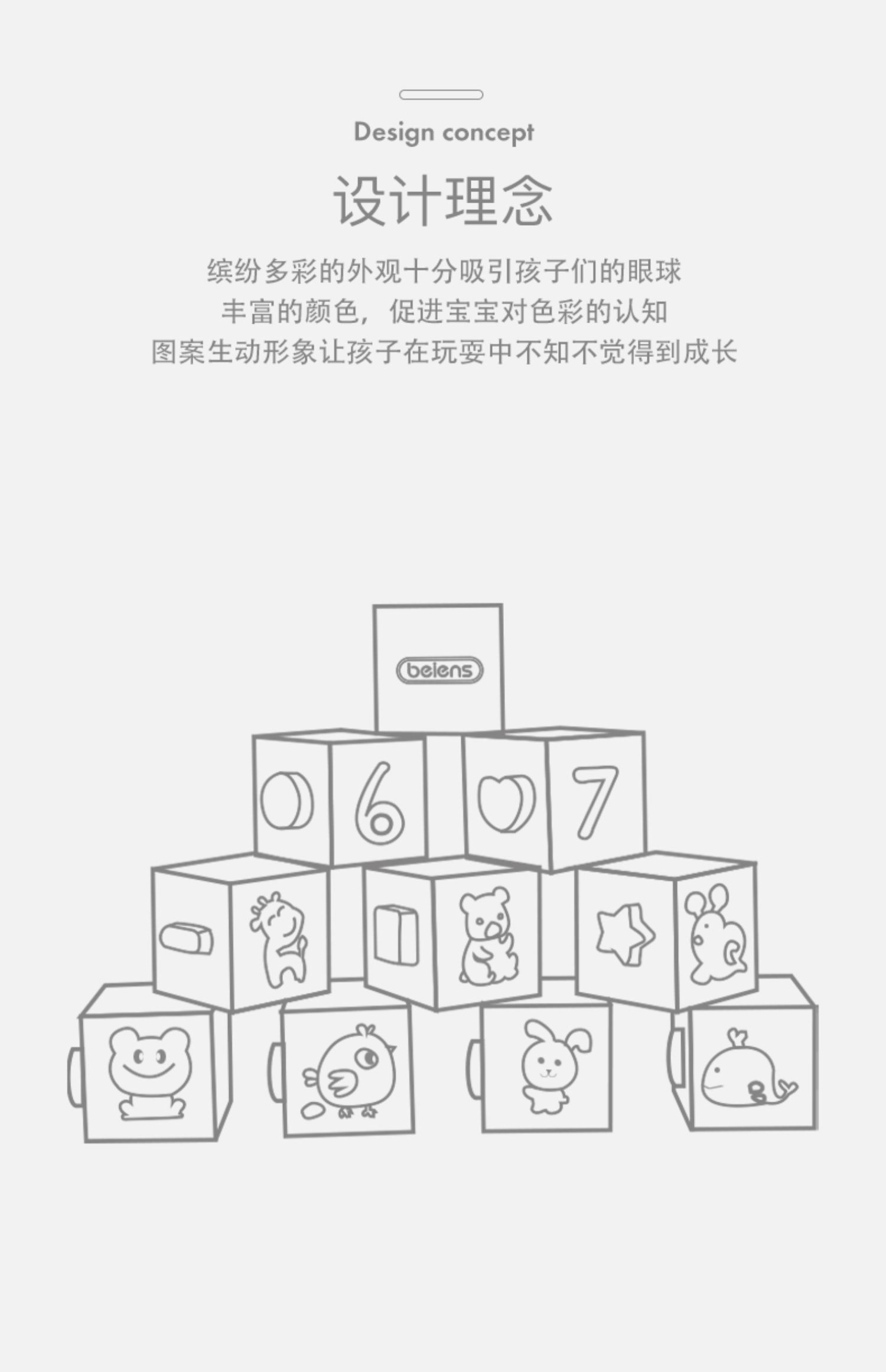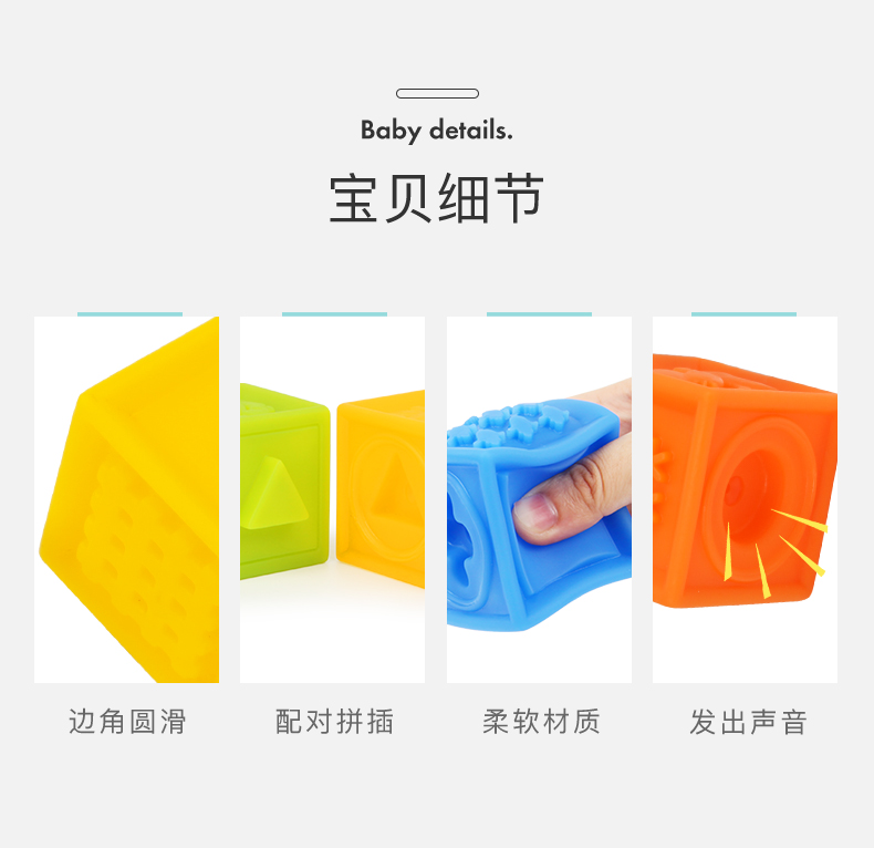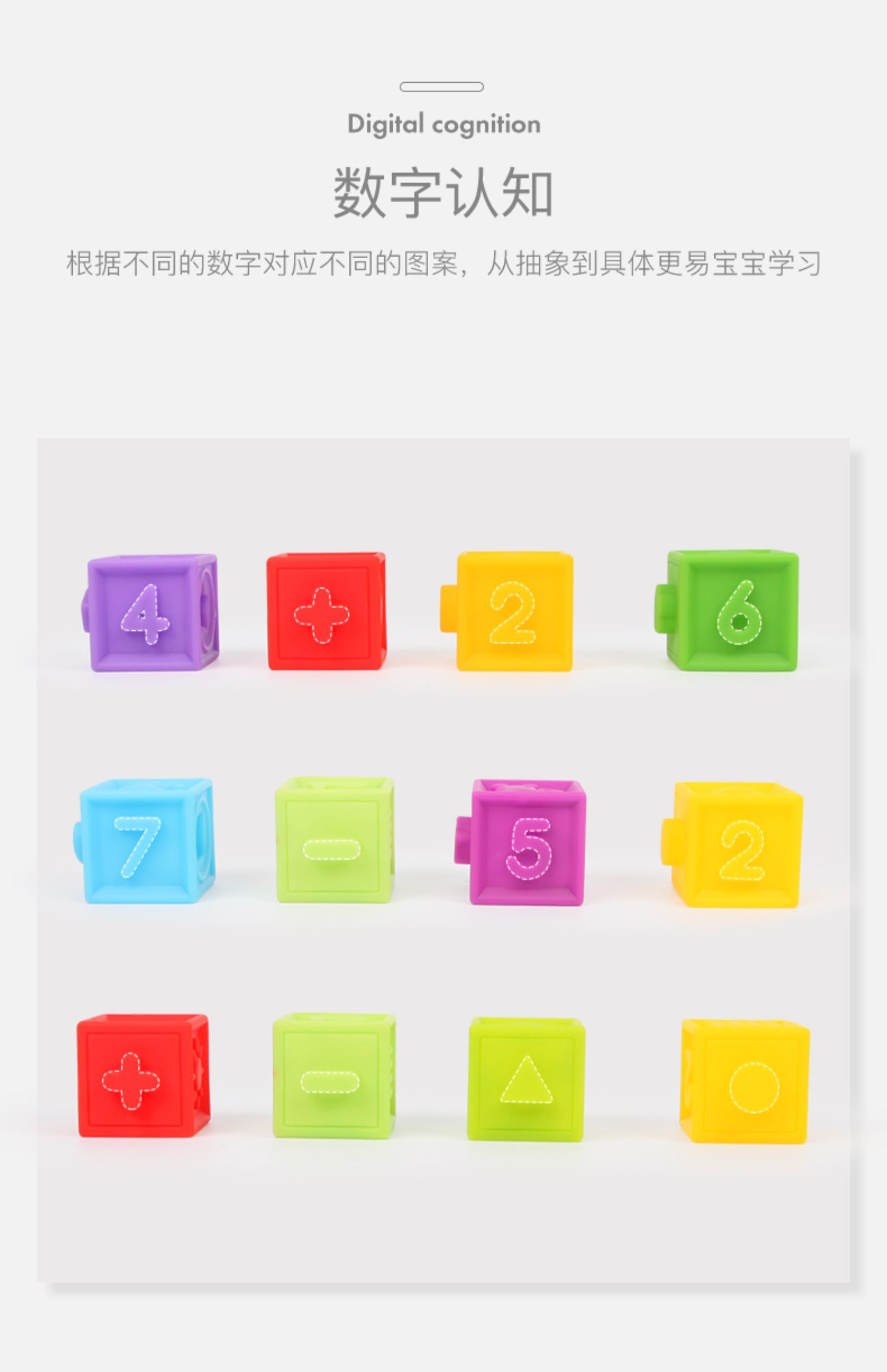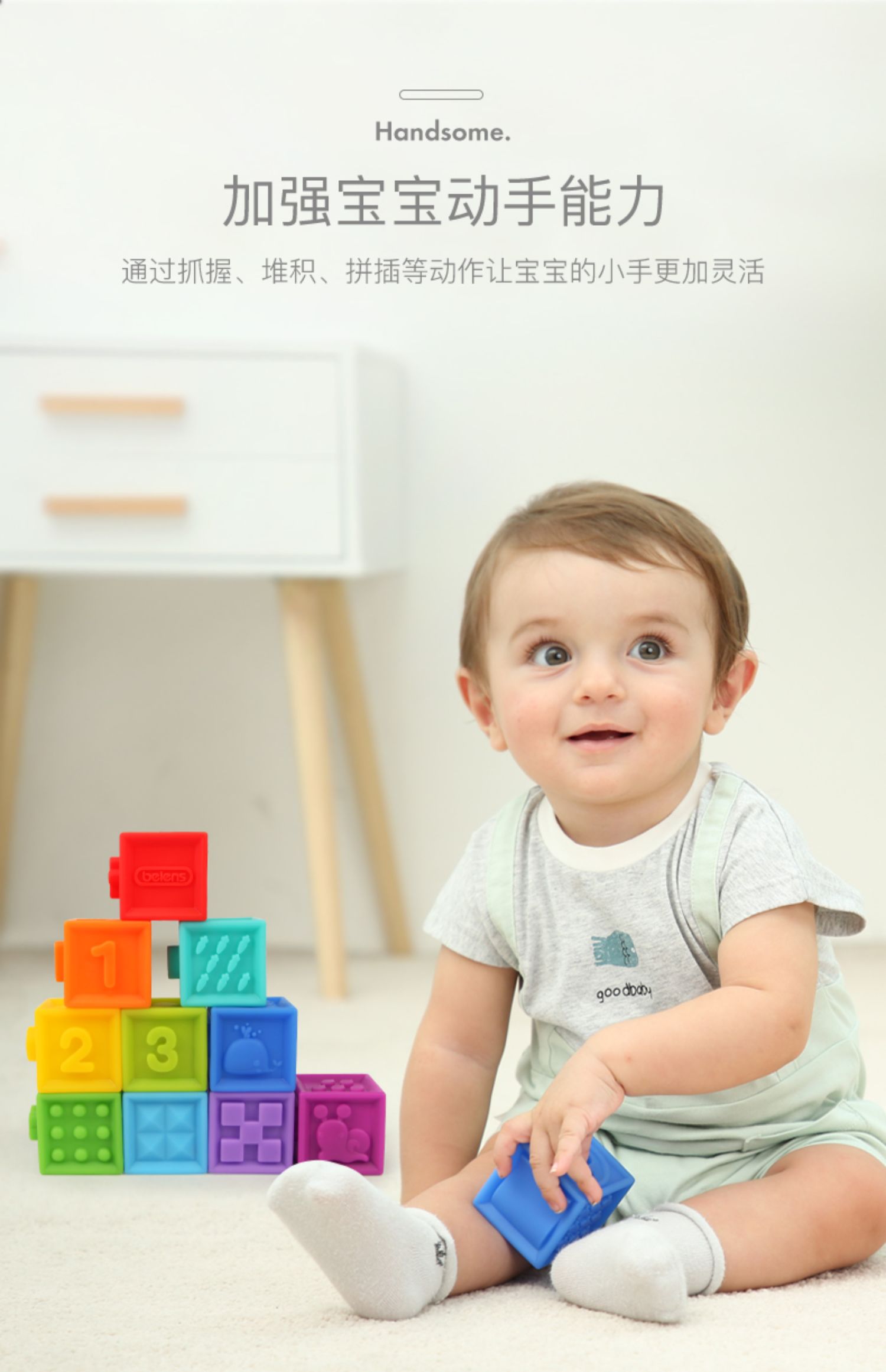 贝恩施软胶积木儿童浮雕软积木婴儿宝宝可啃咬早教益智玩具0-1岁