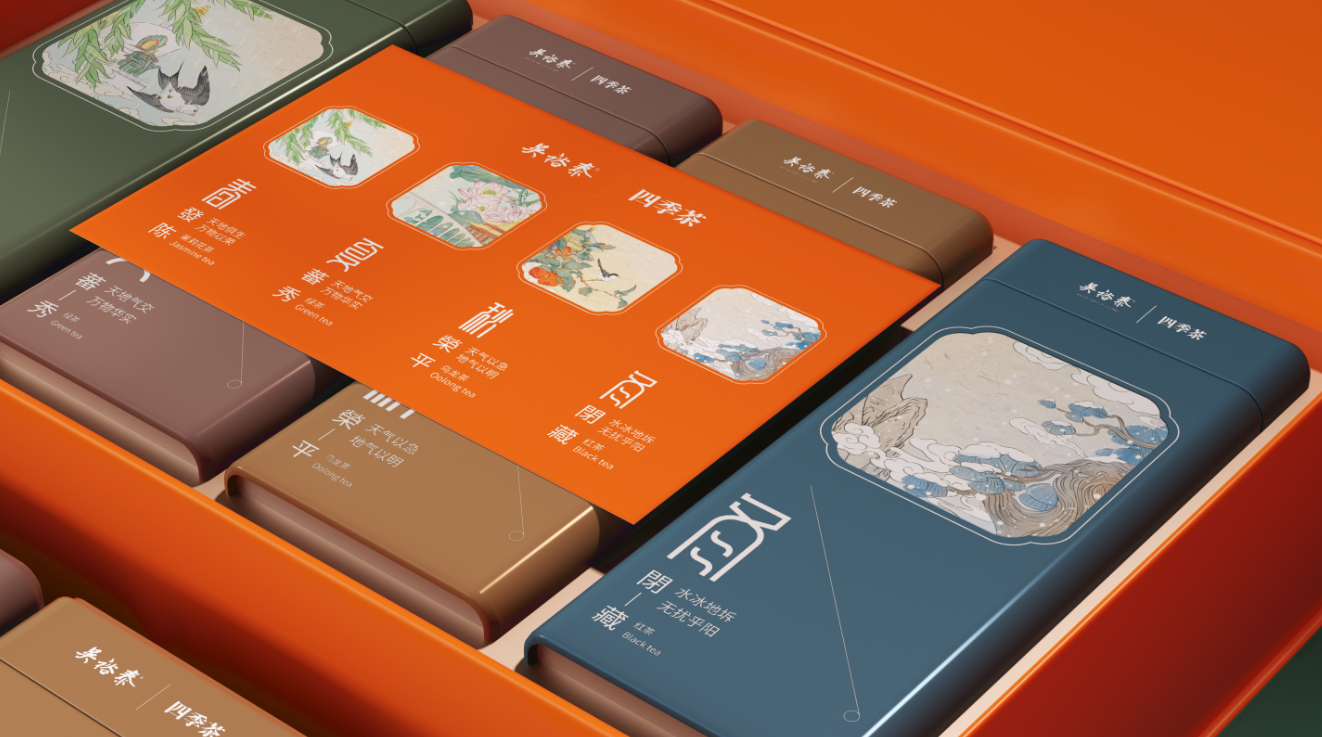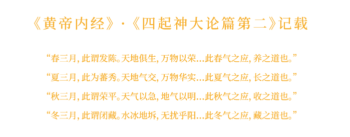 产品设计灵感来源于《黄帝内经·四气神大论篇第二》中记载的一年四季、顺应时令的文化理念,引用其中的“春发陈、夏蕃秀、秋荣平、冬闭藏”的四季概念作为核心理念,分别寓意着“春天萌生,夏天滋长,秋天收获,冬天储藏”的顺时之道。顺时而为,犹春风秋雨,谓之势;顺势而为,如夏花冬雪,谓之成。